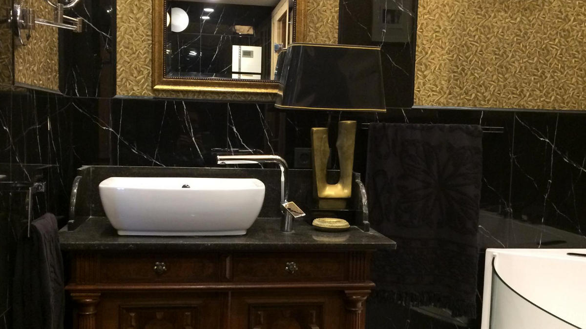 Modernes Design, edle Materialien und handwerkliche Präzision im Badezimmer. Gefunden im Loftstudio LR2014