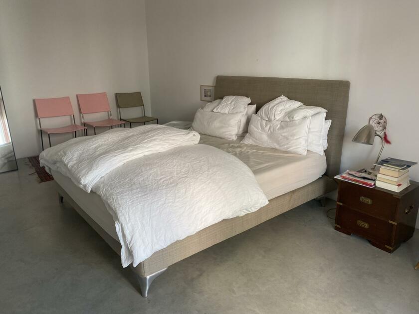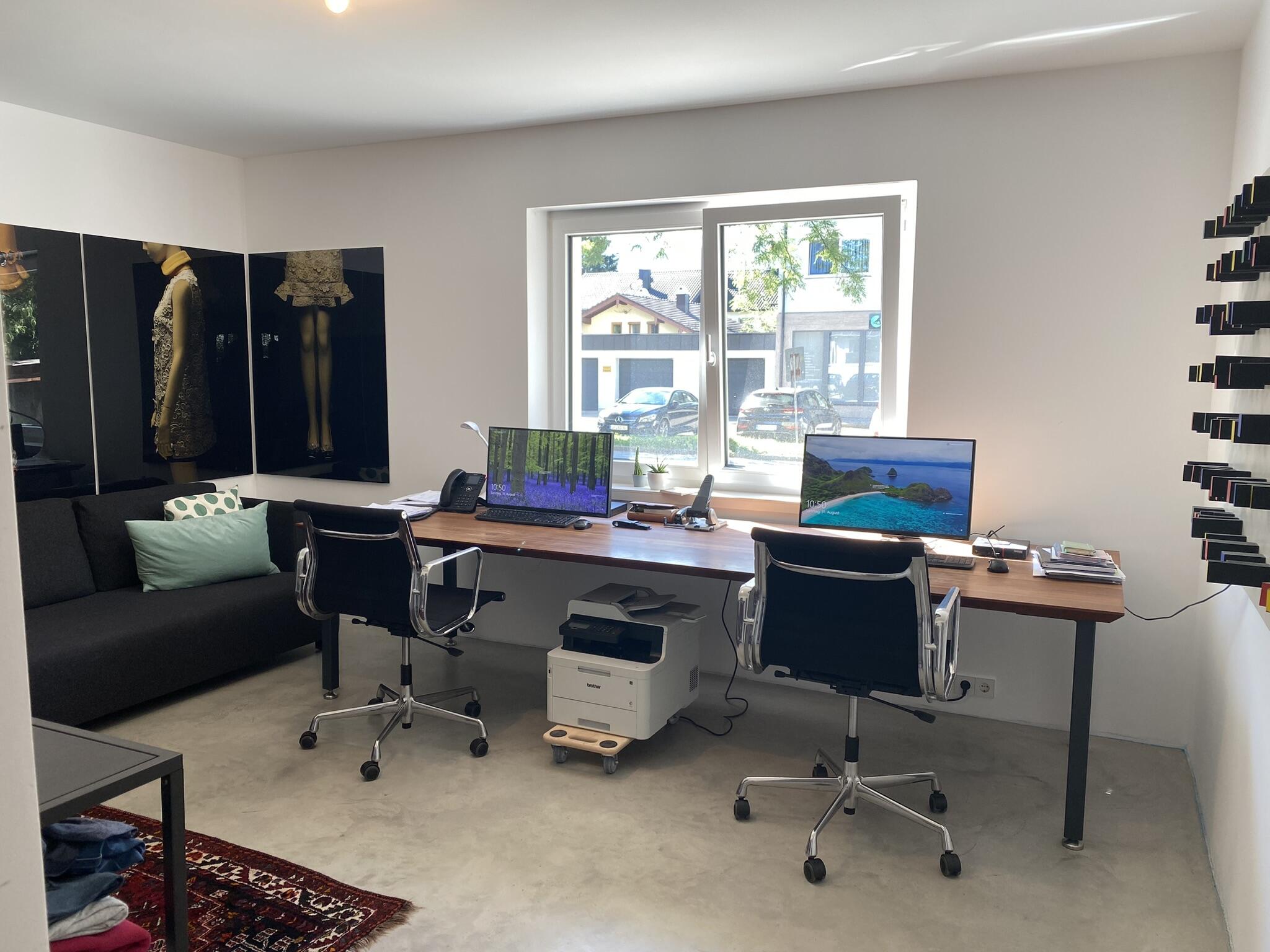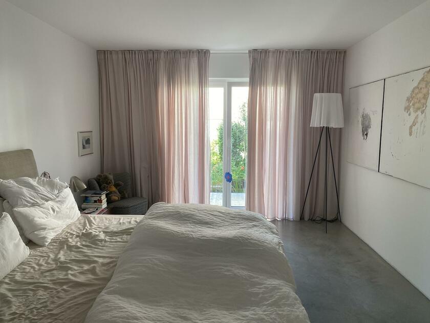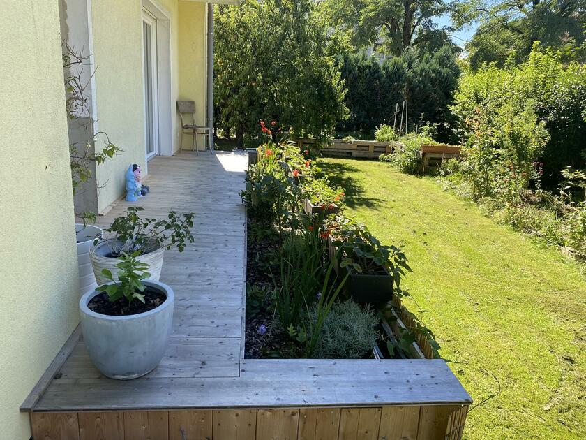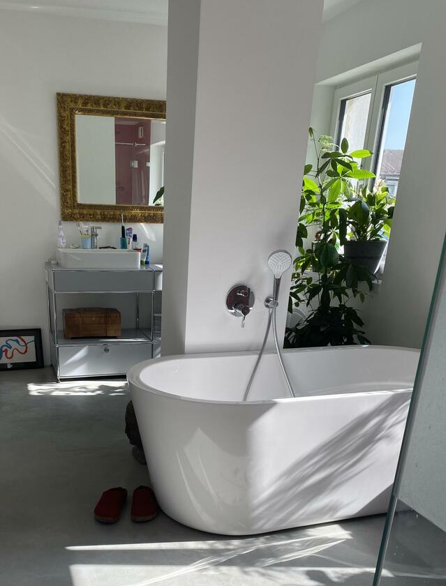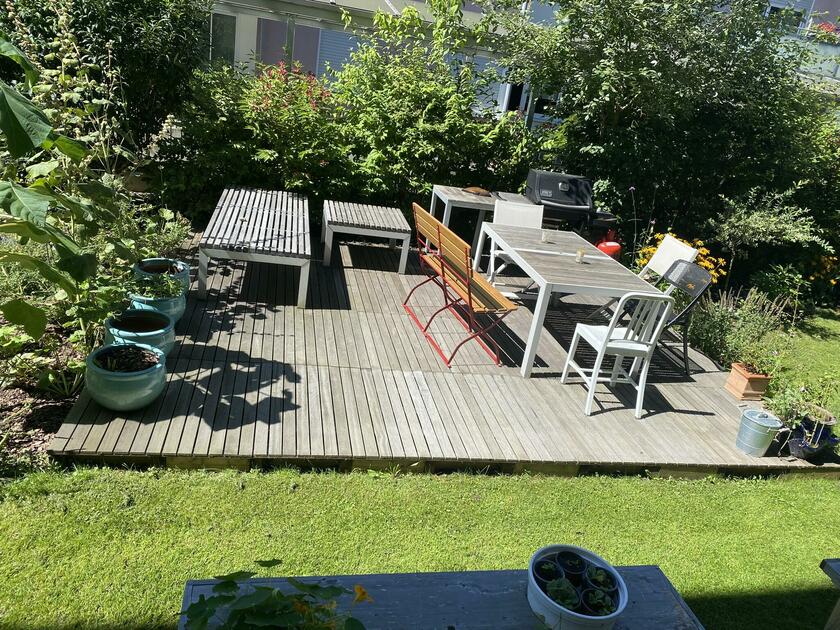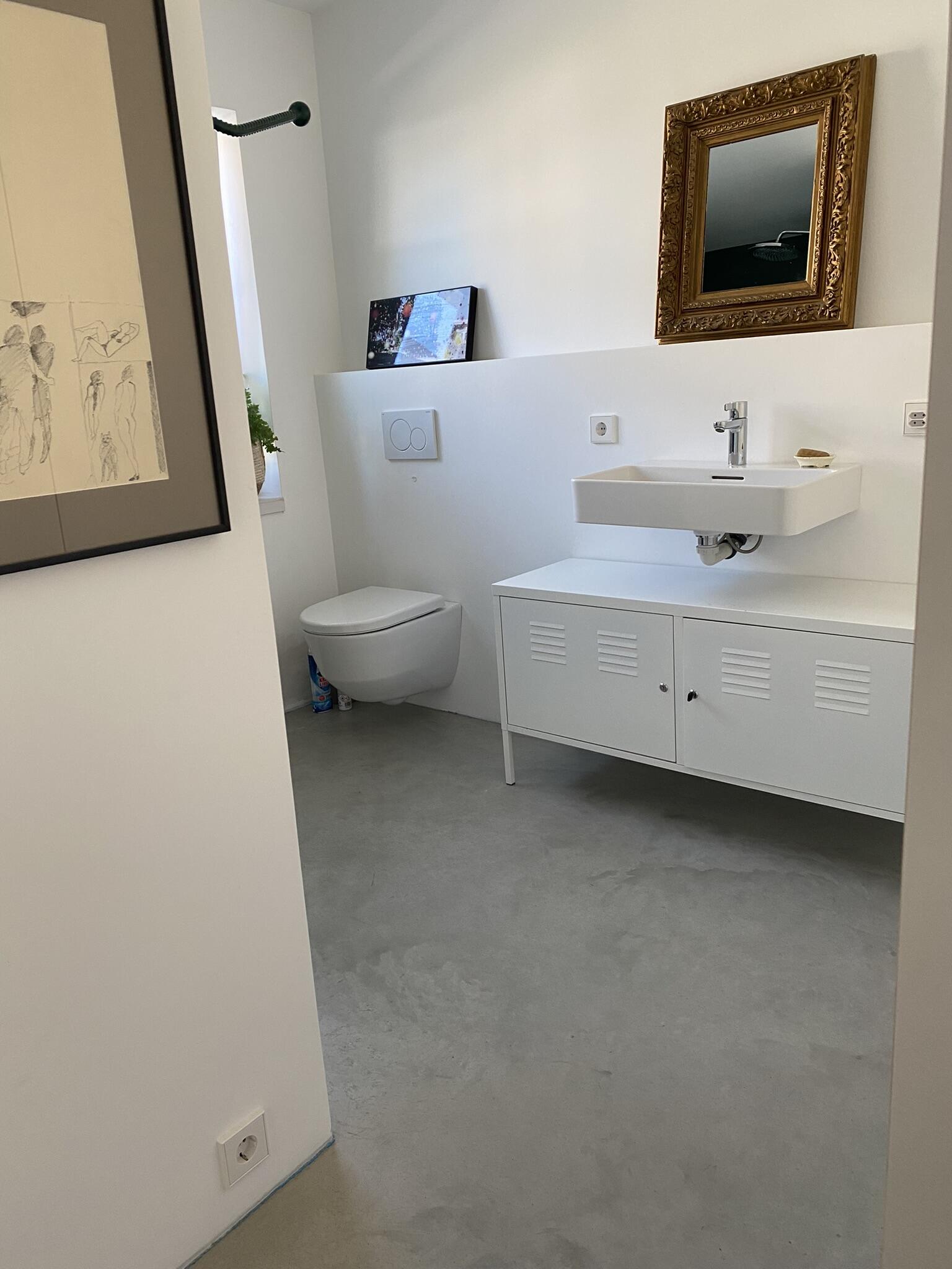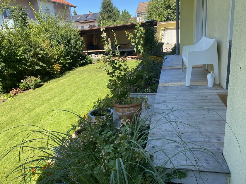 Die Wohnung befindet sich Hochparterre in einem Mehrparteienhaus in ruhiger und ländlicher Umgebung. Die Räume sind hell und zeitgemäß ausgestattet und möbliert. Stahlträger und Sichtestrich verleihen dem Wohnbereich einen loftartigen Charakter. Die offene Küche schließt direkt an den Wohn- und Essbereich an. Die Fenster der der Schlafzimmer, des Kinderzimmers und des Arbeitszimmers können mit Rollläden abgedunkelt werden. Nach vorheriger Absprache dürfen die Räume umgestaltet werden. Parkplätze bestehen direkt vor dem Haus und an der vorbeiführenden und wenig befahrenen Straße.