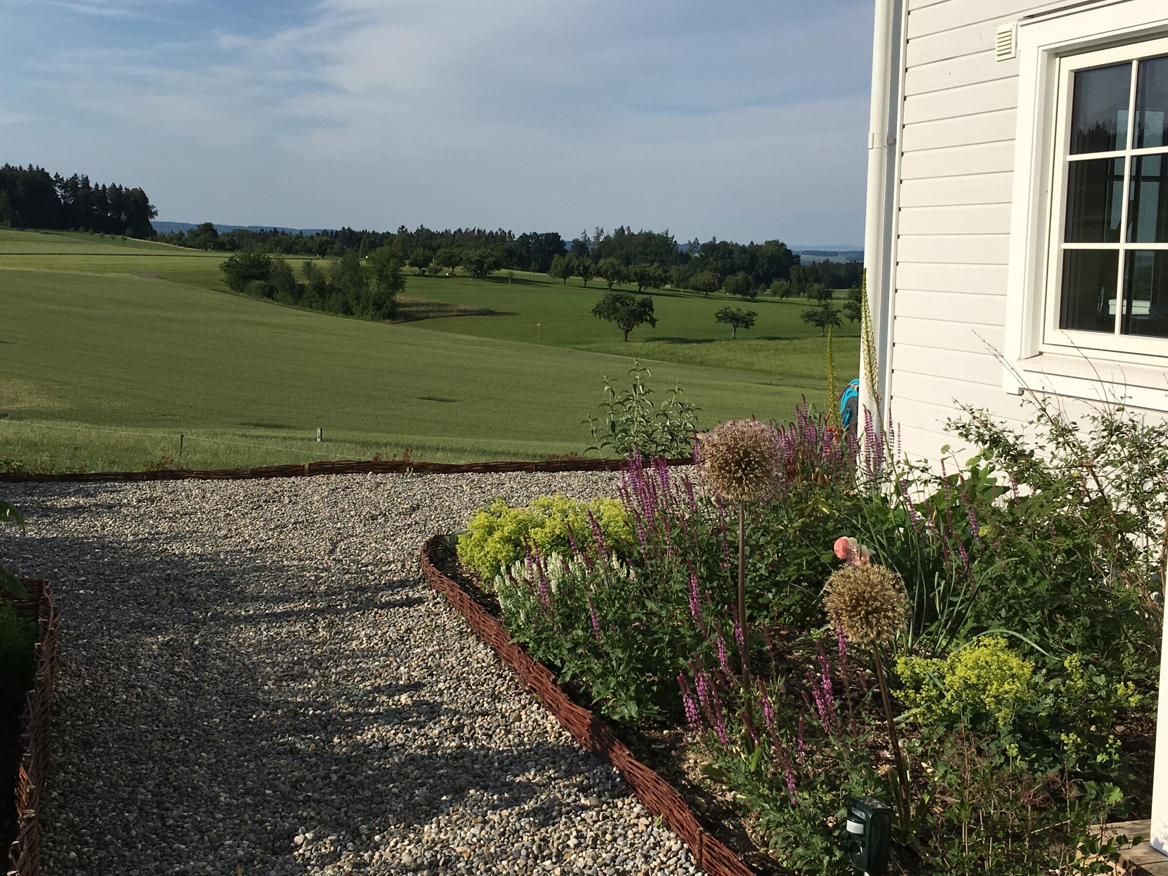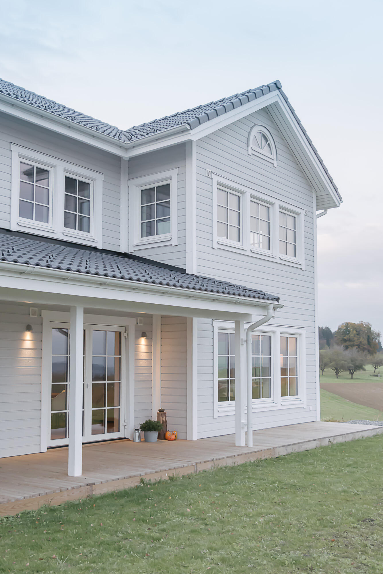 2017 wurde unser New England Haus erbaut und hat 180 m² Wohnfläche. Der englisch/skandinavische Stil zieht sich durch alle Zimmer. Alle Räume verfügen über ein Eichenparkett, außer dem Hauswirtschaftsraum, dieser ist mit weiss blauen Fliessen versehen. Eine Besonderheit ist die Farbwahl von Farrow & Ball, da jeder Raum eine eigene Farbe hat und doch harmonieren sie alle miteinander. Das Haus hat 33 schwedische Fenster wodurch es besonders hell ist. Die Landwirtschaftszone macht den Ausblick einzigartig. Das Haus verfügt über eine grosse Porch mit Holzterrasse, die es ermöglicht, sich auch bei schlechtem Wetter draussen aufzuhalten.