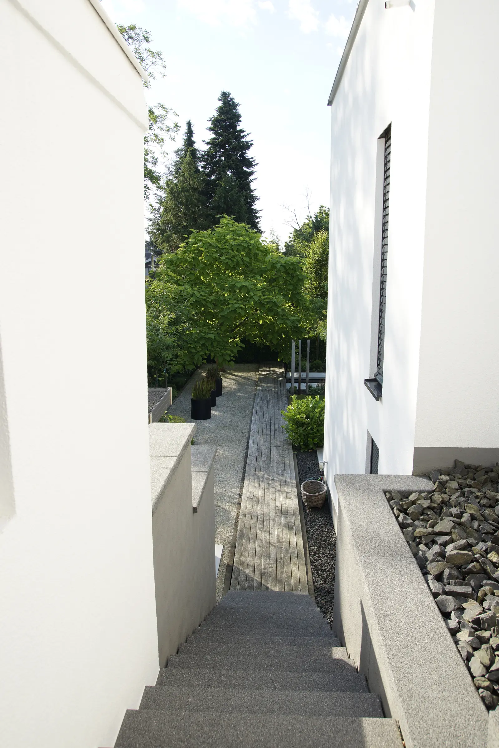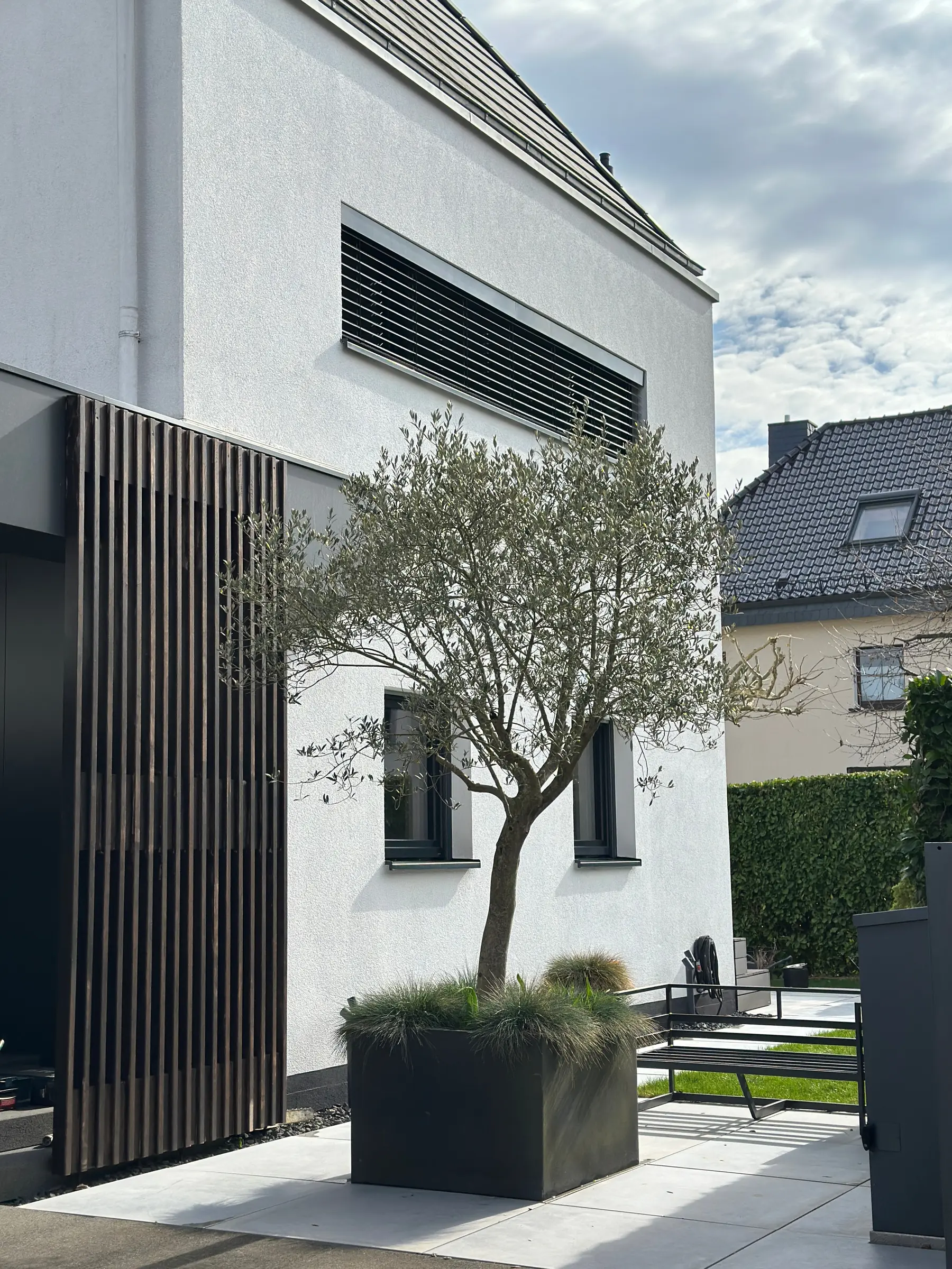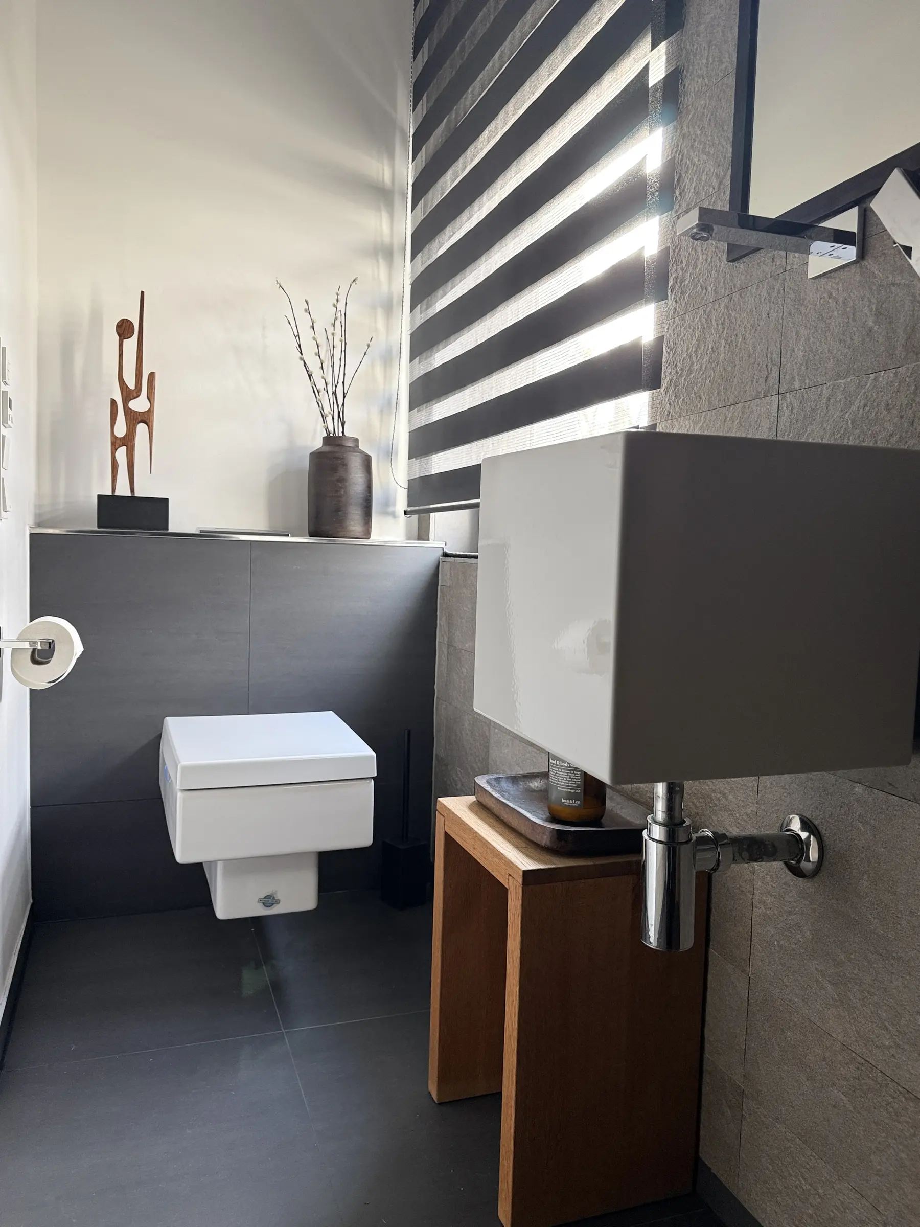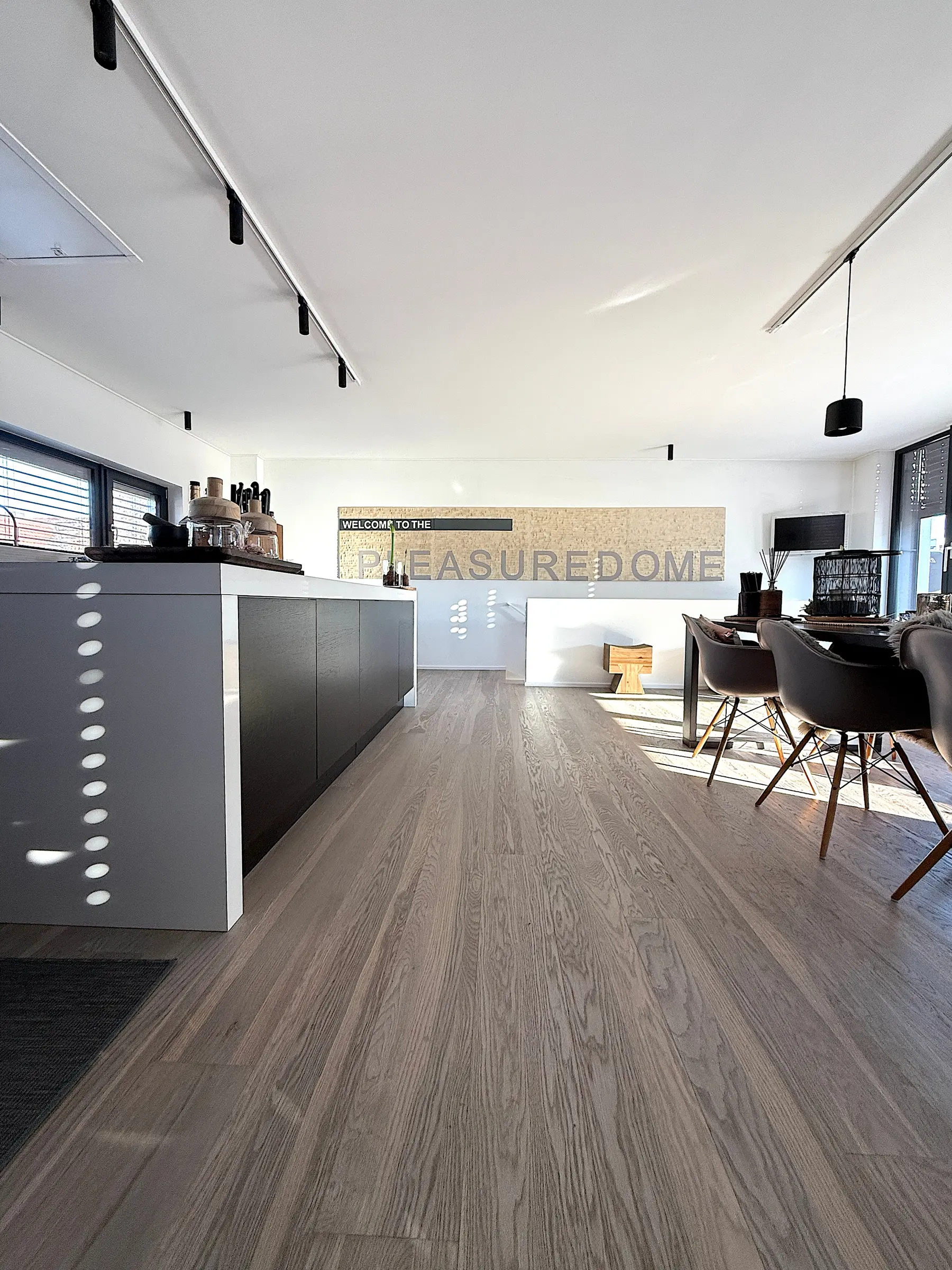 Unser moderner Neubau verbindet klare Architektur mit einer kuratierten Mischung aus Vintage-Designklassikern, zeitgenössischer Kunst und ausgewählten Ethno-Objekten. Die reduzierte, natürliche Farbwelt sowie die großen Fensterflächen schaffen eine ruhige, lichtdurchflutete Atmosphäre mit hoher räumlicher Tiefe. Das Haus verfügt über offene, ineinander übergehende Wohnbereiche mit großzügigem Wohn- und Essbereich, moderner Designküche, atelierartigem Arbeitsraum mit Glaswand sowie markanter Architektur mit Galerie- und Blickachsen zwischen den Ebenen. Alle Räume sind klar strukturiert und gut ausleuchtbar. Alle Fenster sind mit elektrischen Jalousien oder Rollos ausgestattet und können vollständig abgedunkelt werden. Die nach Süd-Osten ausgerichteten bodentiefen Fensterfronten im Wohnzimmer sowie im Küchen- und Essbereich erstrecken sich über die gesamte Hausbreite. An den Küchen- und Essbereich schließt eine große Dachterrasse an. Das Haus befindet sich in einer ruhigen Wohngegend in Bad Homburg mit sehr guter Erreichbarkeit von Frankfurt am Main. Vor dem Haus stehen öffentliche Parkplätze zur Verfügung. Zusätzlich verfügt das Objekt über eine Garage sowie einen privaten Stellplatz.