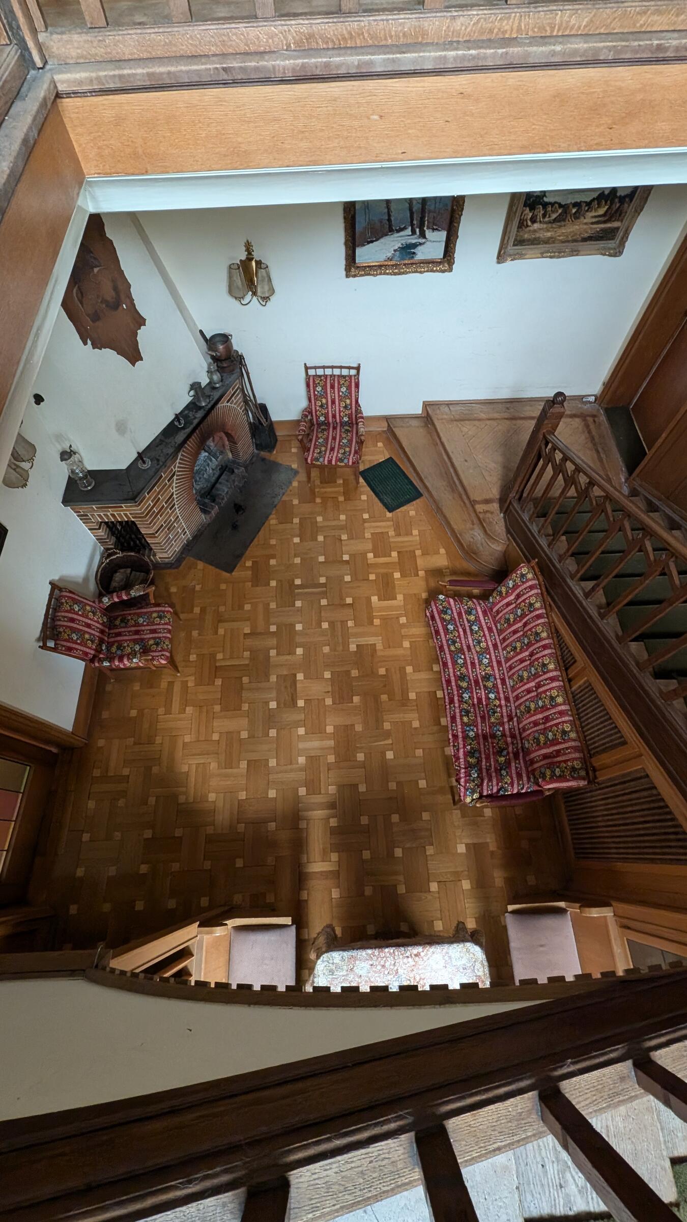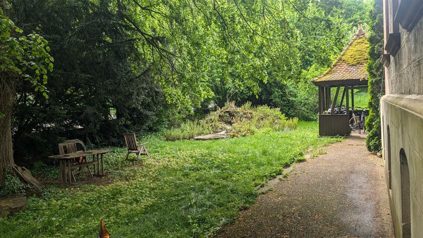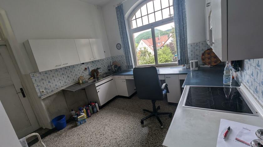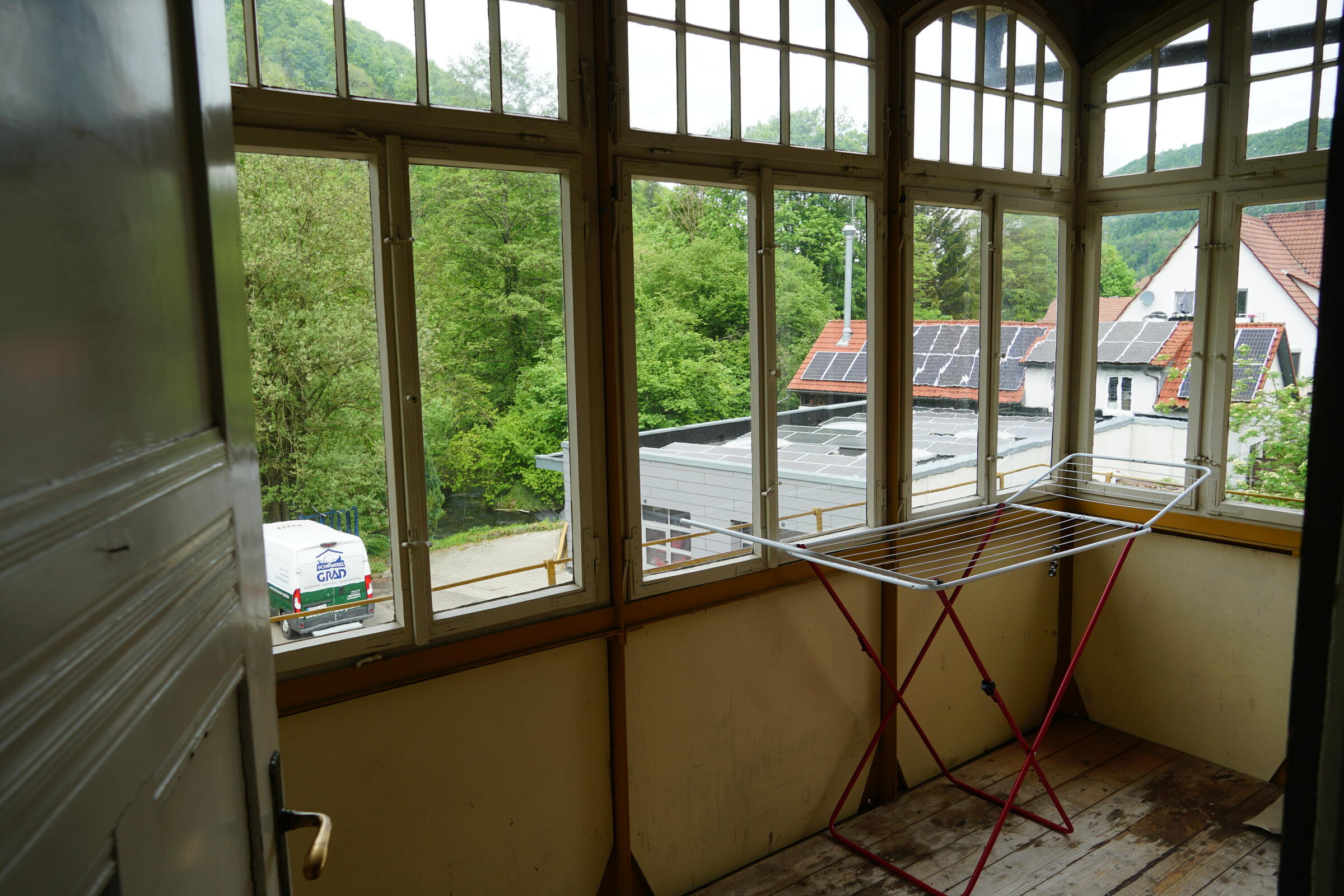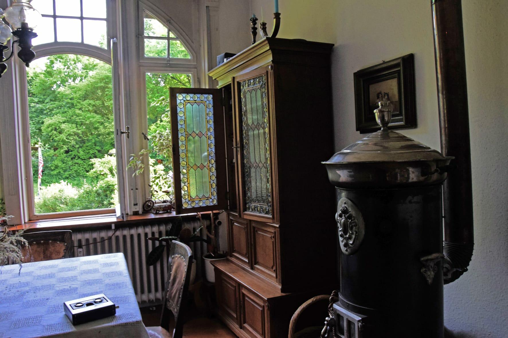 Die Wohnung befindet sich einer mehr als 100 Jahre alten Jugendstilvilla, in der mittleren Etage. Die Räume bieten hohe Decken und sind möbliert. Auf den Böden der Wohnräume ist Parkett verlegt. Das Badezimmer ist gefliest. Die meisten Fenster können mit Hilfe von Vorhängen verdunkelt werden. Nach Absprache dürfen die Räume zu Produktionszwecken umgestaltet werden. Im Außenbereich kann ebenfalls ein großer Garten genutzt werden. Das Grundstück befindet sich an zwei Straßen, wodurch Verkehrslärm im Hintergrund zu hören ist. Vor dem Haus und in der näheren Umgebung stehen Parkplätze zur Verfügung.