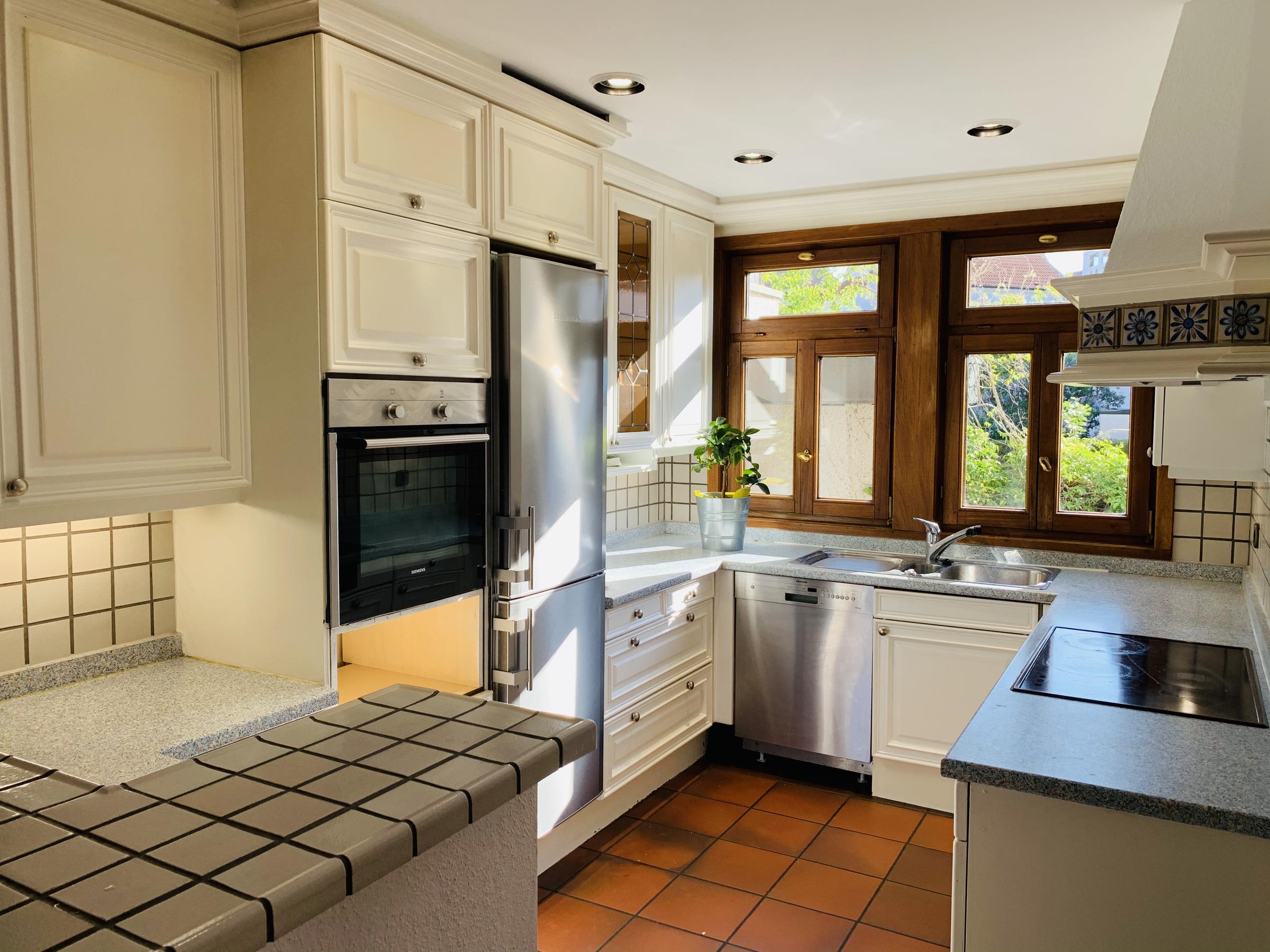 Dieses Haus bietet die perfekte Kombination aus zentraler Lage und einer grünen Oase in der Stadt Metzingen. Die zu vermietende Hauptwohnung besticht durch ihren großzügigen Grundriss und verfügt über insgesamt ca 280 m² Wohnfläche. Sie setzt sich im EG zusammen aus einer hellen Küche mit Speisekammer, einem Arbeits- sowie einem Gästezimmer, einem Ess- und einem großzügigen Wohnbereich. Darüber hinaus befindet sich in der weitläufigen Diele ein Gäste-WC. Das Haus ist mit einer Fußbodenheizung ausgestattet, zusätzlich ist ein Holz-Kachelofen vorhanden. Vom Wohn-und Essbereich gibt es einen direkten Zugang zu der großen Veranda, welche Sie in den wunderschönen und großen Garten mit 1000 m² mit altem Baumbestand führt. Dieser kann exklusiv genutzt werden.