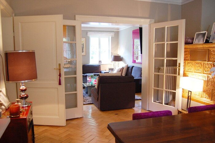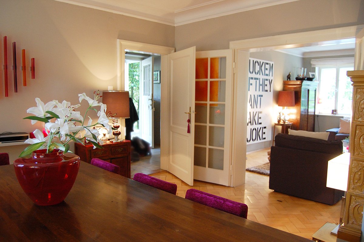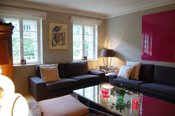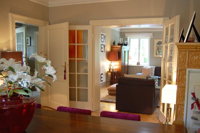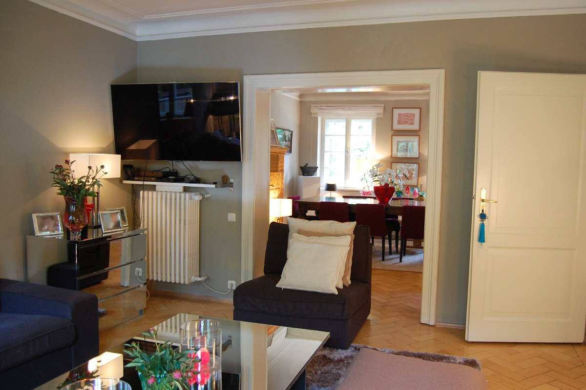 Das bezaubernde, sehr familiär geführte Haus, liegt etwas zurückgesetzt in einer sehr exklusiven Münchner Wohngegend an einer ruhigen Straße. Die ganz in weiß gestrichene Reihenhaushälfte besitzt Sprossenfenster mit hübschen Fensterläden, was dem Stadthaus einen sehr wohnlichen und einladenden Charakter verleiht. Ein kleiner gepflegter Vorgarten und ein nach Westen und hinter dem Haus ausgerichteter Hauptgarten, unterstreichen den edlen und klassischen Baustil. Erwähnenswert ist die blickgeschützte Terrasse, die in den Garten führt. Die über 3 Stockwerke verteilten Räume des Hauses, stehen für Film und Fotoproduktionen zur Verfügung. Hinsichtlich Setbau und Setdesign ist vieles nach Absprache möglich. Es besteht die Möglichkeit das Mobiliar nach Bedarf umzustellen und zu dekorieren. Auch Änderungen der Wandfarbe im Innenbereich sind möglich. Als zusätzliches Highlight kann ein roter Porsche Carrera, der zum Haushalt gehört, angefragt werden.