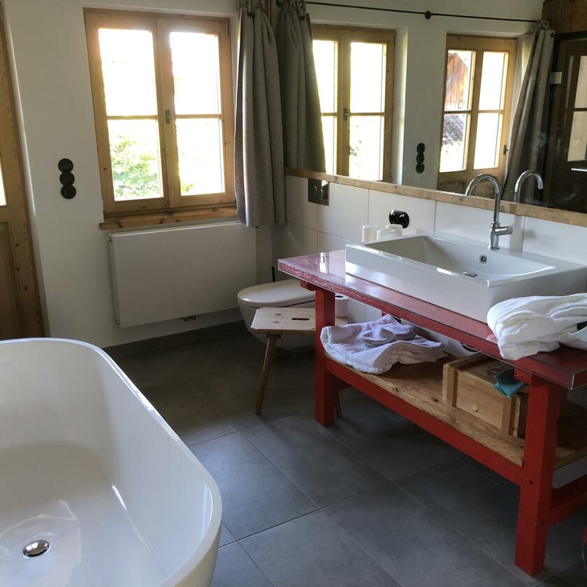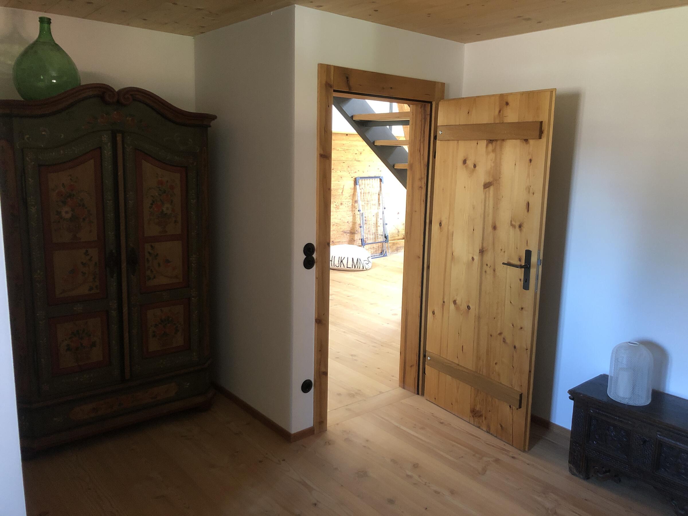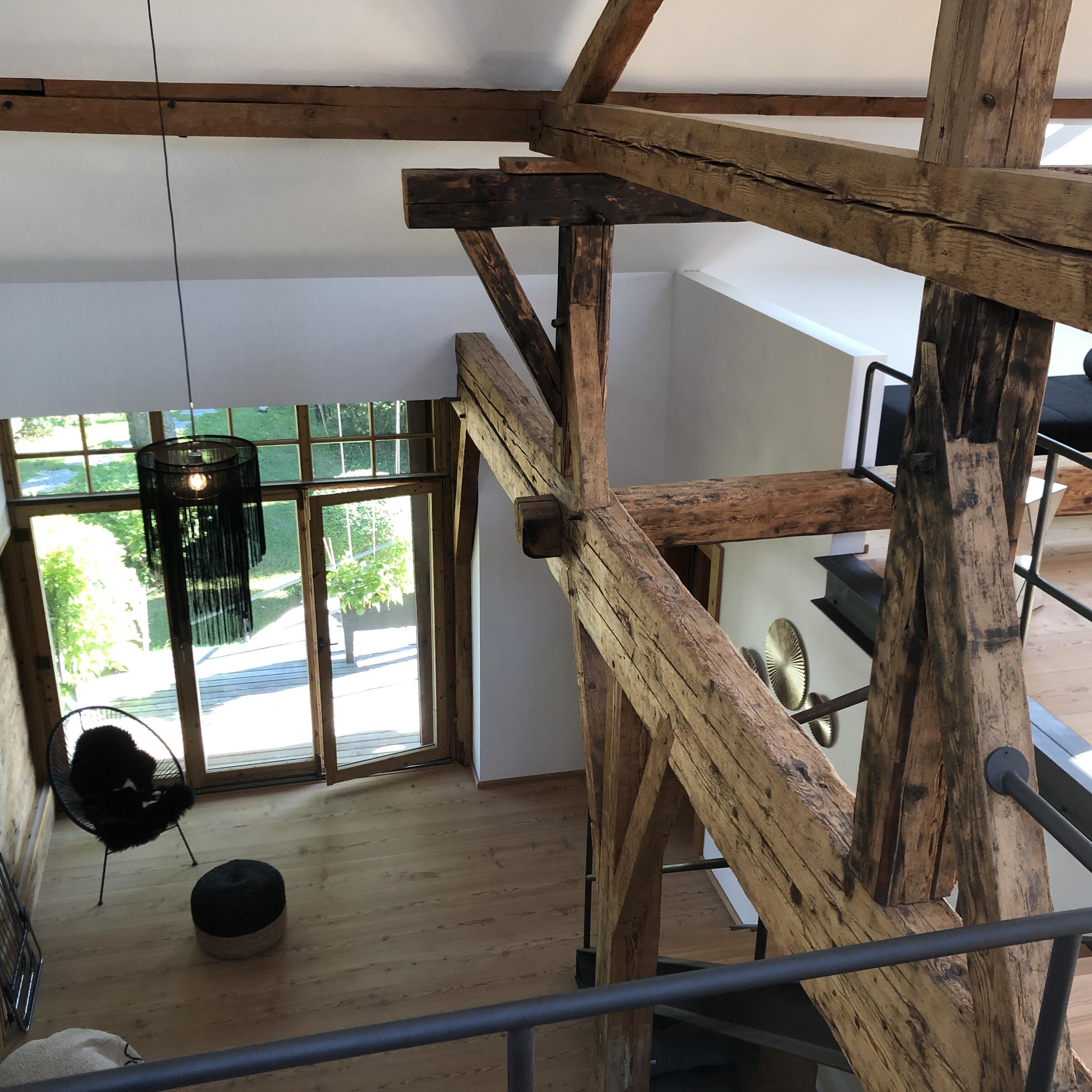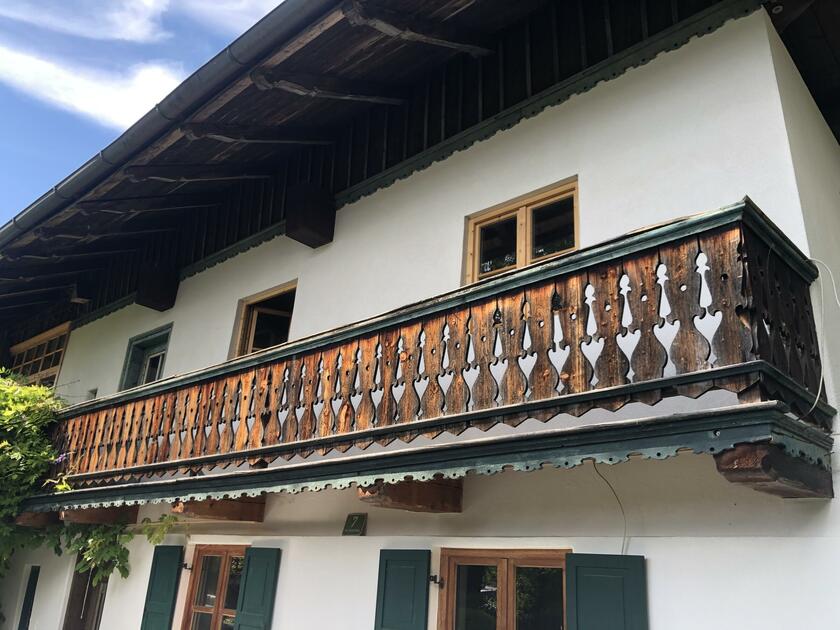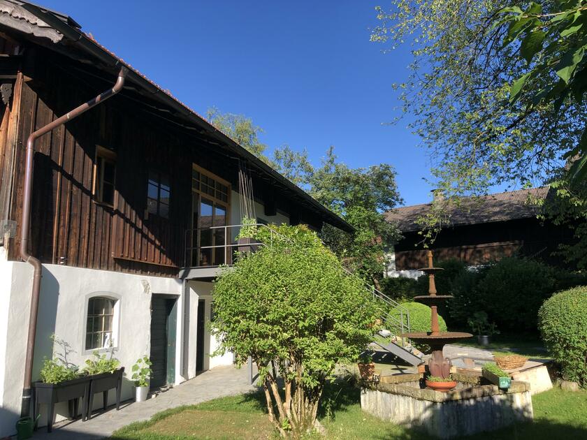 Das 200 Jahre alte Bauernhaus befindet sich in einem denkmalgeschützen Ensemble in der schönsten Straße von Benediktbeuern. Das Haus wurde in den vergangenen 7 Jahren kernsaniert und liebevoll restauriert. Wir haben darauf geachtet, heimische und ursprüngliche Materialen zu verwenden und sie mit modernen Design-Elemente verbunden. Das Haus bietet im Inneren sehr viel Licht und Luft, da 1. und 2. OG jeweils loftartig zusammengefasst sind. Das Haus steht in einem gepflegten Bauerngarten mit diversen Obstbäumen. Auf der Südseite befindet sich einen große, mit Buchsbaum eingefasste Terrasse. Schmuckstücke sind die markante Außentreppe, die ausgebaute Tenne mit Einschnitzungen im Holz aus dem 19. Jahrhundert und das modern gestaltete, fast 50 m² große Wohnzimmer im 1. OG.