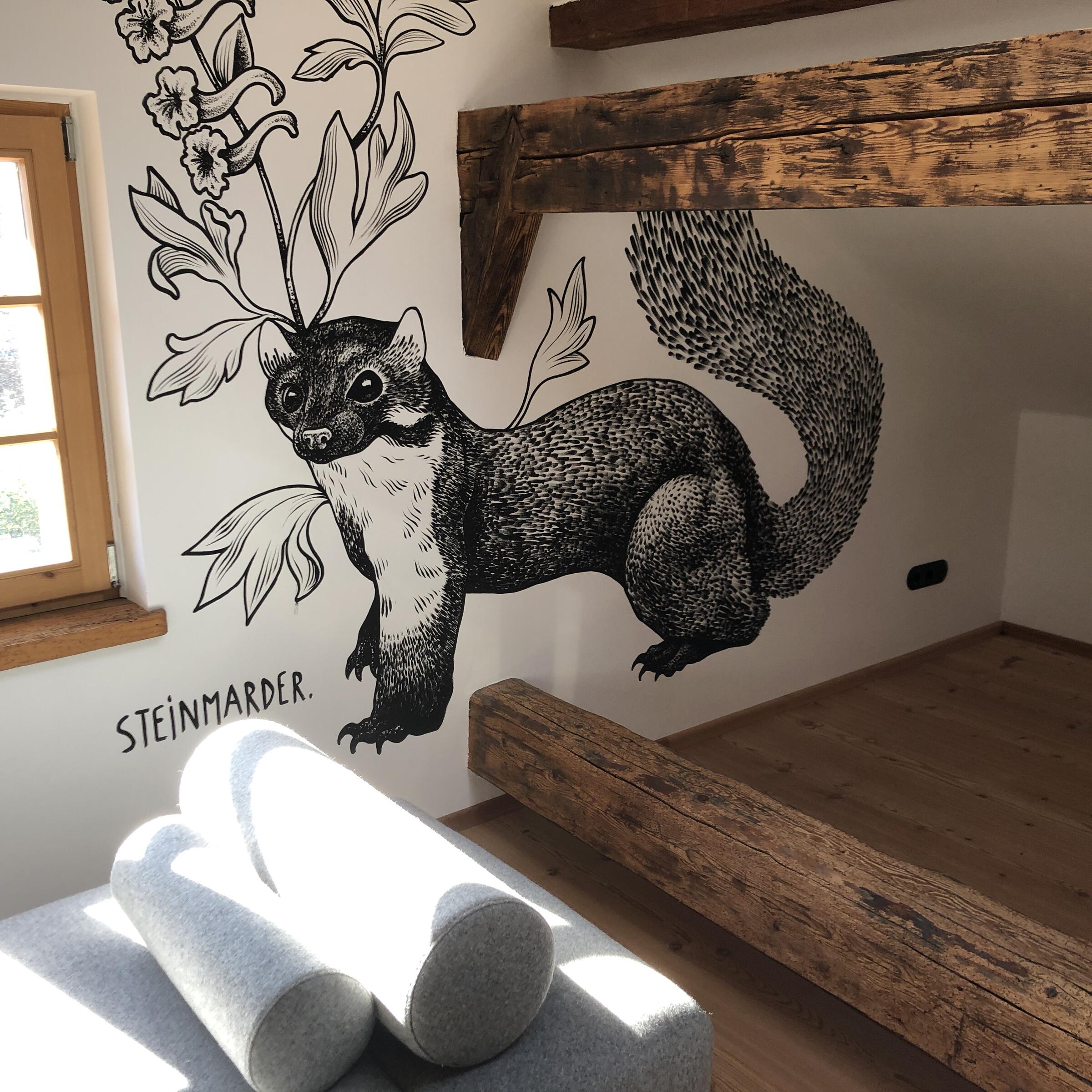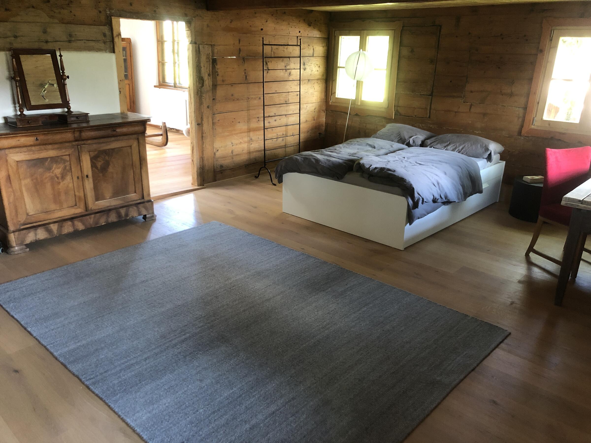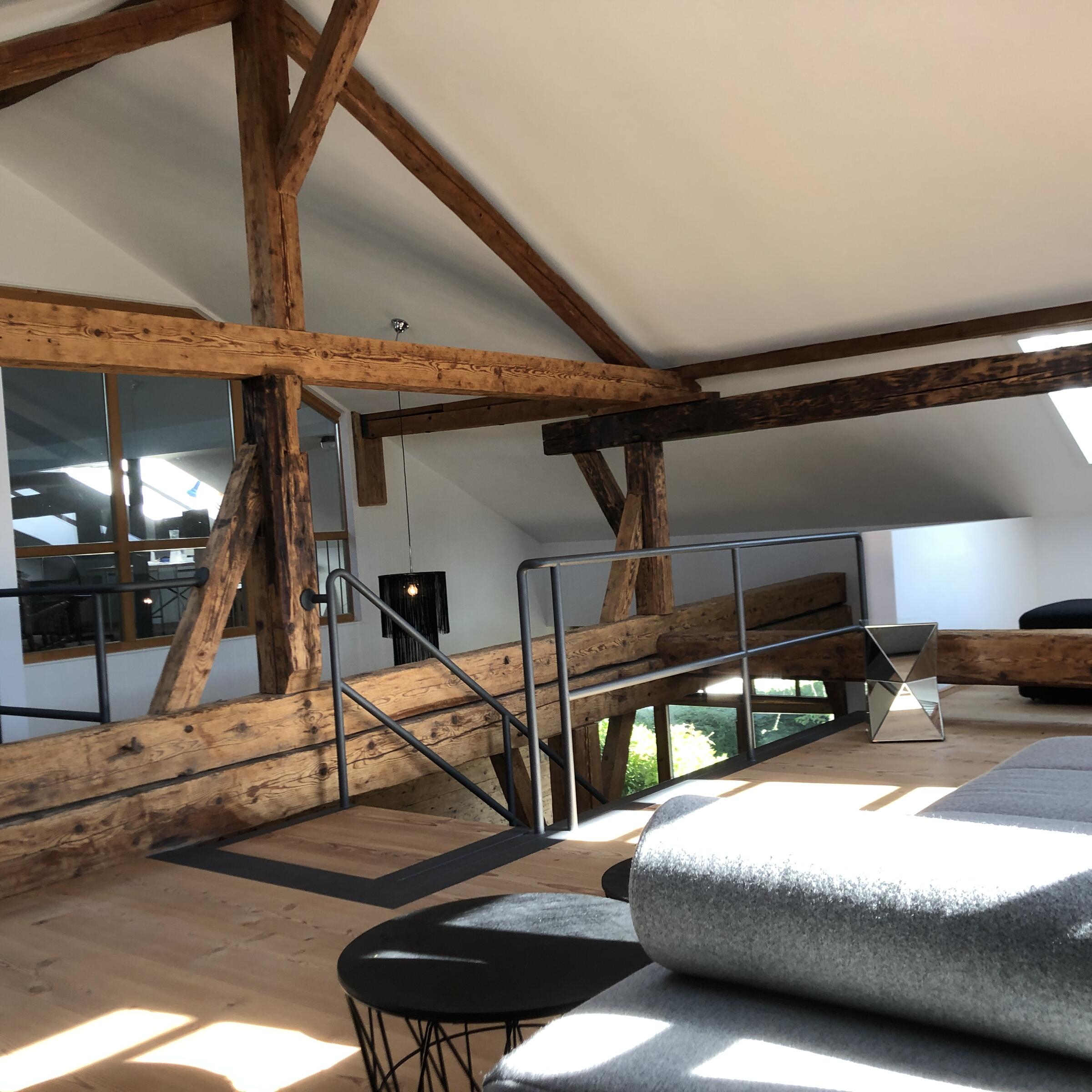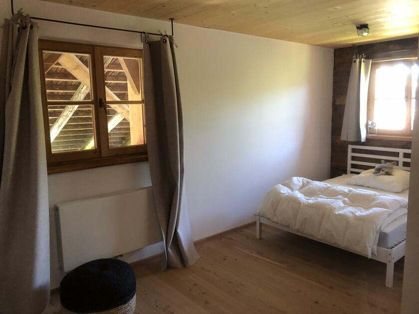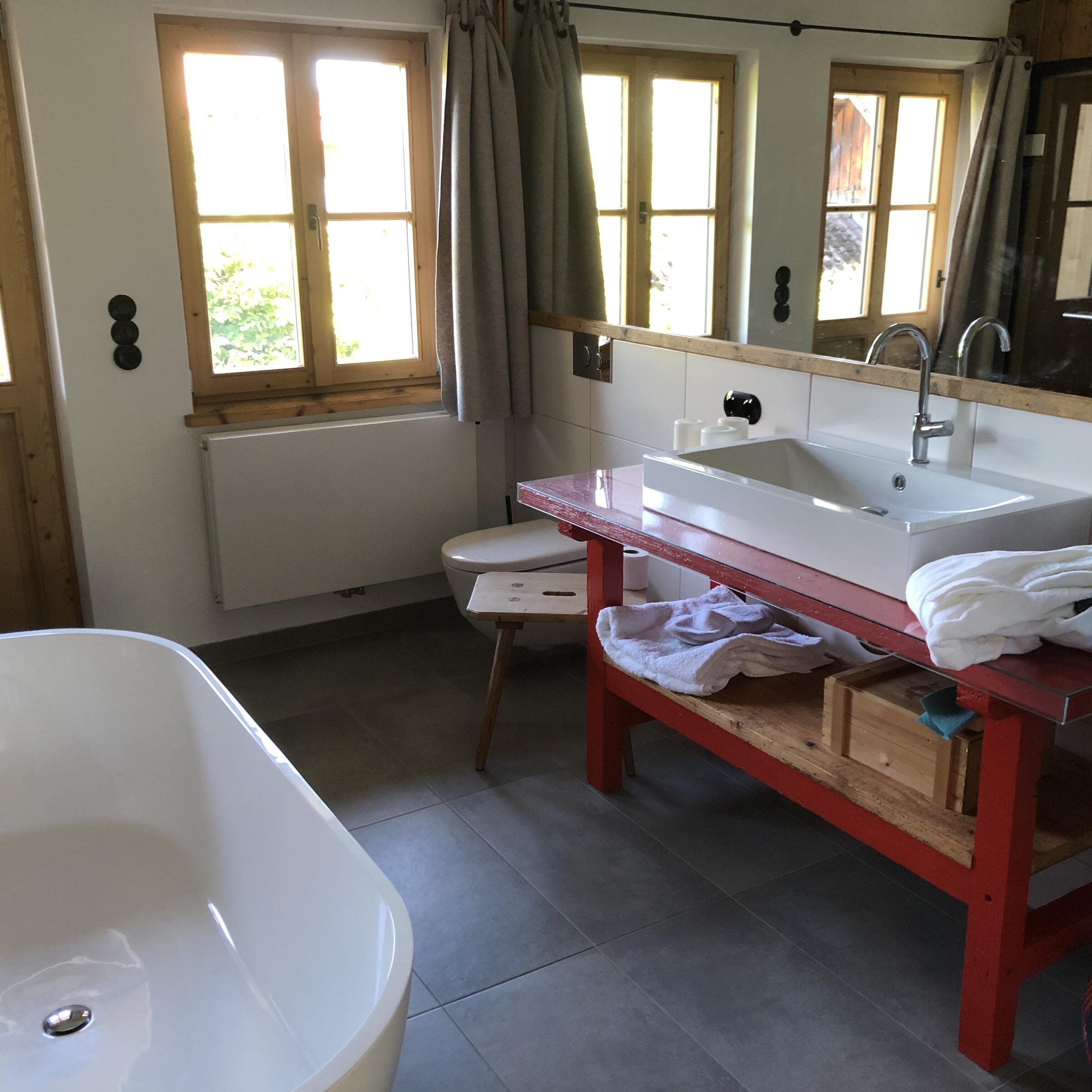 Das 200 Jahre alte Bauernhaus befindet sich in einem denkmalgeschützen Ensemble in der schönsten Straße von Benediktbeuern. Das Haus wurde in den vergangenen 7 Jahren kernsaniert und liebevoll restauriert. Wir haben darauf geachtet, heimische und ursprüngliche Materialen zu verwenden und sie mit modernen Design-Elemente verbunden. Das Haus bietet im Inneren sehr viel Licht und Luft, da 1. und 2. OG jeweils loftartig zusammengefasst sind. Das Haus steht in einem gepflegten Bauerngarten mit diversen Obstbäumen. Auf der Südseite befindet sich einen große, mit Buchsbaum eingefasste Terrasse. Schmuckstücke sind die markante Außentreppe, die ausgebaute Tenne mit Einschnitzungen im Holz aus dem 19. Jahrhundert und das modern gestaltete, fast 50 m² große Wohnzimmer im 1. OG.