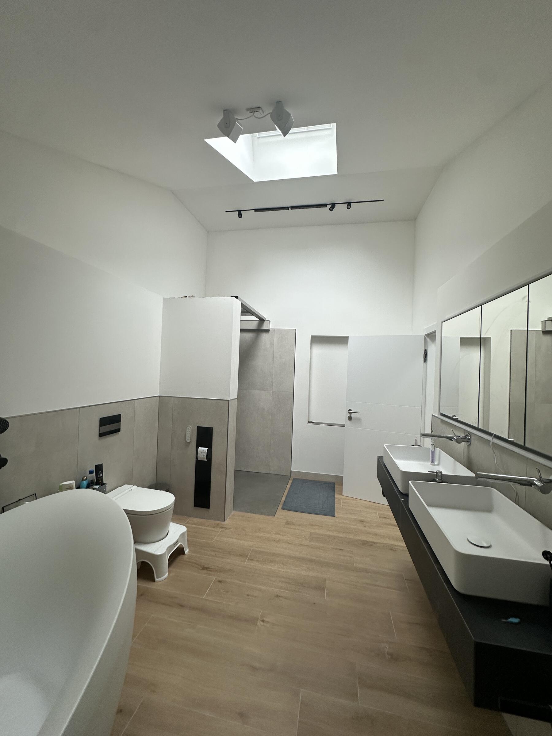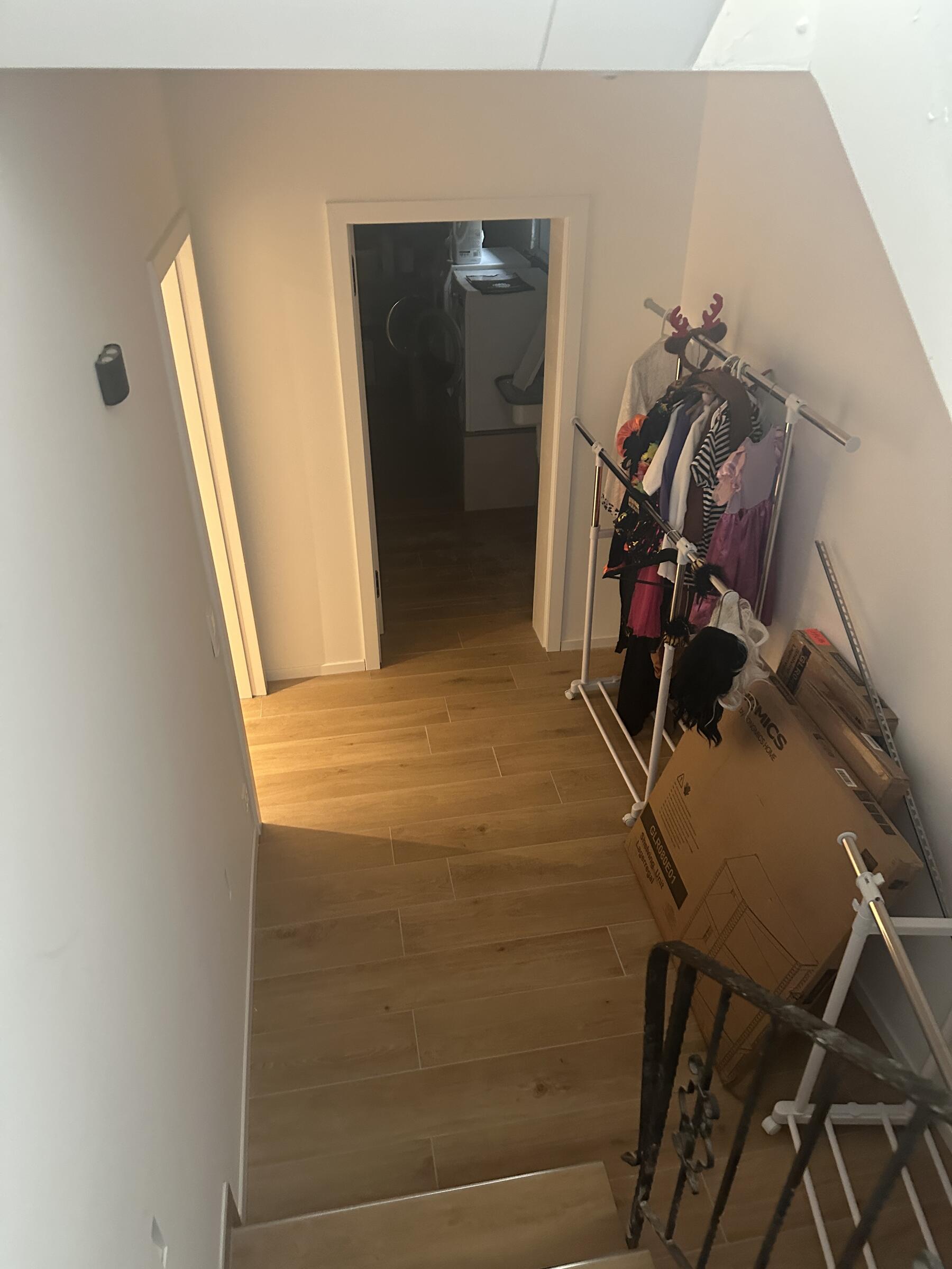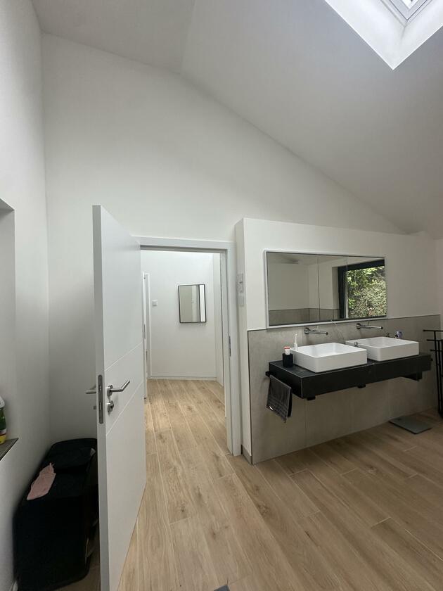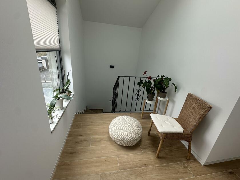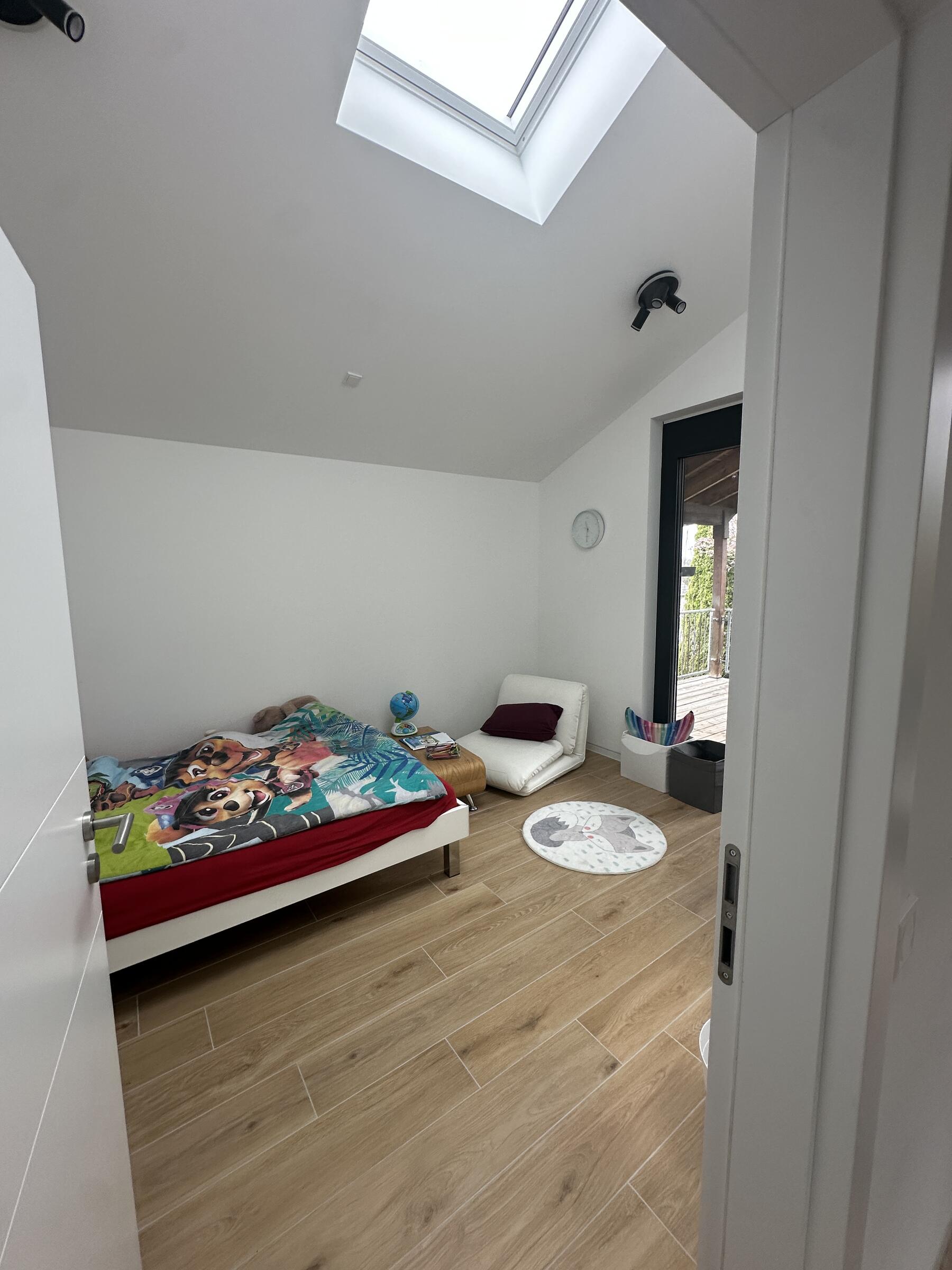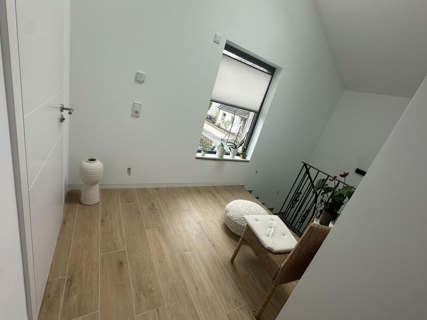 Unser Haus befindet sich in einer ruhigen Wohngegend. Der große Wohn- und Essbereich im Erdgeschoss ist offen gestaltet. Die Küche schließt direkt an den Essbereich an und verfügt über eine Kochinsel. Die Räume sind modern und funktional eingerichtet. Die teilweise bodentiefen Fenster ermöglichen Tageslicht in den Wohnräumen. Die Fenster in der Küche, im Wohn- und Essbereich und im Obergeschoss können mit Raffstores verdunkelt werden. Die Räume können nach Absprache umgestaltet werden. Im Außenbereich kann unsere Loggia genutzt werden. Vor dem Haus gibt es 2 Pkw-Parkplätze. Weitere Stellflächen befinden sich auf der verkehrsberuhigten, vorbeiführenden Straße.