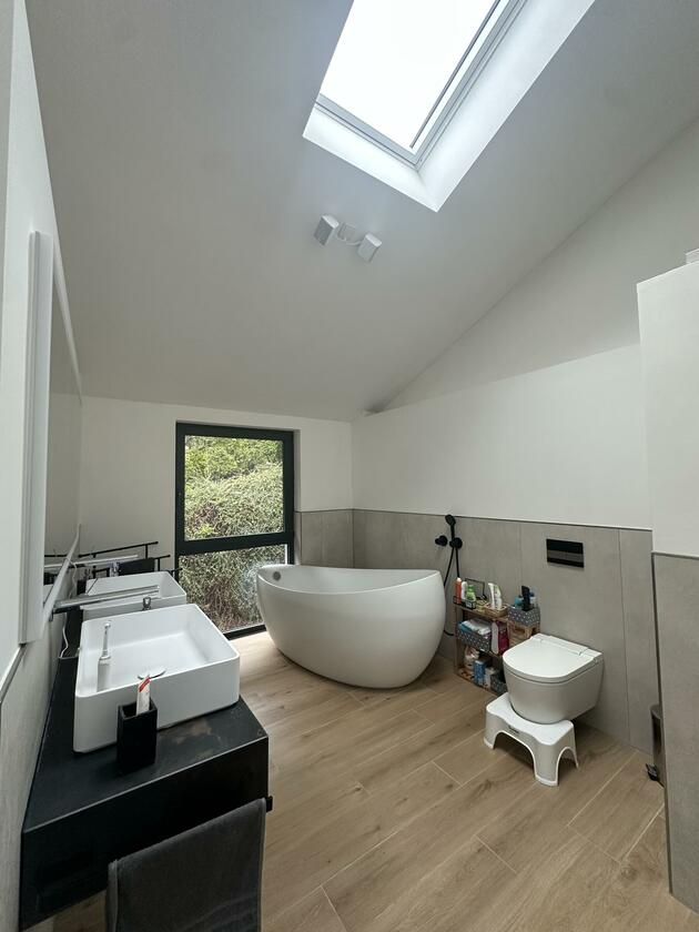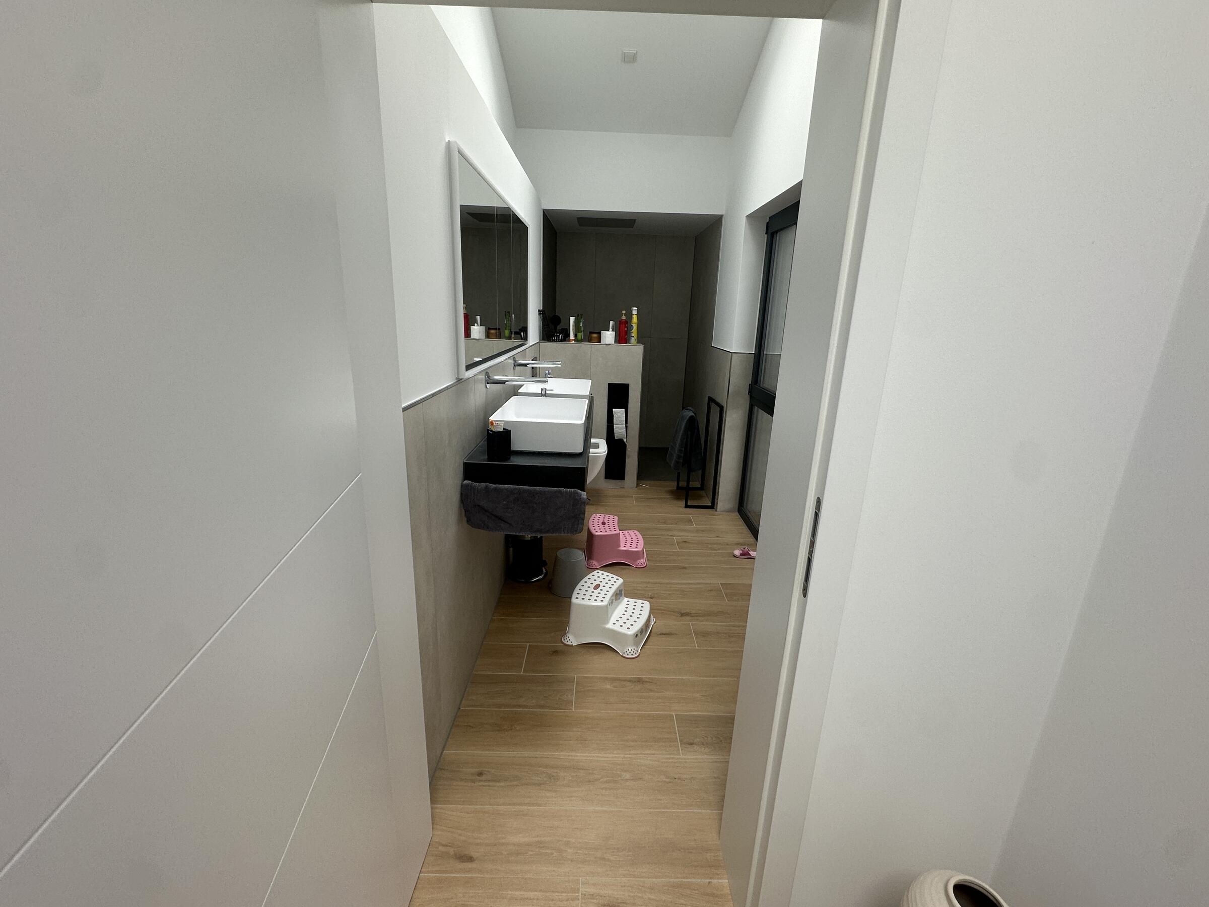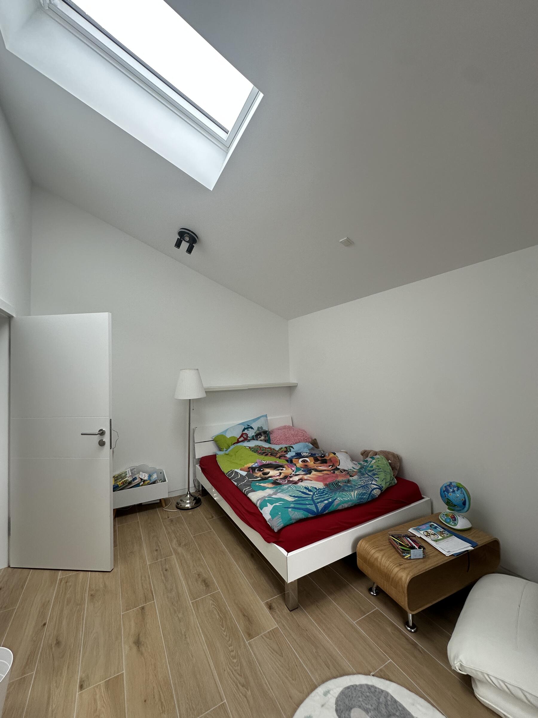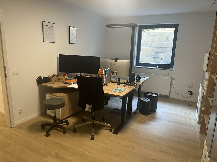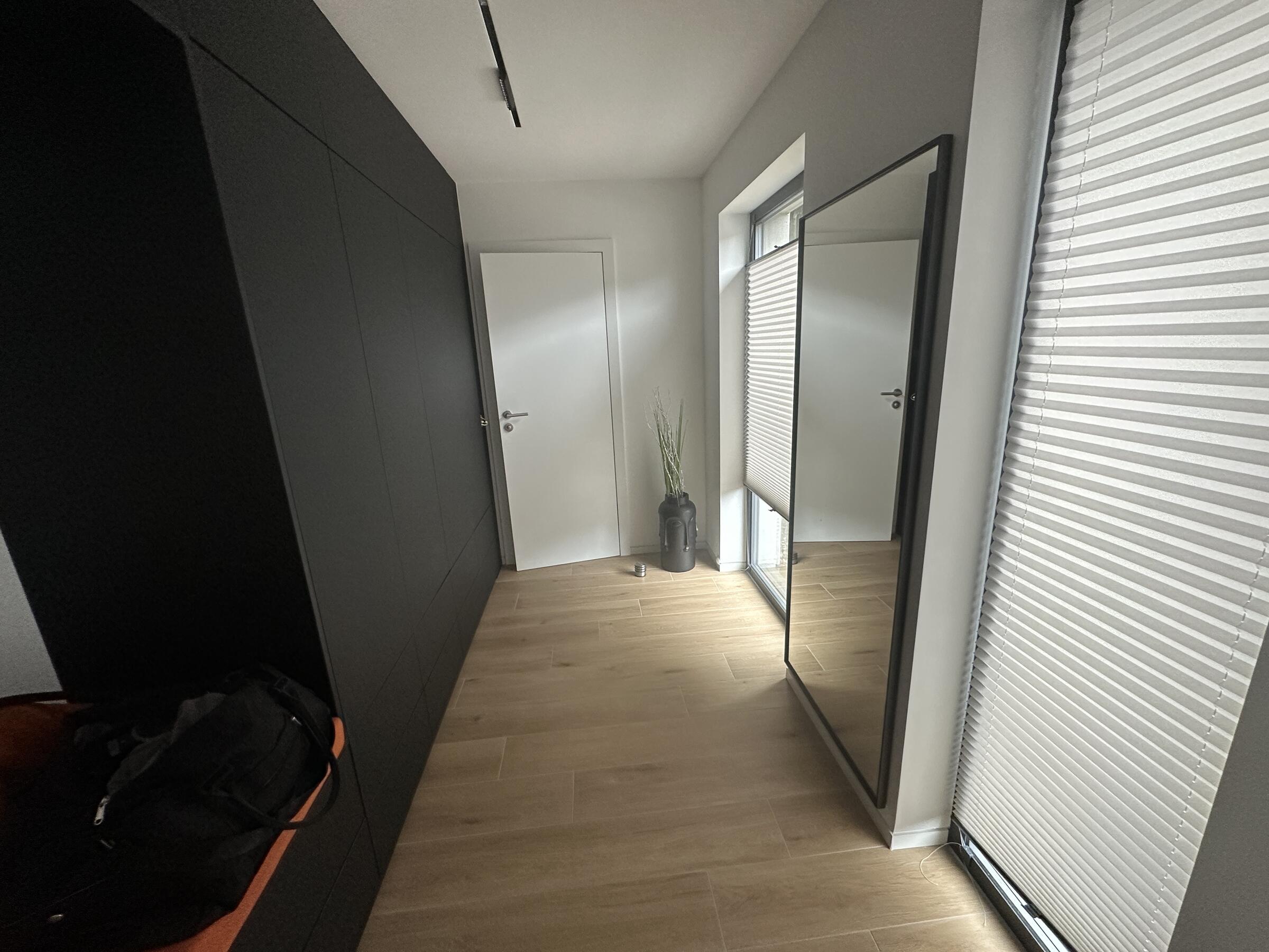 Unser Haus befindet sich in einer ruhigen Wohngegend. Der große Wohn- und Essbereich im Erdgeschoss ist offen gestaltet. Die Küche schließt direkt an den Essbereich an und verfügt über eine Kochinsel. Die Räume sind modern und funktional eingerichtet. Die teilweise bodentiefen Fenster ermöglichen Tageslicht in den Wohnräumen. Die Fenster in der Küche, im Wohn- und Essbereich und im Obergeschoss können mit Raffstores verdunkelt werden. Die Räume können nach Absprache umgestaltet werden. Im Außenbereich kann unsere Loggia genutzt werden. Vor dem Haus gibt es 2 Pkw-Parkplätze. Weitere Stellflächen befinden sich auf der verkehrsberuhigten, vorbeiführenden Straße.
