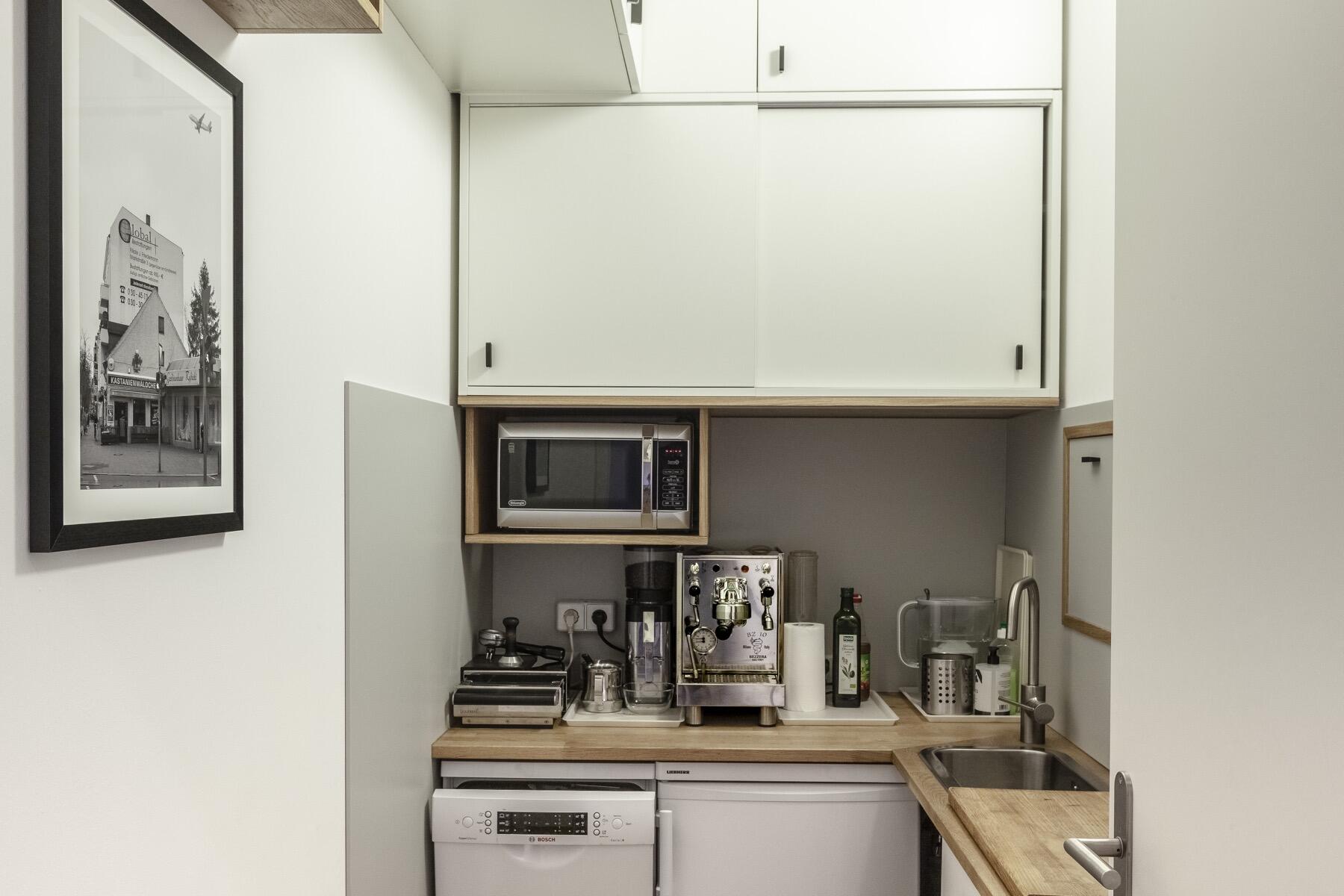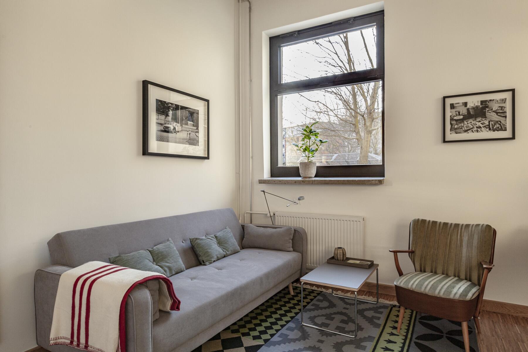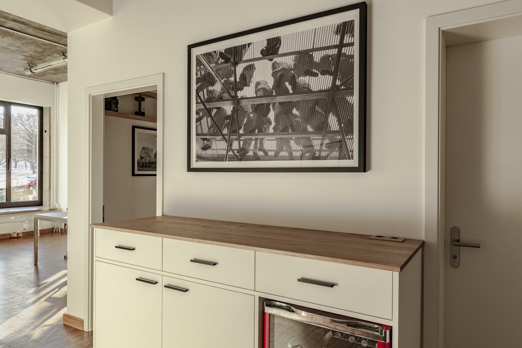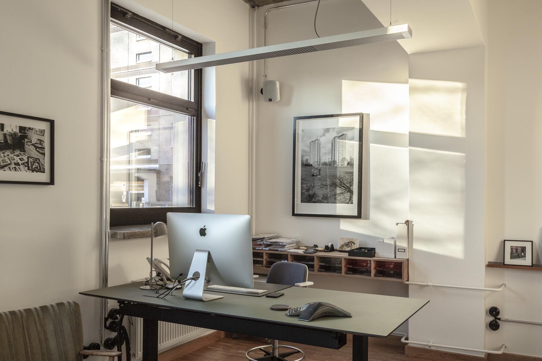 Unser neues 150 m² großes Büro befindet sich in Berlin-Mitte und bietet einen großen und zwei kleine Räume. Die großen Fensterfronten lassen nicht nur viel Tageslicht in die Räume, sondern bieten auch ausreichend Platz für Beleuchtung und Aufnahmetechnik. Die Inneneinrichtung besticht durch handgefertigte, großzügige Arbeitstische und Möbel im Bauhaus- und Industriestil. Die durchdachte Infrastruktur sorgt für eine nahtlose Arbeitsumgebung. Schnelles DSL mit 400 Mbit/s ist vorhanden. Zahlreiche Schukoanschlüsse stehen für Ihre elektronischen Geräte bereit. Darstellbar sind diverse Co-Working- und andere Arbeitssituationen, Verkaufsraum und Gastronomie.