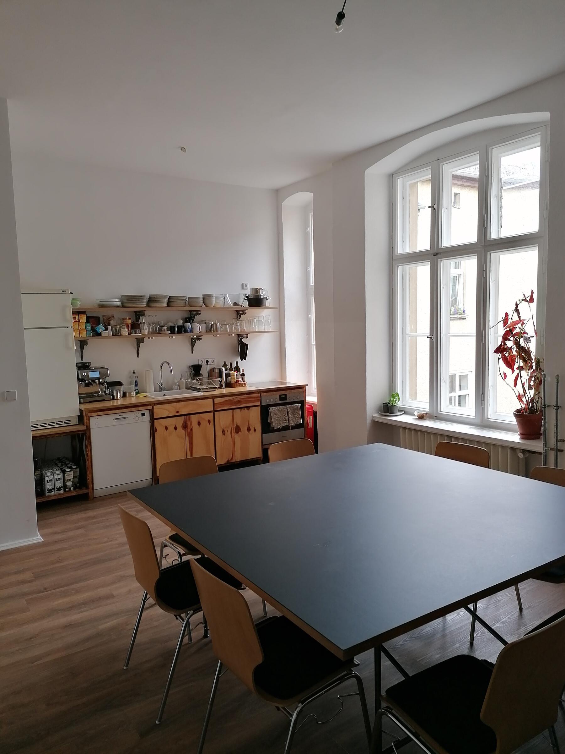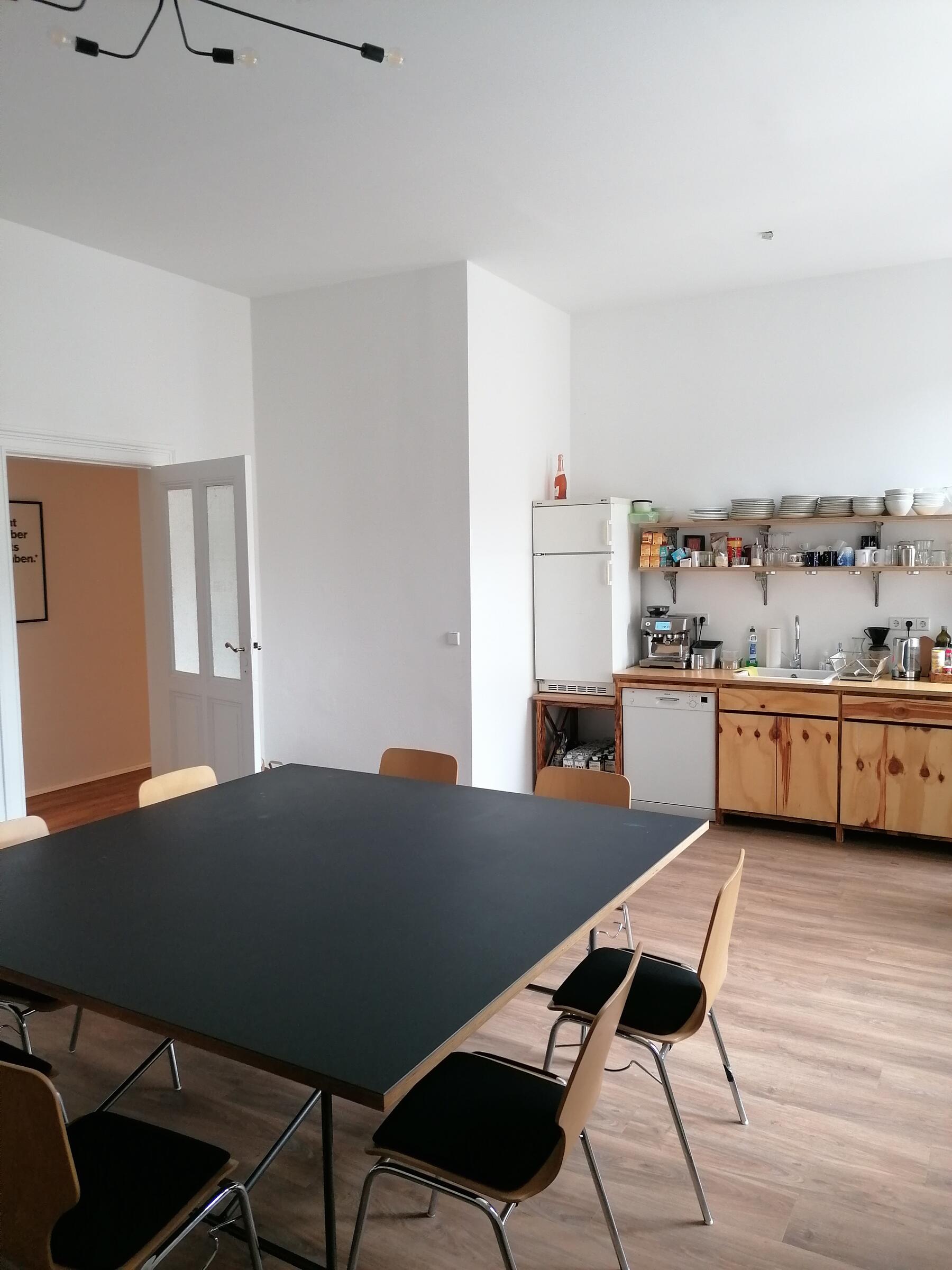 Die wunderschöne Büroetage befindet sich im 3. Obergeschoss in einem ruhigen Berliner Altbau mit hohen Decken und minimalistischer Einrichtung. Das Gebäude befindet sich mitten in Kreuzberg nahe des Anhalter Bahnhofs und der Stresemannstraße. Zur Verfügung steht die großzügige Wohnküche mit einem großen Tisch und einer gemütlichen Couch. Außerdem ein großer, heller Besprechungsraum, ein sehr langer Flur und verschiedene Zimmer mit Büroausstattung. Die Ausstattung ist minimalistisch gehalten. Die Räume sind alle hell und lichtdurchflutet, das verleiht den Räumen einen modernen Look und verbindet Moderne mit dem Kiezleben auf den Kreuzberger Straßen.