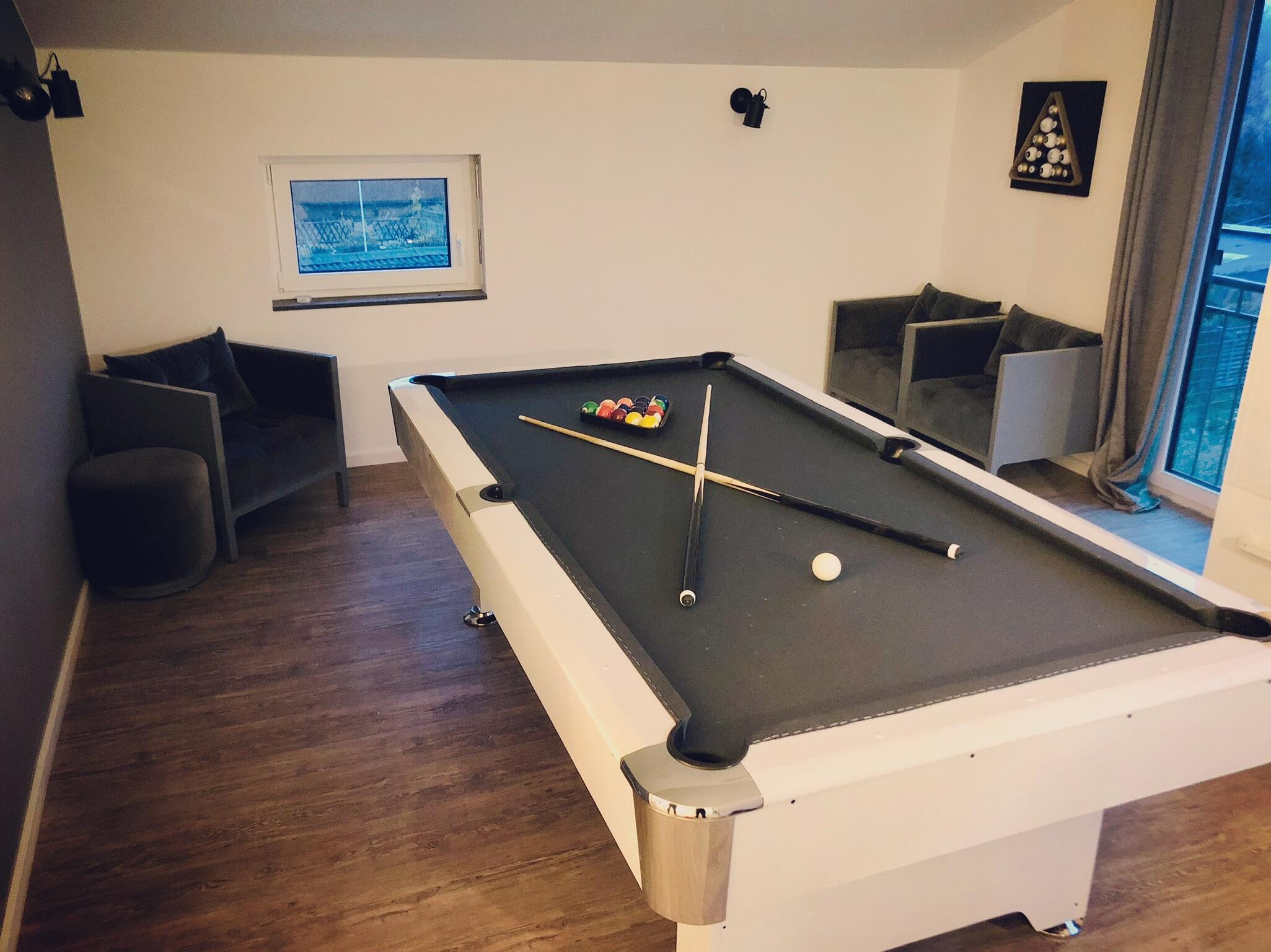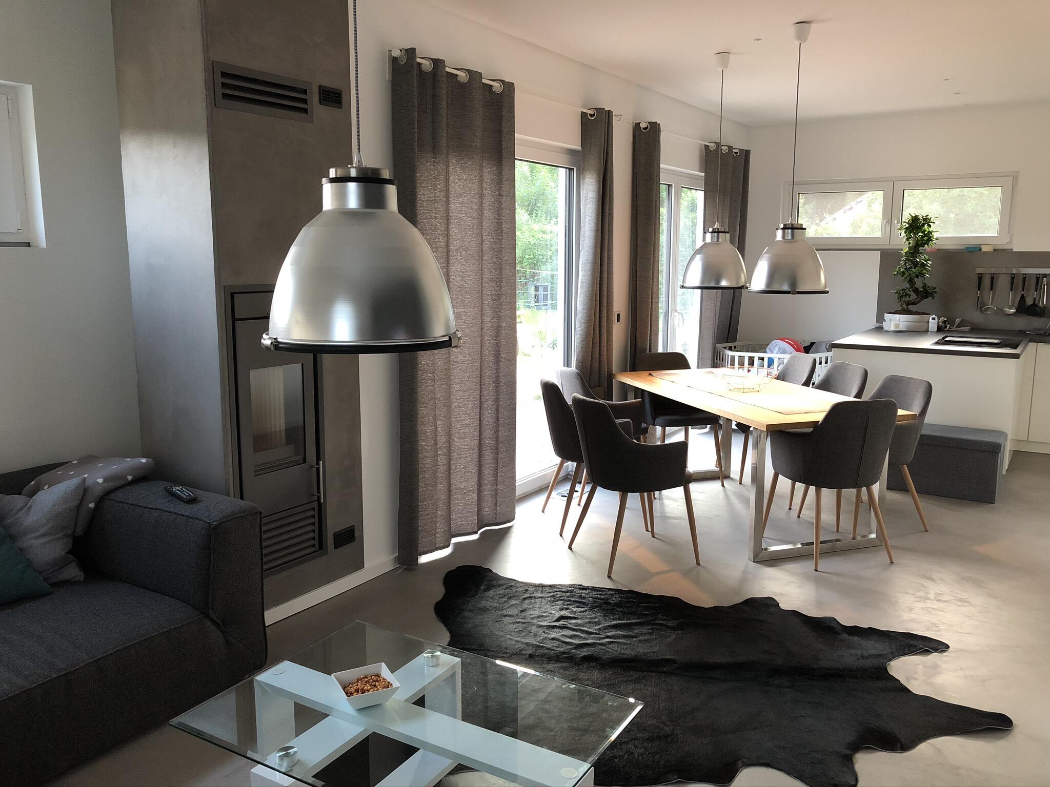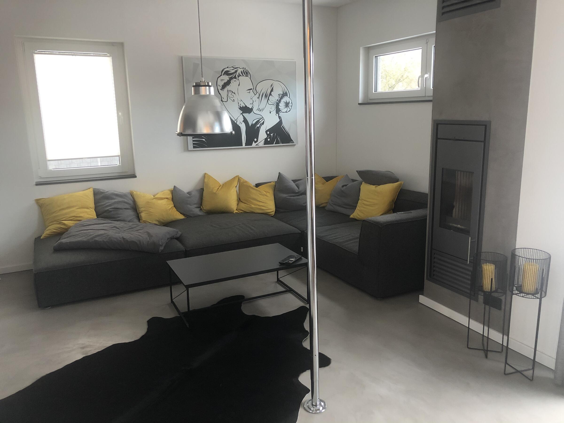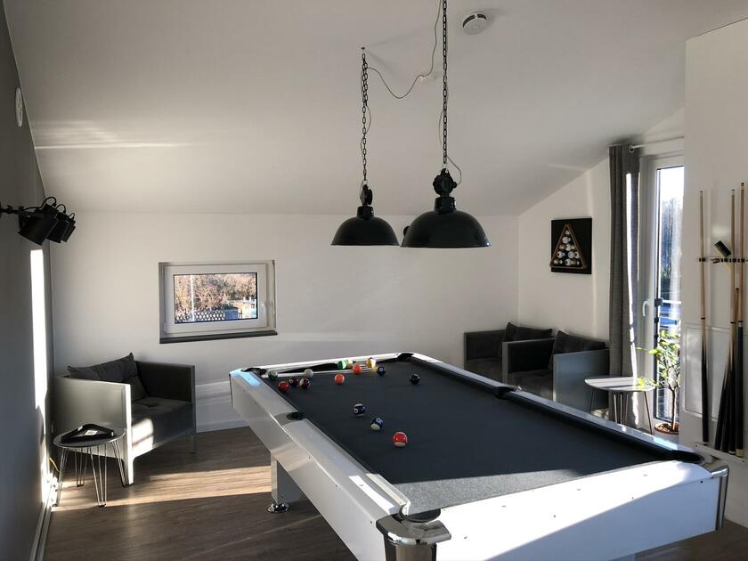 Wir vermieten unser Einfamilienhaus im schönen Berlin-Grünau für Filmproduktionen und Fotoshootings mit moderner Architektur, gehobener grau-weißer Innenausstattung inklusive Mobiliar. Im EG ist in allen Räumen durchgängig Sichtestrich als Bodenbelag gelegt. Der sonnendurchflutete (Südseite) Wohn-Ess- und Kochbereich ist variabel nutzbar. Eine moderne große Einbauküche sowie ein Kamin sind natürlich ebenfalls vorhanden. Der Eingangsbereich hat eine Deckenhöhe von ca. 7 m und wird durch eine mehrflammige Lampe gut in Szene gesetzt. Im Obergeschoss dominiert das große Billardzimmer mit Wandlampen, Billardtisch und Holzfußboden. Vom Schlafzimmer gelangt man über den begehbaren Kleiderschrank ins fugenlose Master-Bad.
