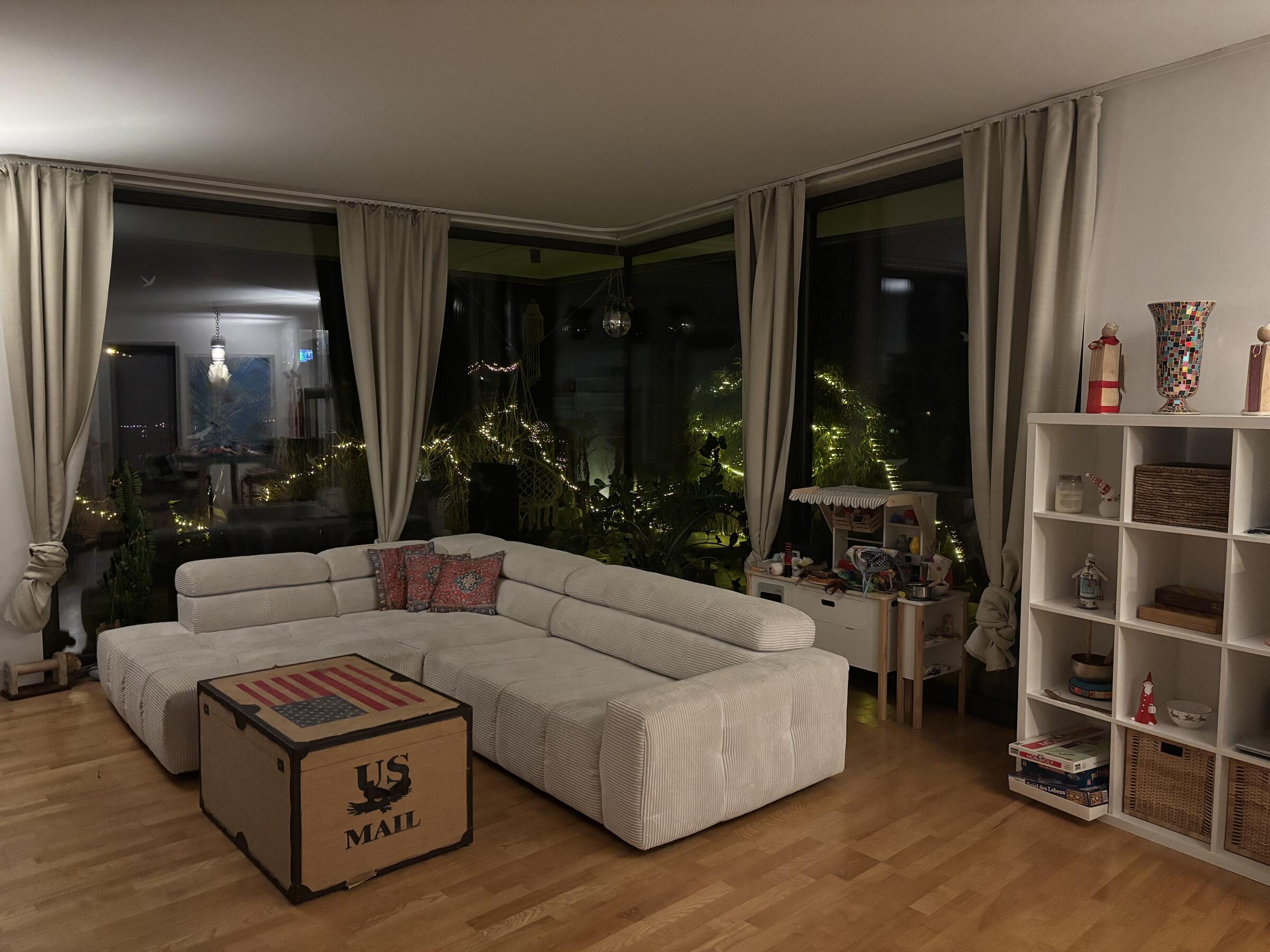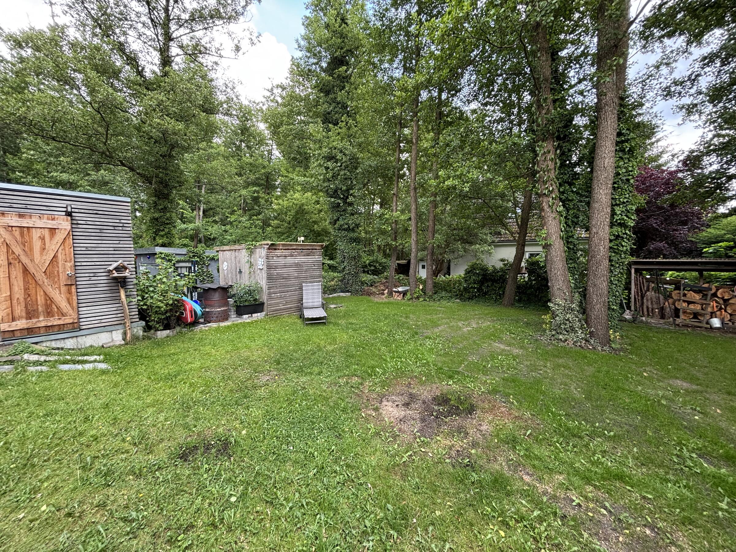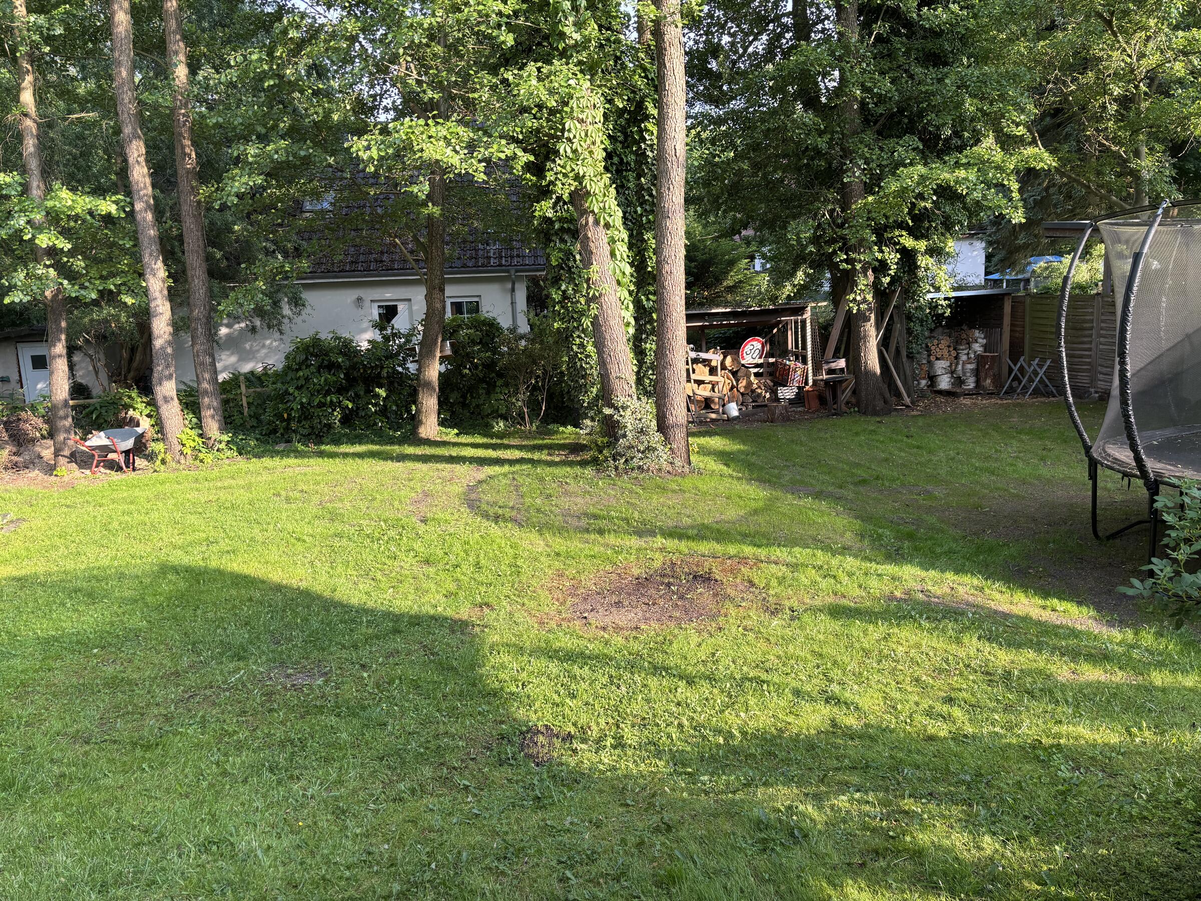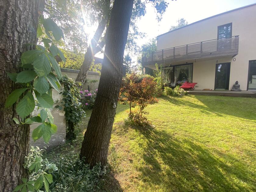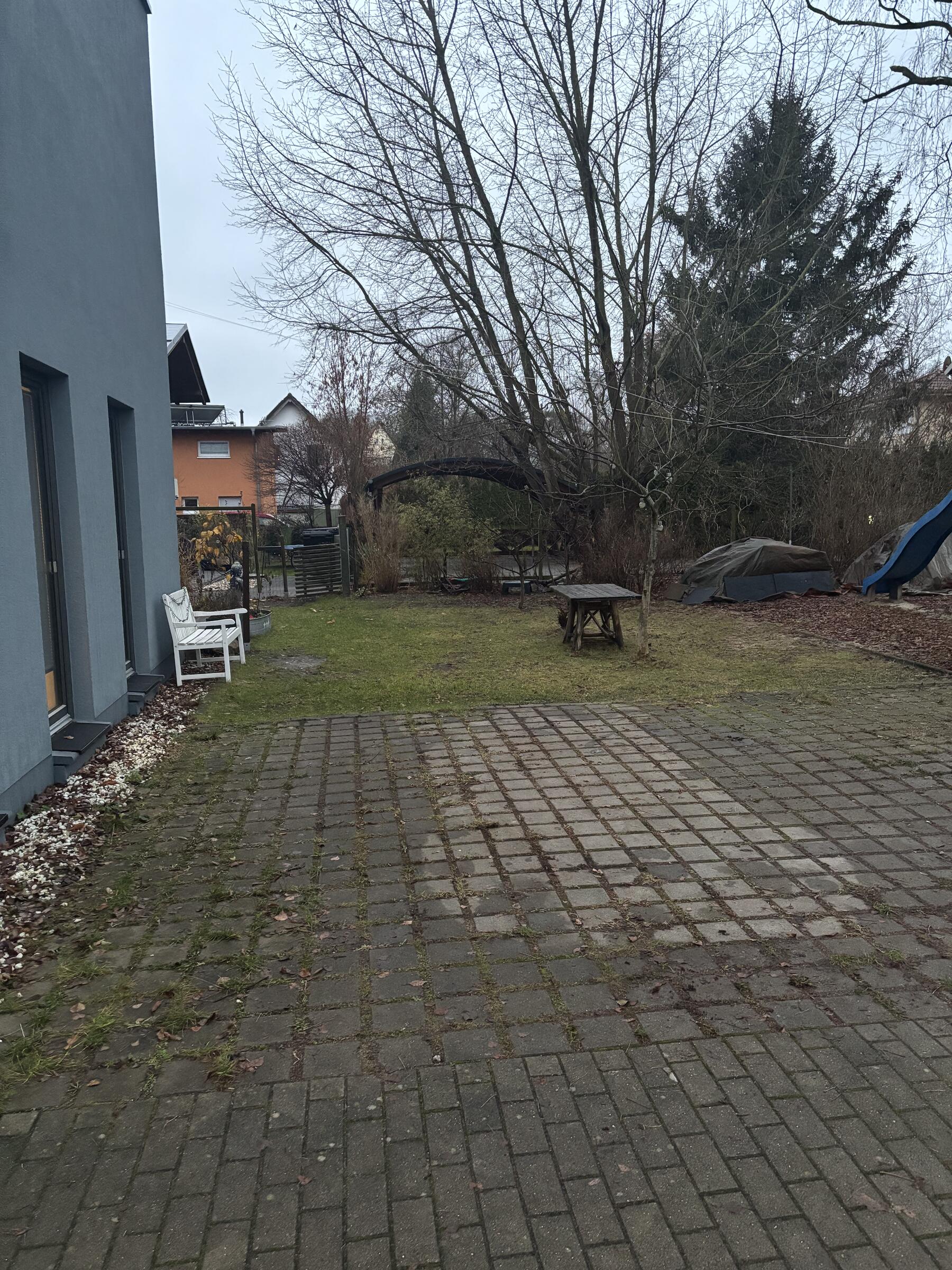 Unser Architektenhaus ist aufgrund seiner konischen Bauweise einzigartig. Die bodentiefen Fenster im Wohnbereich sowie allen anderen Zimmern lassen viel Sonnenlicht herein. Der moderne Küchenbereich ist mit einer großen Kücheninsel ausgestattet. Alle Fenster können mit Vorhängen oder Jalousien abgedunkelt werden. Von allen Räume kann man die umlaufende Terrasse unseres Hauses betreten. Auch im Obergeschoss haben alle Räume bodentiefe Fenster, die mit Jalousien abgedunkelt werden können. Der umlaufende Balkon kann hier ebenfalls von allen Räumen betreten werden. Der Garten ist gepflegt aber wild angelegt, wirkt parkähnlich. Unser Haus befindet sich an einer verkehrsberuhigten Spielstraße. Die lange Auffahrt zum Haus bietet Parkplätze für ca. 5 Pkw. Vor unserem Haus gibt es einen weiteren Parkplatz mit Wallbox und einen schmalen Streifen Garten mit kleinen Obstbäumen drauf. Dieser führt um das Haus herum zum großen Garten. Man kann um das ganze Haus herum laufen. Der Carport ist mit dem großen dahinter liegenden wilden Garten verbunden. Wir haben eine Katze.