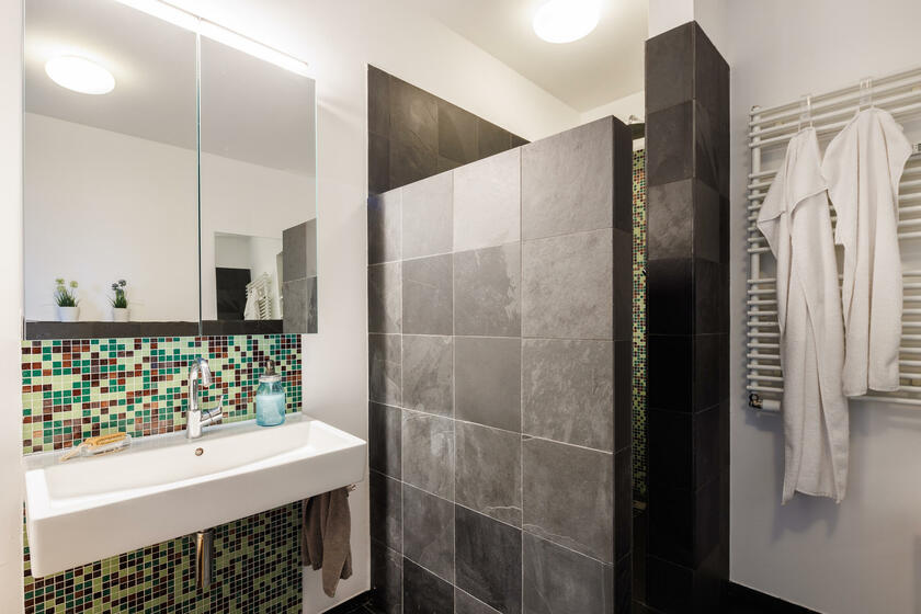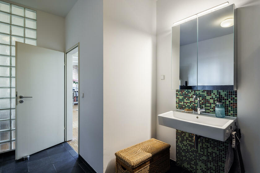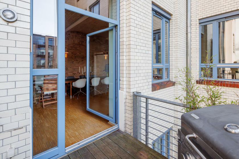Das großzügige und lichtdurchflutete Loft befindet sich in einem stillen Innenhof in Berlin-Friedrichshain. Ausgewählte Akzentwände der Räume und das Deckengewölbe bestehen aus sichtbaren Ziegeln. In allen Räumen, mit Ausnahme des Badezimmers, wurde Eichenparkett verlegt. Im Badezimmer wurden Naturschieferfliesen verlegt. Die Wohnraumfenster des Lofts sind nach Norden ausgerichtet, die Fenster des Koch- und Essbereiches, die Fenster des Schlafzimmers und der Balkon nach Westen. Das Loft ist bequem mit einem großen, gläsernen Aufzug erreichbar. Es steht ein Pkw-Parkplatz zur Verfügung.