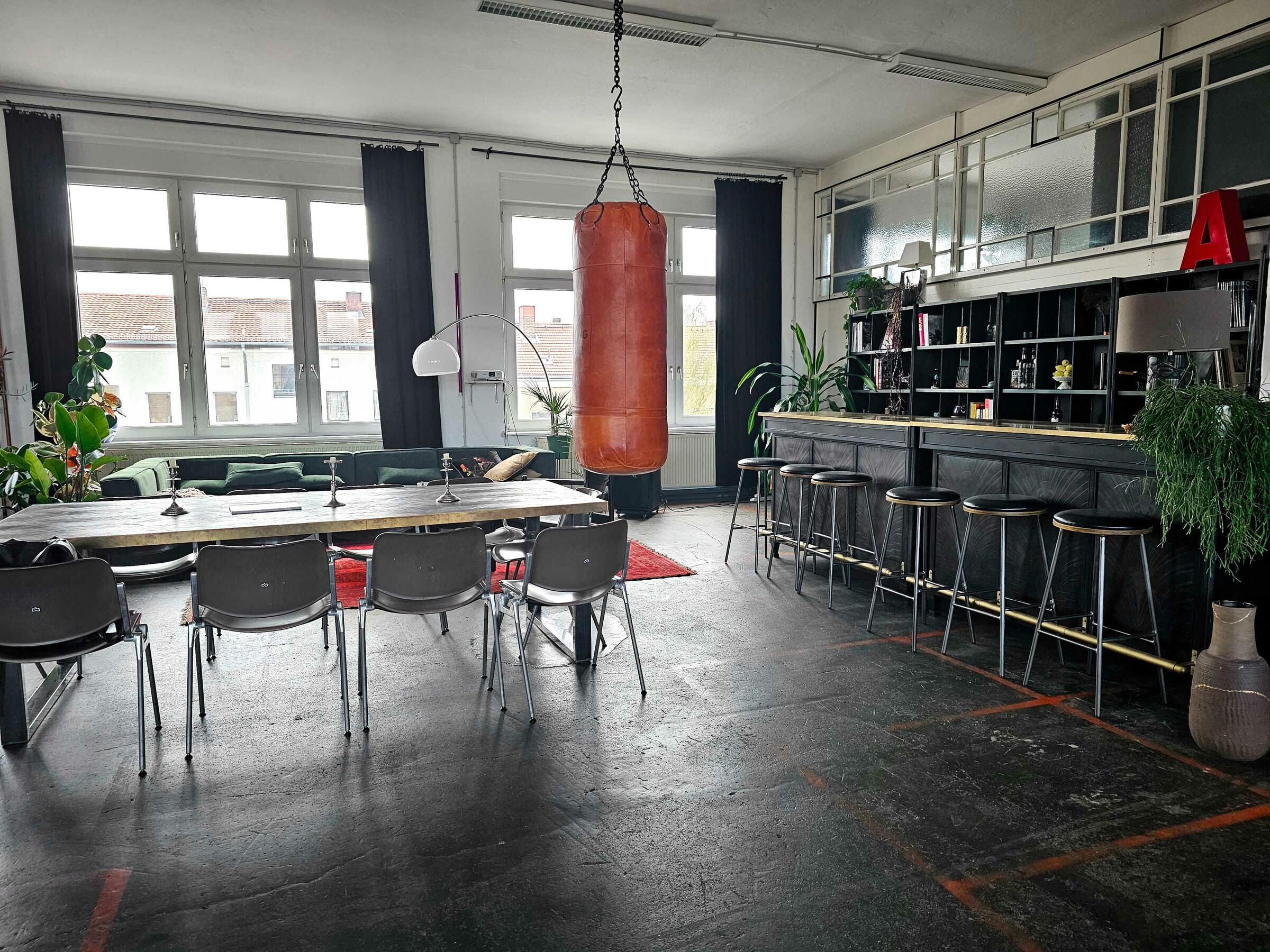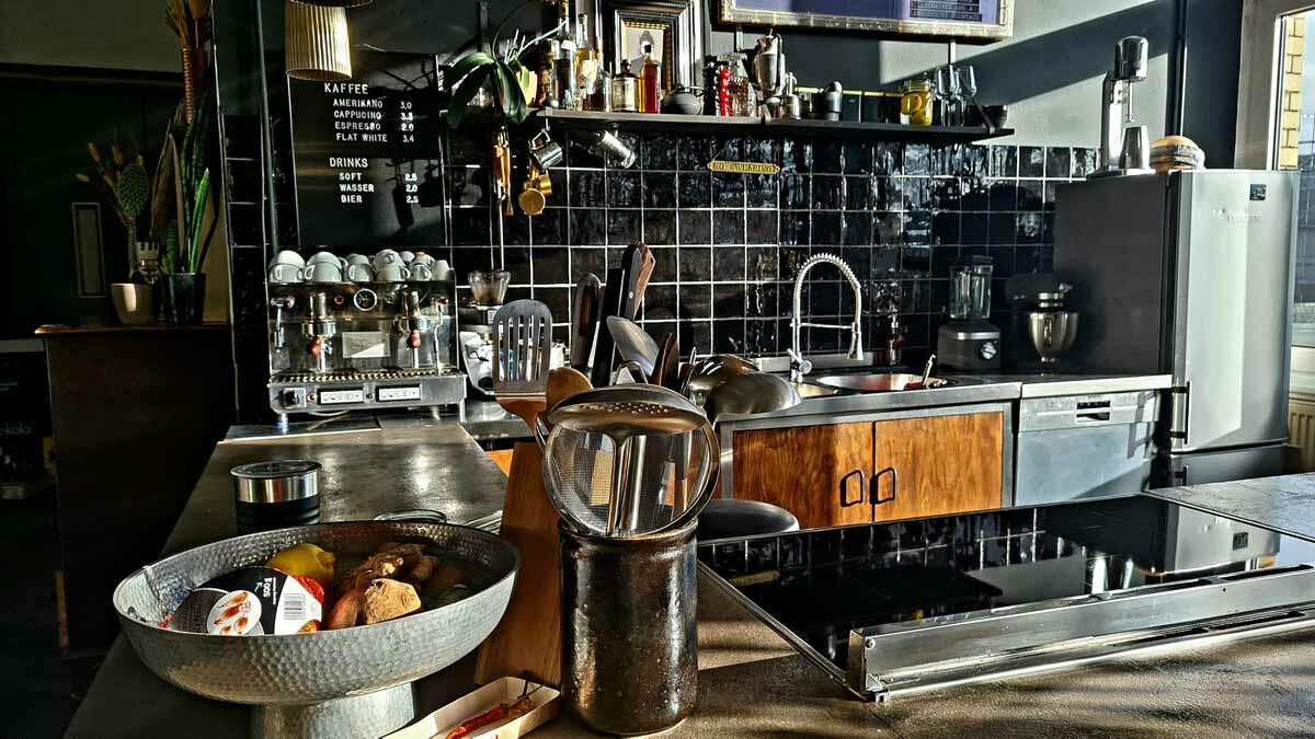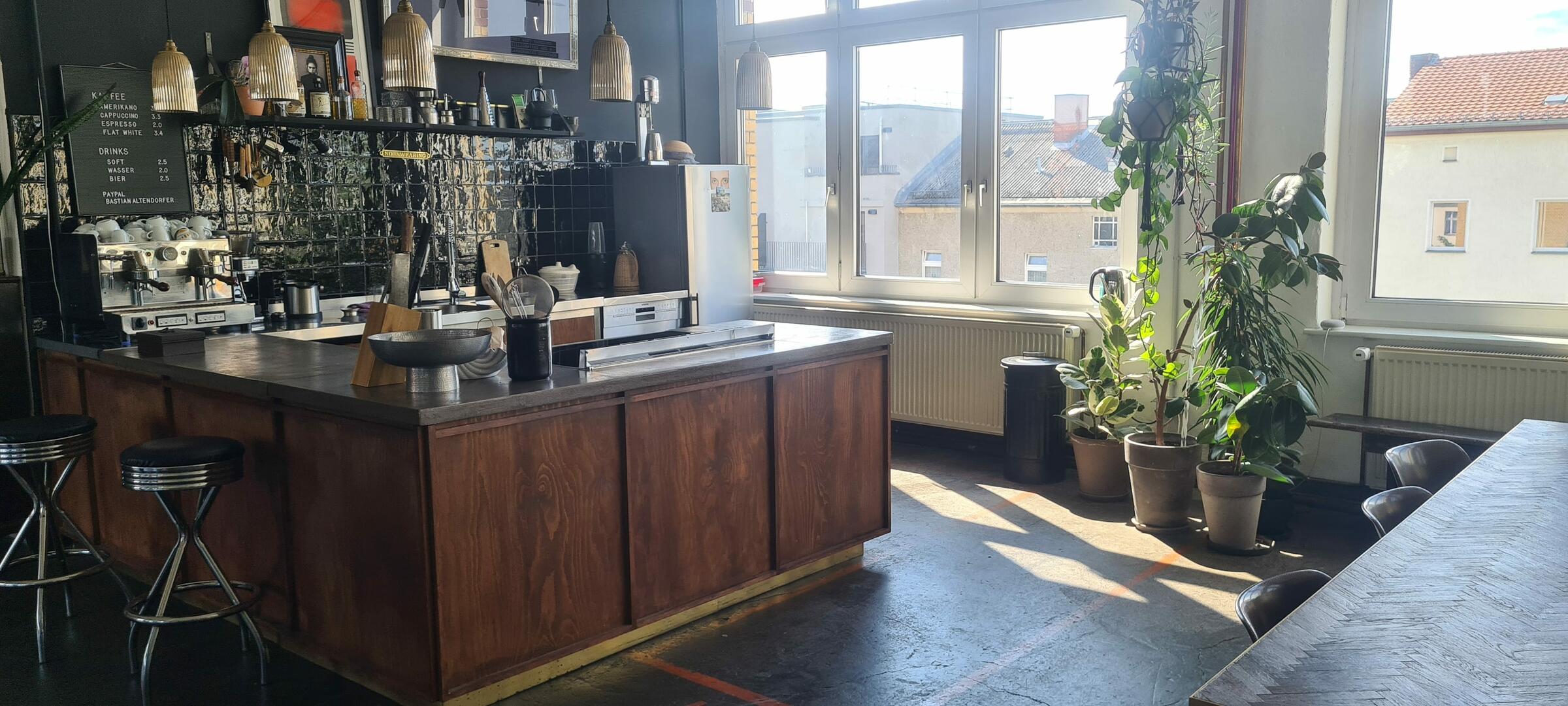 Unser Studio befindet sich in der 3. Etage in einem charmanten alten Fabrikgebäude im Herzen von Neukölln. Das Studio ist bequem über einen großen Lastenaufzug erreichbar. Das Studio verfügt über großflächige Fenster in Nord-Süd-Ausrichtung, die für natürliches Licht sorgen oder bei Bedarf mit Molton-Vorhängen abgedunkelt werden können. Unsere vollausgestattete Küche dient als ideales Set für Food-Produktionen. Unsere Küche ist nicht nur ein visueller Genuss, sondern auch funktional und komplett ausgestattet mit einem großen Smeg-Herd inklusive Induktionskochfeld und einem 90 cm Ofen. Von einem Käsehobel bis zu diversen KitchenAid-Gadgets.