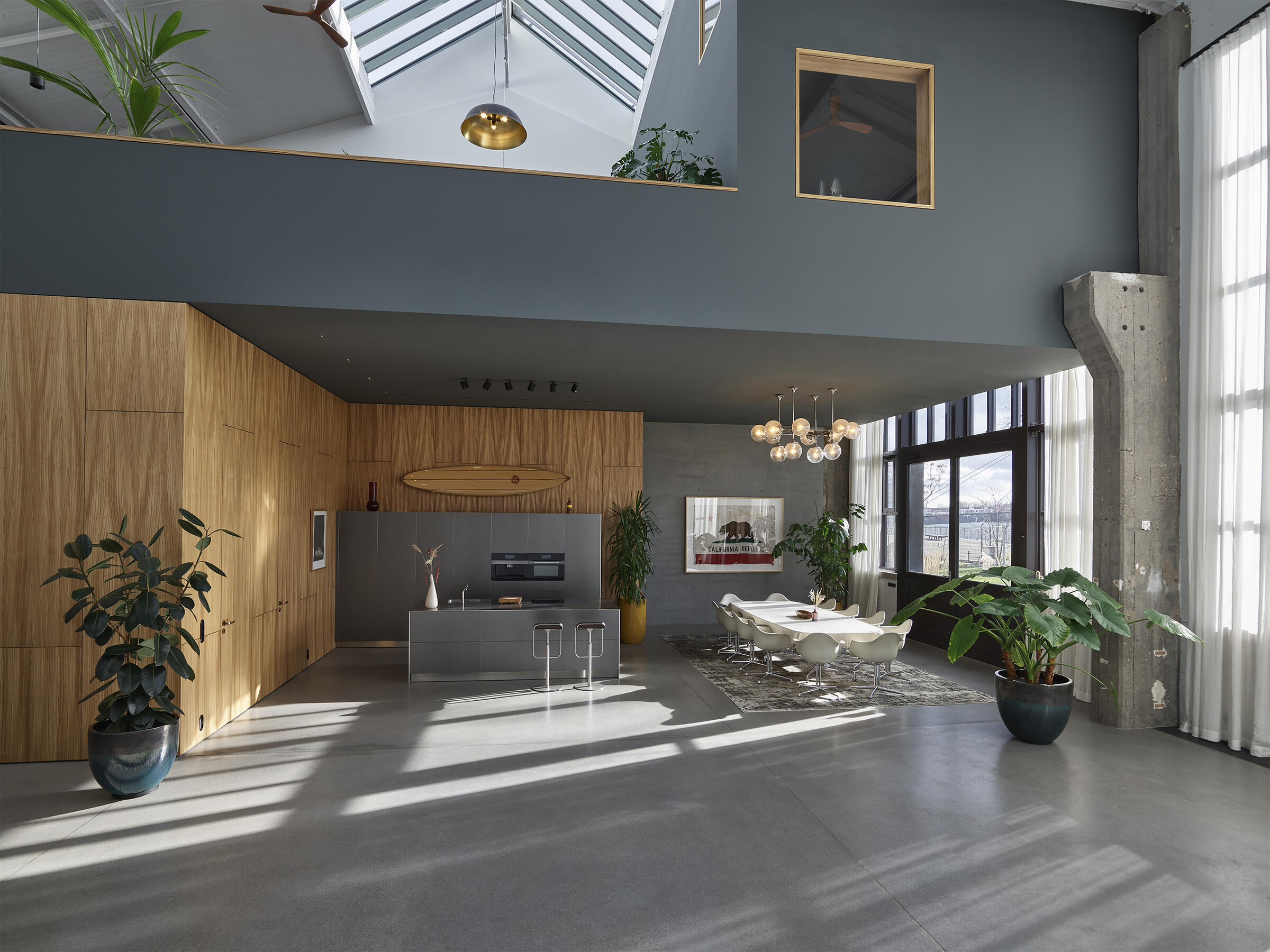 Zeitloser Minimalismus, lichtdurchflutete Räume, warme Farbnuancen und weiche Oberflächen sorgen für viel Sinnlichkeit und verleihen unserem neuen Daylight Studio an der Spree seinen einzigartigen Charakter. Wie in unseren bisherigen Studios, haben wir auch hier viel Wert auf ein hochwertiges und stilvolles Ambiente, exklusive Materialien und urbanes Design gelegt. Auf 320 m² und unter 12 m hohen Skylights bieten wir eine der außergewöhnlichsten und individuellsten Locations in Berlin. Dabei spielt die Umgebung eine nicht unwesentliche und inspirierende Rolle. In den Reinbeckhallen, auf dem Areal des früheren AEG-Transformatorenwerks, entstand in den letzten Jahren ein unvergleichlicher Ort für Freidenker. Und da Kunst und Kultur in Berlin oft maßgebliche Triebkräfte sind, entstand schnell eine Art Zentrum zeitgenössischer Kunst mit Ausstellungshallen, Studios, Werkstätten, Cafes und unverbautem Blick auf die Spree. Wer also möchte, der kann gerne auch mit dem Surfbrett oder Boot ins Studio kommen. Unser Anlegeplatz steht euch zur Verfügung.