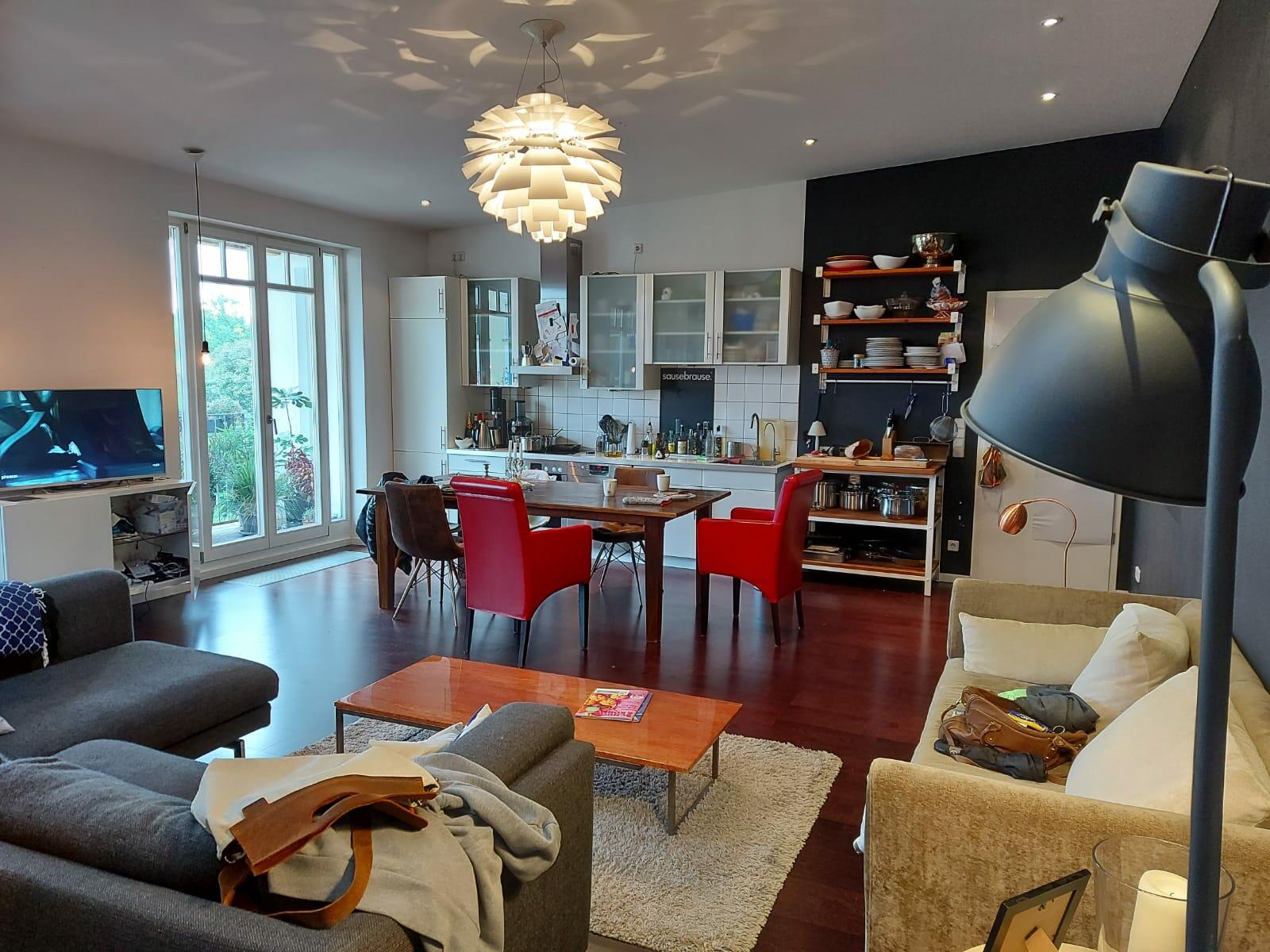Unsere Wohnung liegt im Prenzlauer Berg, unweit des Volkspark Friedrichshain. Der Blick geht Richtung Alexanderplatz und Rotes Rathaus. Die Wohnung ist großzügig geschnitten, sodass genügend Platz für Equipment, Dreh und Maske vorhanden ist. Die Wohnung hat eine fest eingebaute Küche, alles andere kann genutzt oder eben ausgeräumt werden. Das Bad verfügt über eine Sauna. Die Wohnung verfügt über eine 55 m² große Dachterrasse, die vom Wohnzimmer oder separat vom Hausflur betreten werden kann. Da leider keine Parkplätze vorhanden sind, müssten bei Bedarf Absperrungen beantragt werden.
