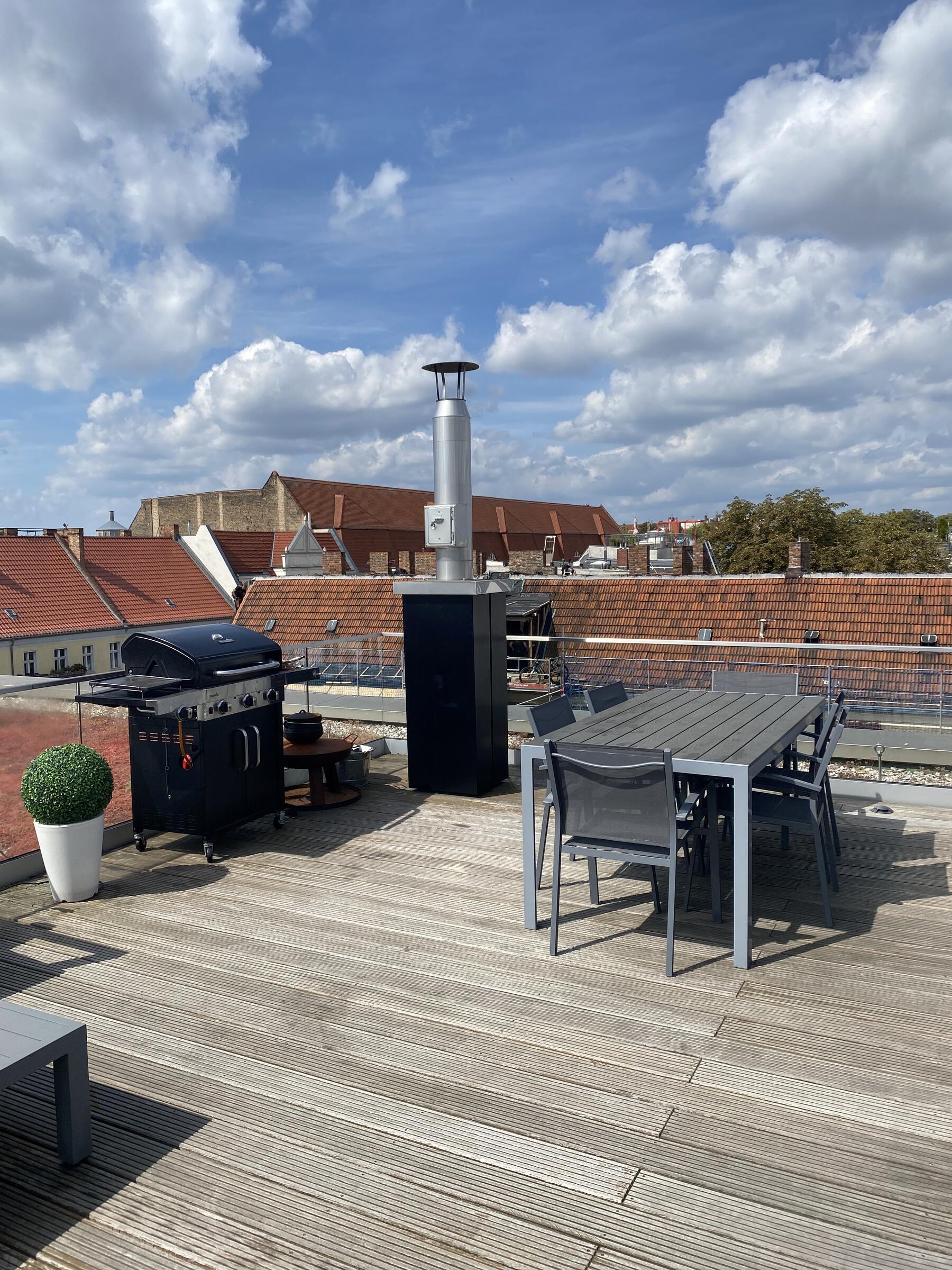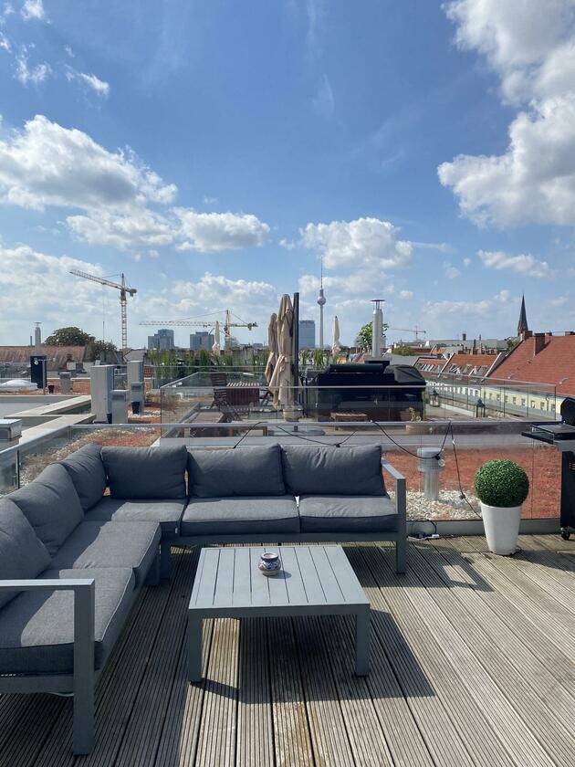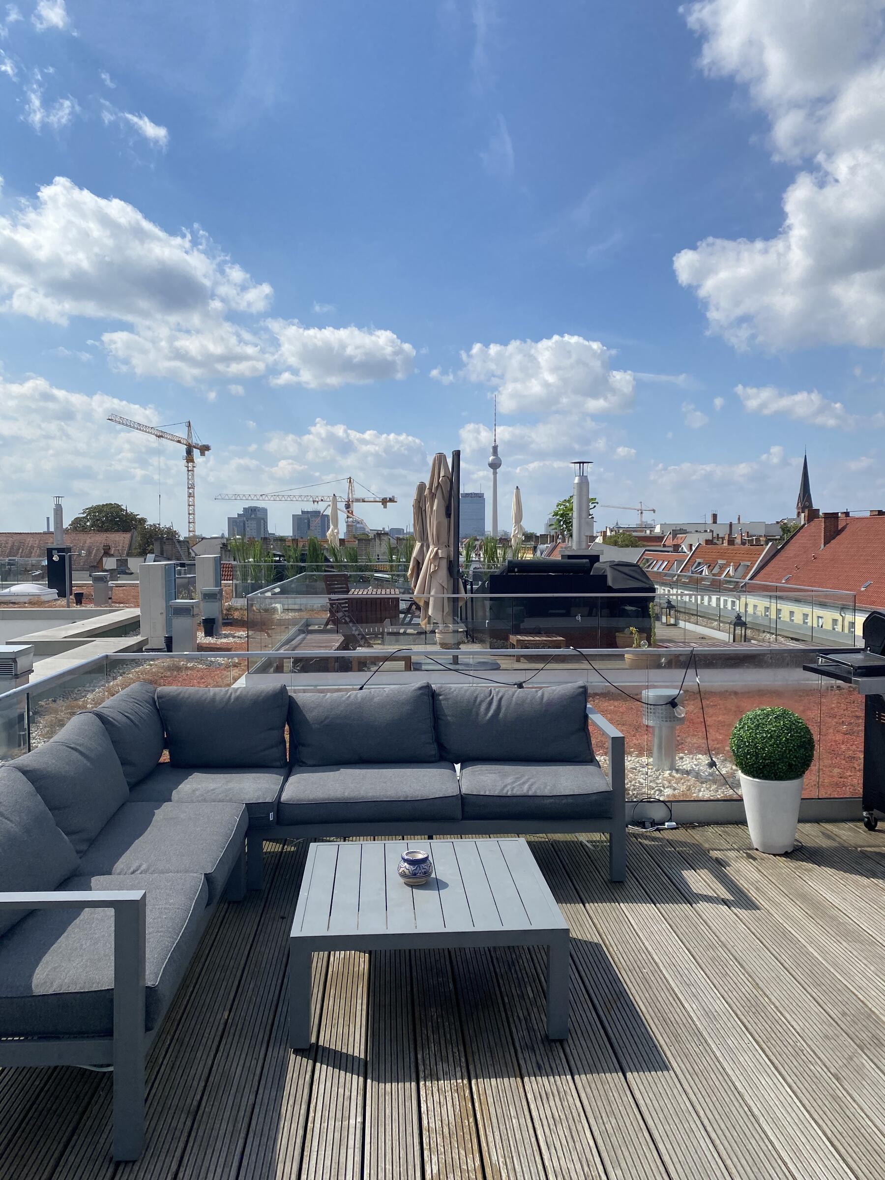 Dies ist eine wunderschöne helle Penthouse-Wohnung mit Floor to Ceiling Glasfenstern, zwei Balkonen, elektrischen Jalousien und einer großen Dachterasse. Mit einem Personenaufzug ausgestattet, ist dies die perfekte, moderne Wohnung für diverse Film und Werbeproduktionen. Die Wohnung hat eine moderne Designerküche eingebaut mit einem festverankerten Esstisch. Die Wohnung ist teilmöbliert, wodurch sich zusätzliche Möglichkiten für Setbauten ergeben. Es gibt zwei Schlafzimmer, ein Badezimmer (unterteilbar in zwei Räume), ein Gäste-WC, eine Küche und einen Wohnbereich. Die Fensterfronten sind in Richtung Osten und Westen ausgerichtet. Bitte melden Sie sich jederzeit bei Fragen und Interesse.