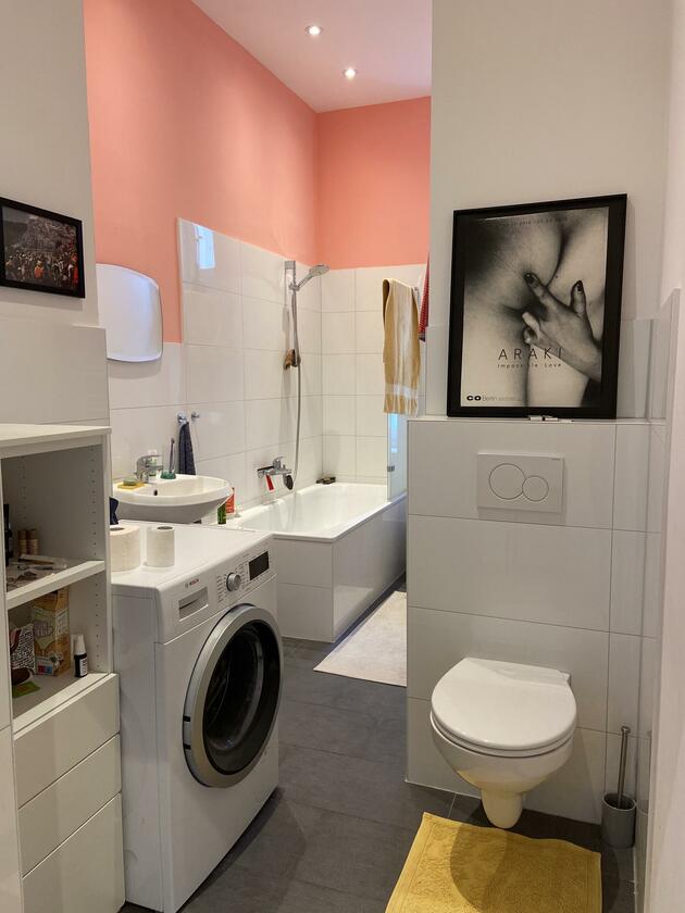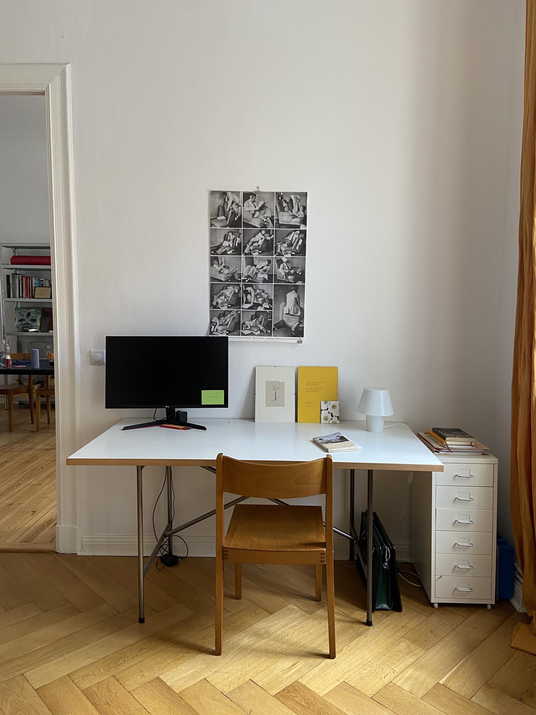 Meine helle Berliner Altbauwohnung befindet sich in einem Wohnhaus. Die Dielen, der Stuck und die ein oder andere Macke machen den Charme der Wohnung aus. Das Wohn- und Gästezimmer sowie der kleine Balkon gehen zur Straße raus. Das Berliner Zimmer wurde zum Schlafzimmer, Bad und Küche gehen zum Hof raus. Die Wohnung wurde renoviert, hat hohe Decken und einige Designermöbel. Einige Möbel können verschoben oder neu angeordnet werden. Insgesamt ist die Wohnung perfekt für kleinere Produktionen. Wir sind im ersten Stock und die Treppe ist ziemlich breit. Ich freue mich, Sie begrüßen zu dürfen.