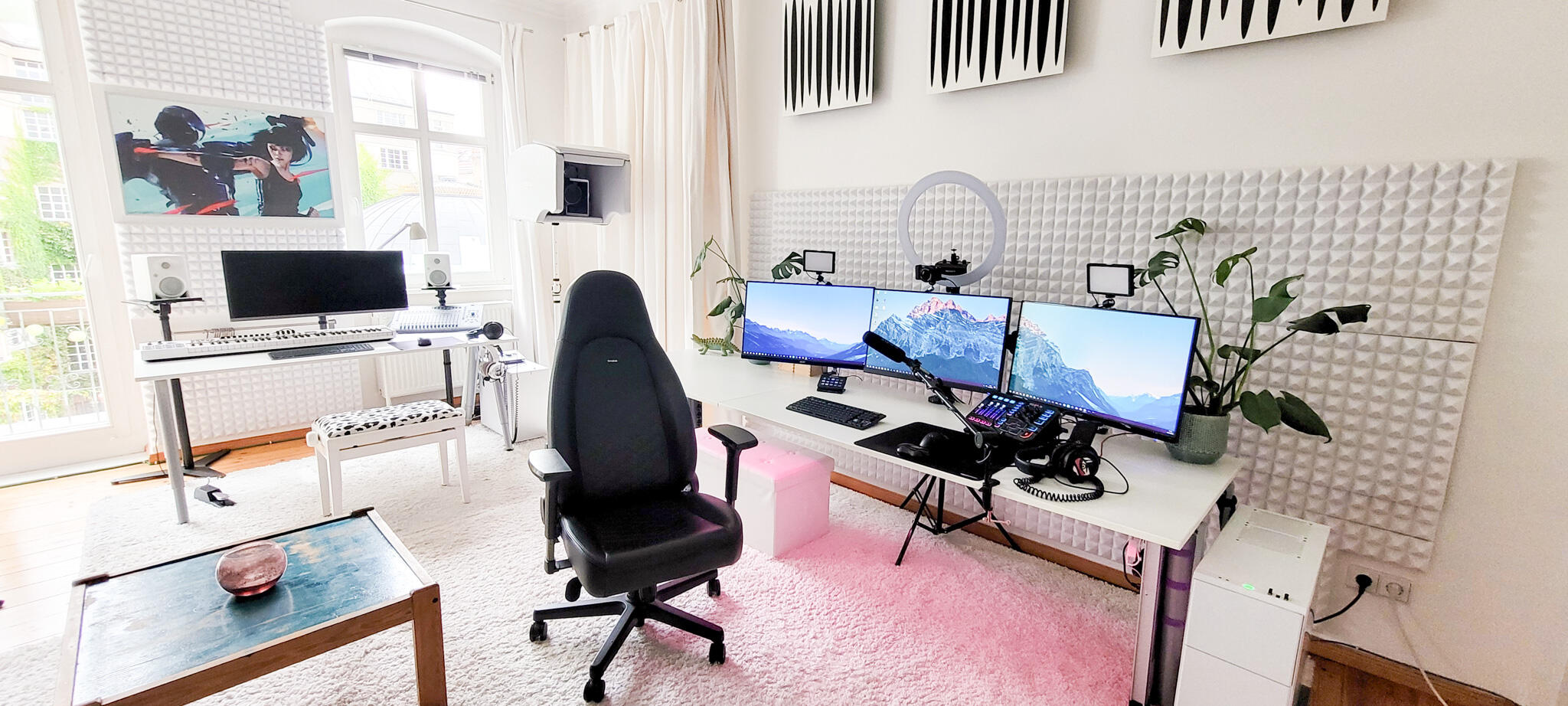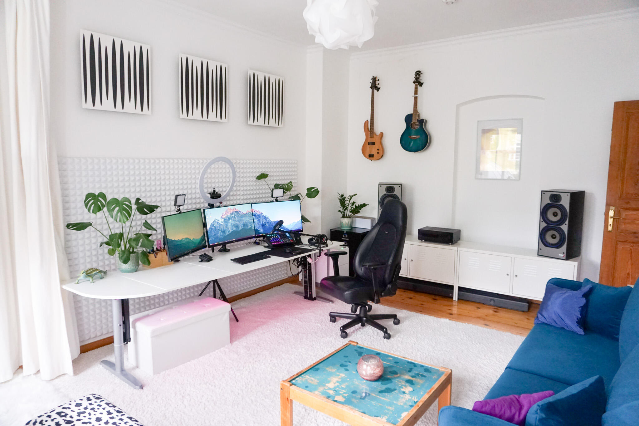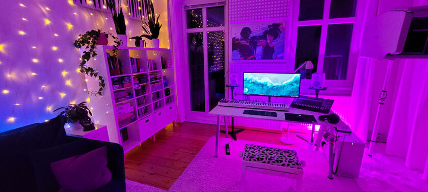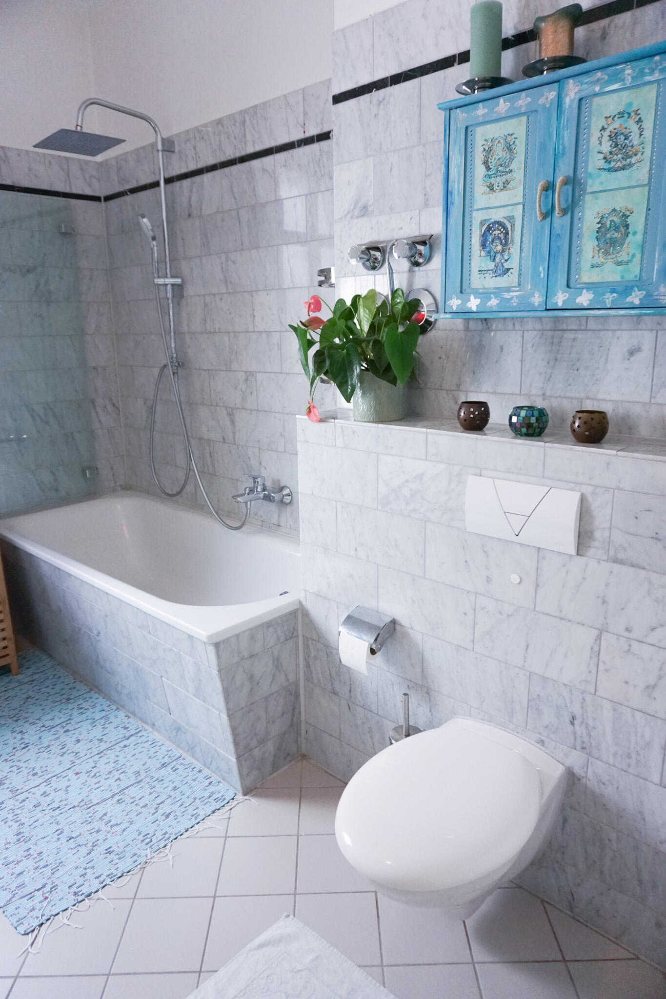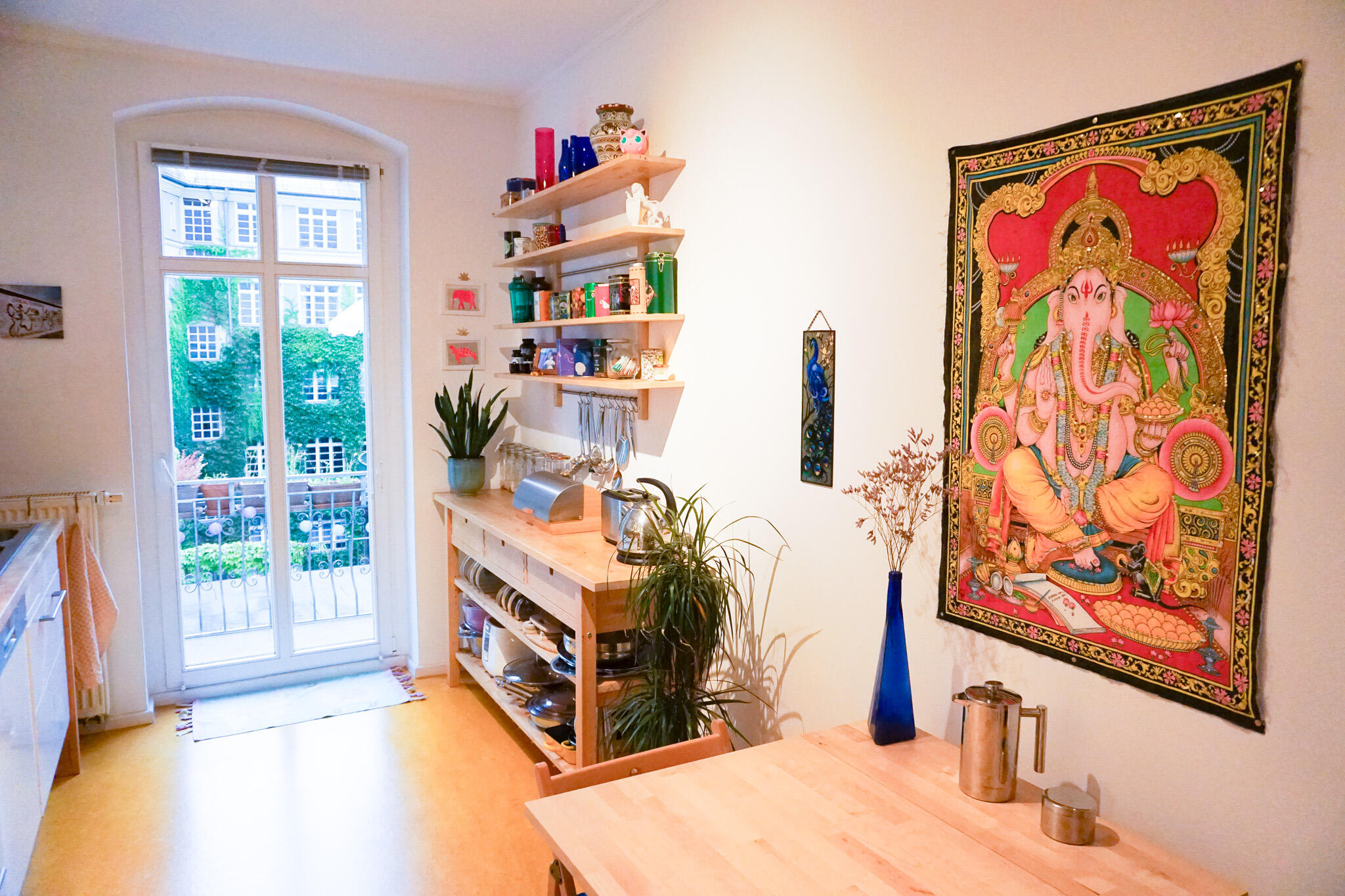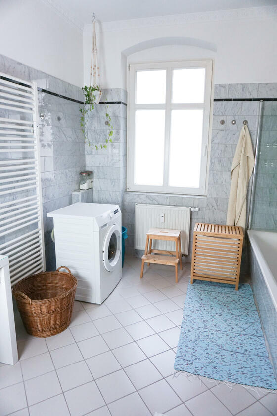 Meine charmante und moderne Altbauwohnung befindet sich im 3. Obergeschoss eines Wohnhauses im Prenzlauer Berg. Im hellen Wohnzimmer wurde Dielenboden und weißer Hochflorteppich verlegt. Da das Wohnzimmer auch als Homestudio für Musikproduktionen und YouTube Content genutzt wird, befinden sich an den Wänden teilweise Akustik-Absorber. Die Wände in meinem außergewöhnlichen Schlafzimmer sind blau gestrichen und die Möbel teilweise handbemalt. Im Schlafzimmer ist ebenfalls Dielenboden verlegt. Die Einbauküche ist in hochglänzendem Weiß und Holz gehalten. In der Küche ist orangefarbenes Linoleum verlegt. Das Badezimmer ist gefliest und bietet auch einen beleuchteten Schminkspiegel. Während Ihrer Produktion in meiner Wohnung ist es zwingend erforderlich Schuhüberzieher, die Sie von mir erhalten, zu verwenden. Außerhalb der Wochenenden kann es im Hof etwas lauter werden.