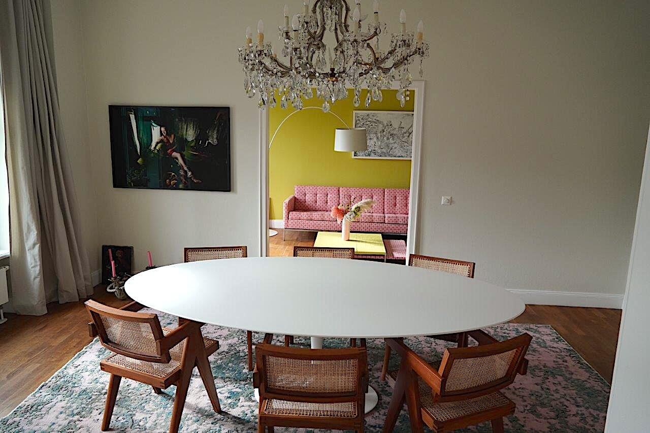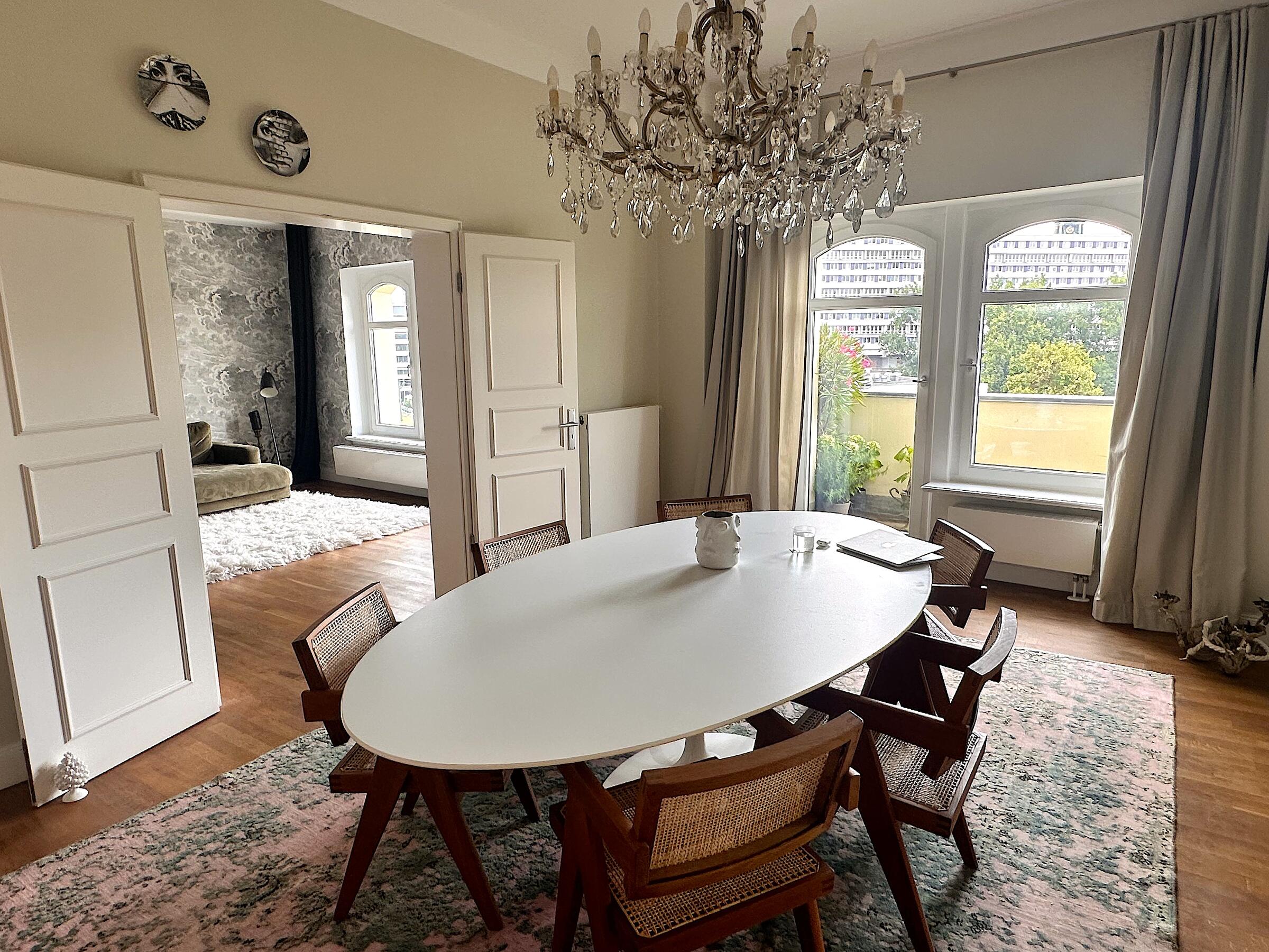 Mitten in Mitte! Die lichtdurchflutete und minimalistische Wohnung befindet sich im 4. Obergeschoss eines klassischen Berliner Altbaus ohne Aufzug. Die Wohnung bietet eine eklektische Einrichtung mit Design-Möbeln von beispielsweise Florence Knoll, Saarinen und Fornasettiund. Die Räume der Wohnung sind nach Süden, Westen und Norden ausgerichtet. Das Haus ist Teil eines Industrie-Ensemble mit einer sehr schönen Hinterhoflandschaft. Von den Zimmern der Wohnung hat man einen ungewöhnlichen und sehr urbanen Blick zur Südseite auf die Großstadt. Parkmöglichkeiten sind auf der Straße vorhanden.