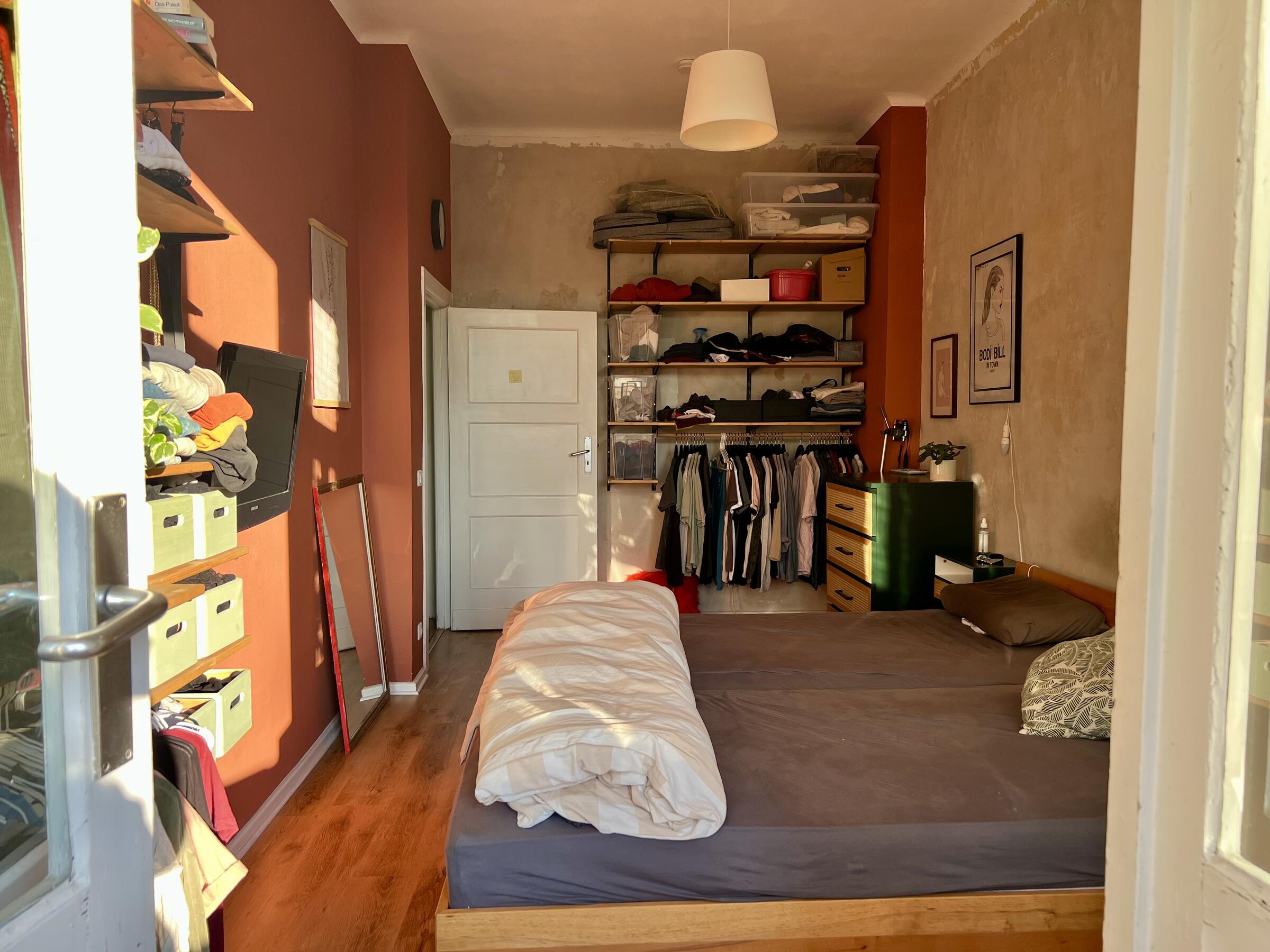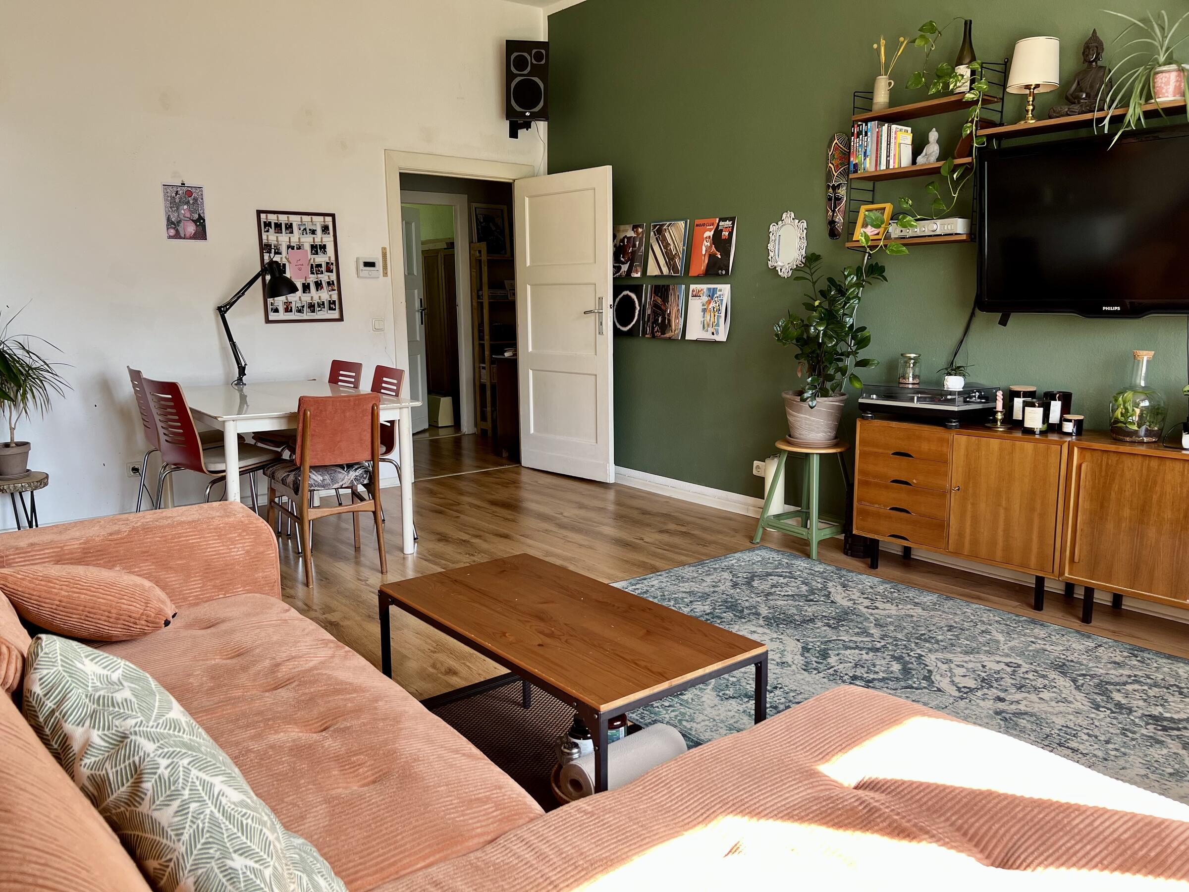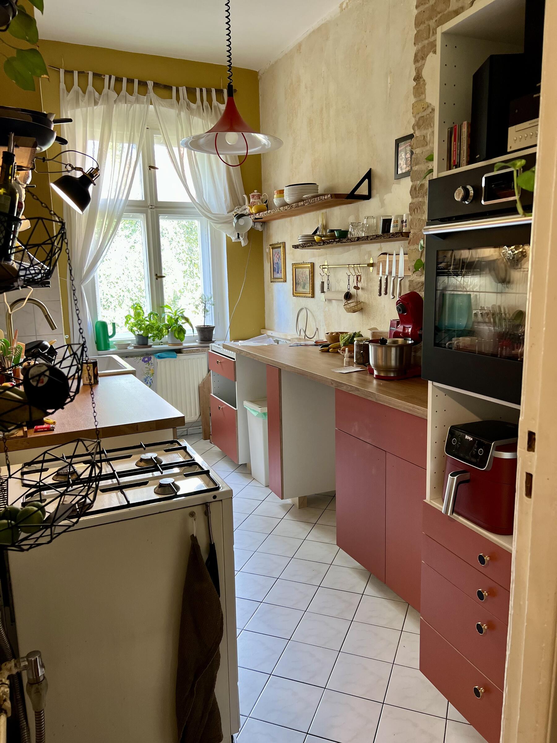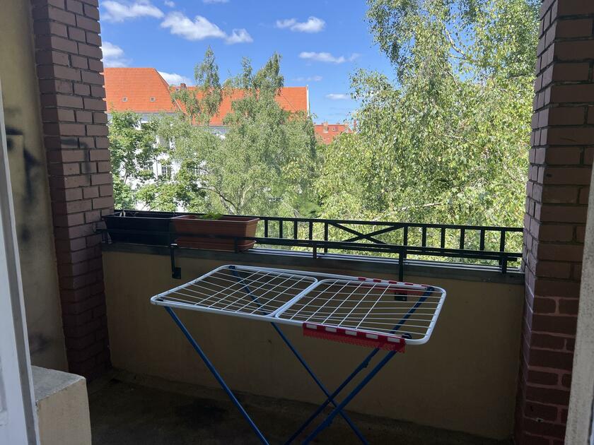 Unsere Wohnung befindet sich in einem Mehrparteienwohnhaus im Prenzlauer Berg. Die Räume sind gemütlich eingerichtet. Am Vormittag fällt viel Sonnenlicht in das Wohnzimmer und das Arbeitszimmer. Am Nachmittag sind vor allem die Küche und das Schlafzimmer lichtdurchflutet. Die Fenster können teilweise mit Rollos und Vorhängen abgedunkelt werden. Auf den Böden der Wohnräume ist Laminat verlegt. Das Badezimmer und die Küche sind gefliest. Ein kleiner Balkon kann ebenfalls genutzt werden. Parkplätze bestehen direkt vor dem Haus an der vorbeiführenden Straße und in näherer Umgebung.