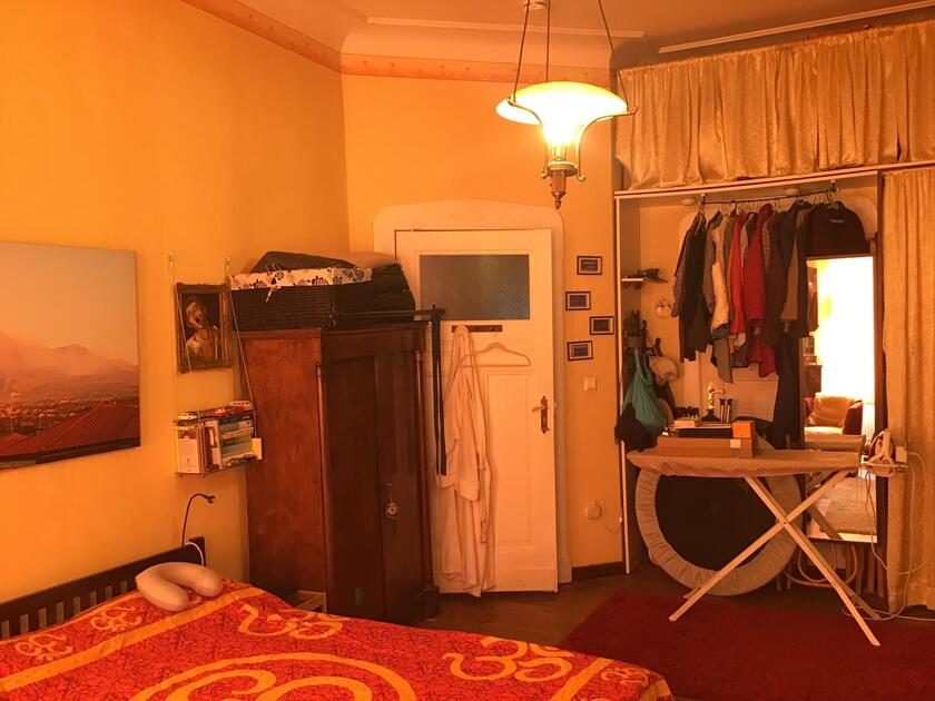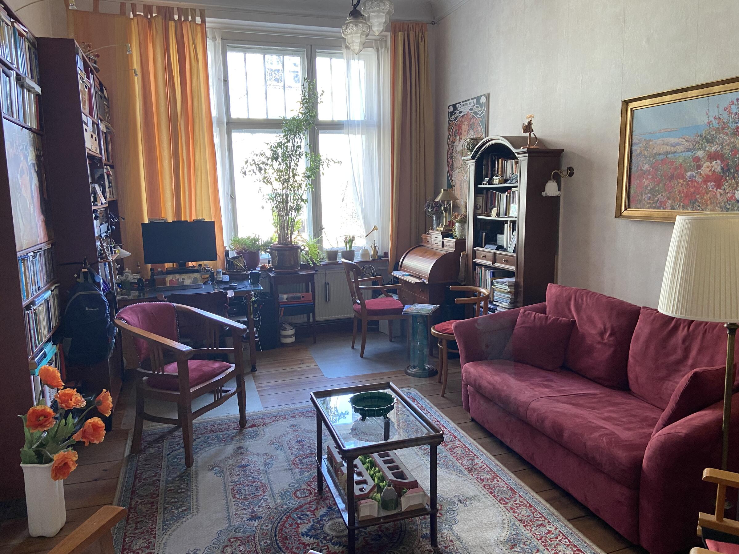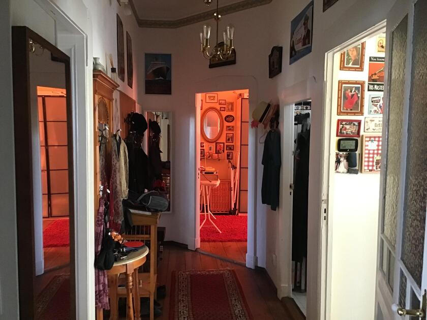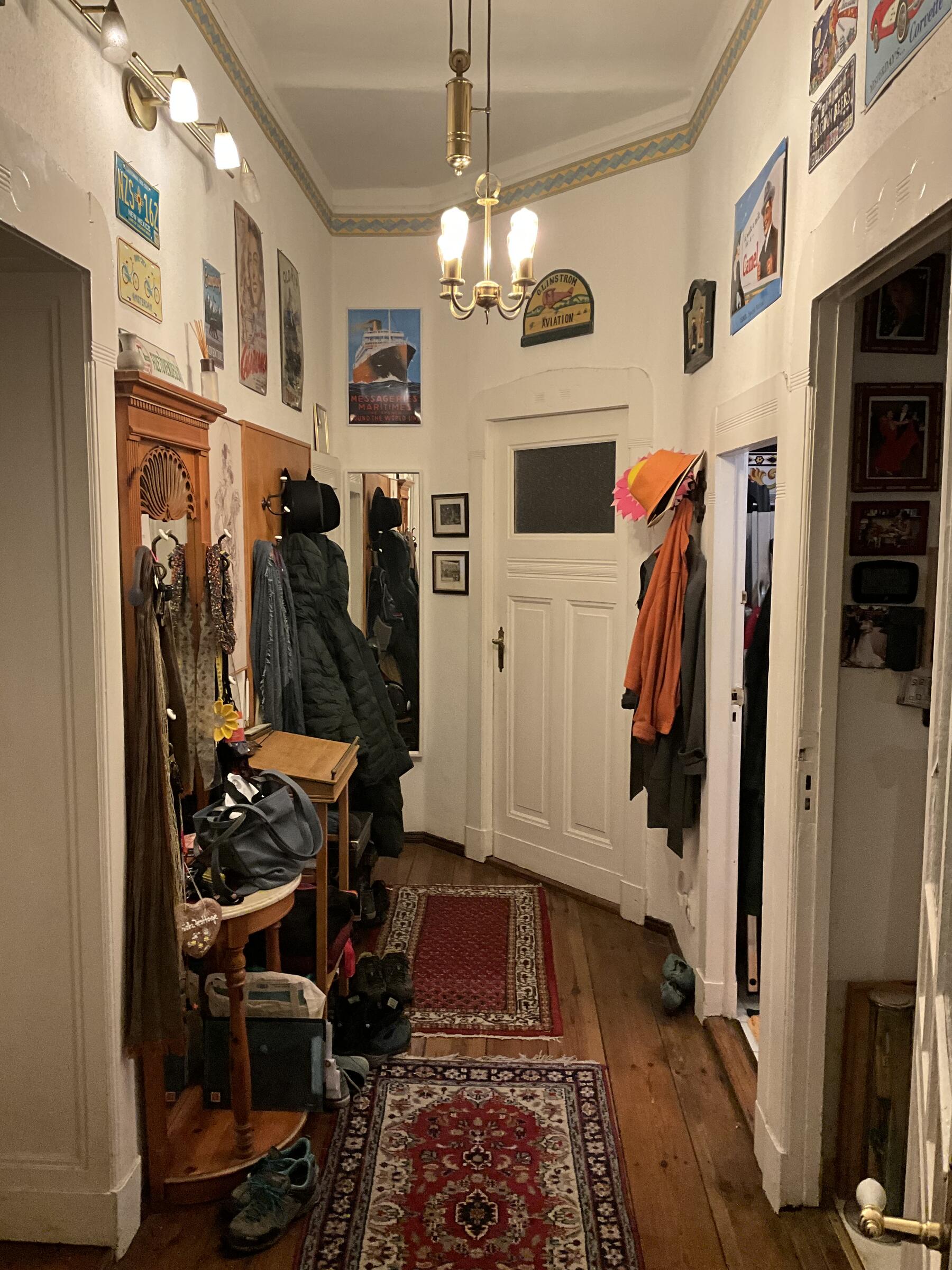 Meine typische Berliner Altbauwohnung befindet sich in an einer ruhigen Nebenstraße im Ortsteil Schöneberg, unweit des Bahnhofes Südkreuz. Die Räume sind individuell im Stil der 1920er und 1930er Jahre eingerichtet und durch mehrflügelige, verglaste Türen miteinander verbunden. Alte Kachelöfen und viele unterschiedliche Instrumente gehören ebenfalls zur Wohnung. Die Fenster können teilweise mit Vorhängen abgedunkelt werden. Auf den Böden der Wohnbereiche sind Dielen verlegt und an den Decken gibt es Stuckverzierungen. Öffentliche Parkplätze bestehen vor dem Wohnhaus an der Straße.