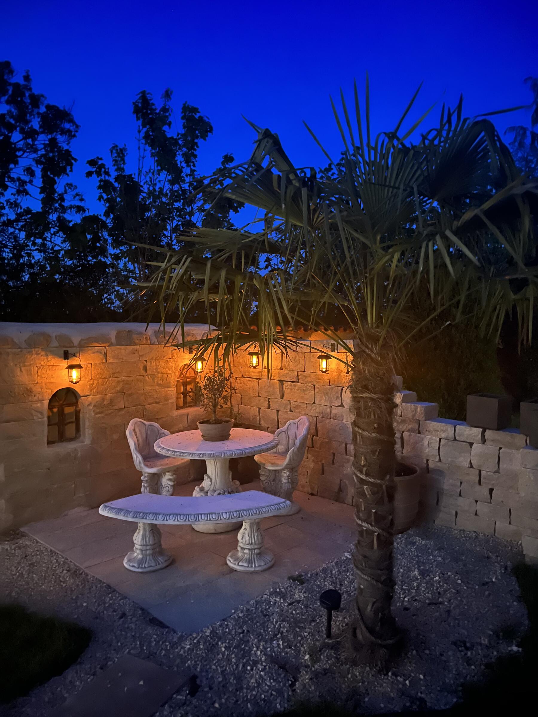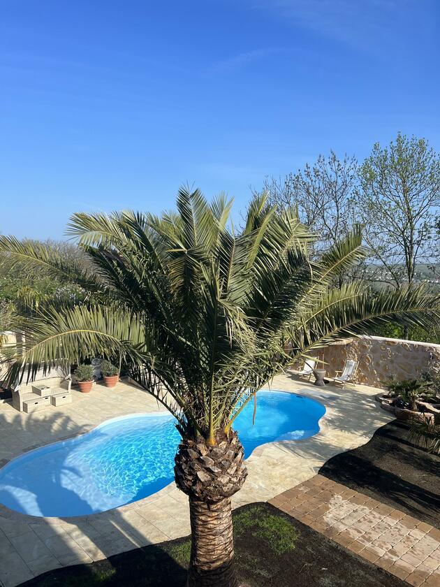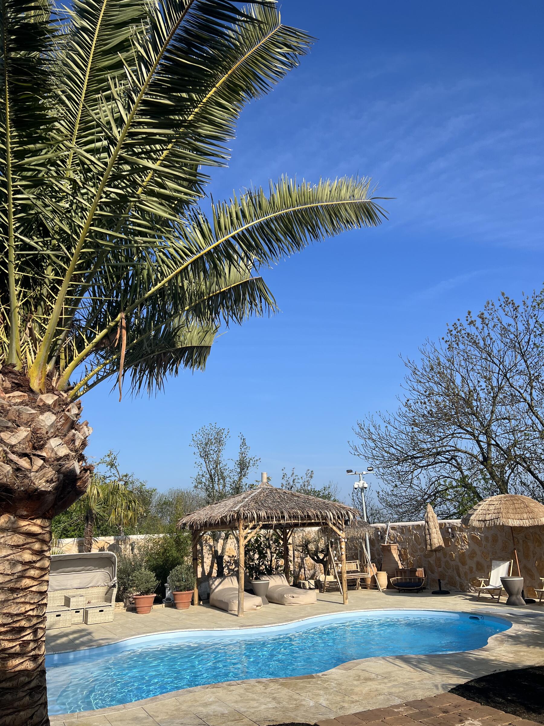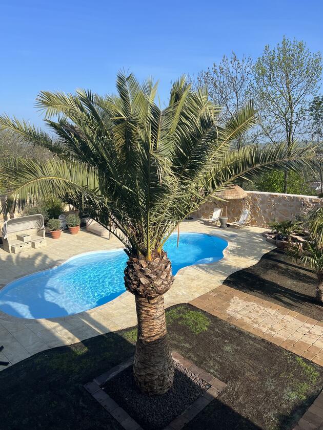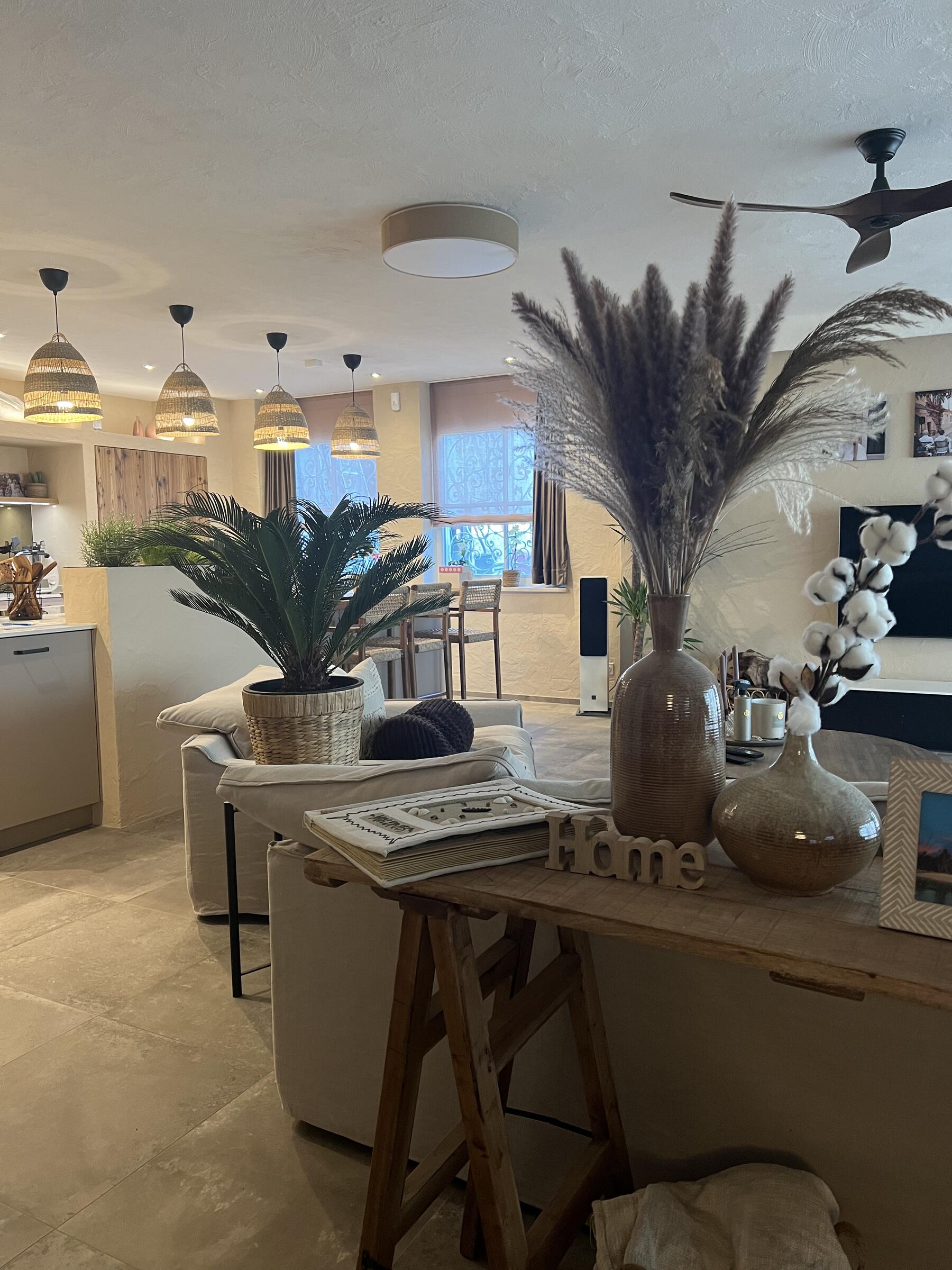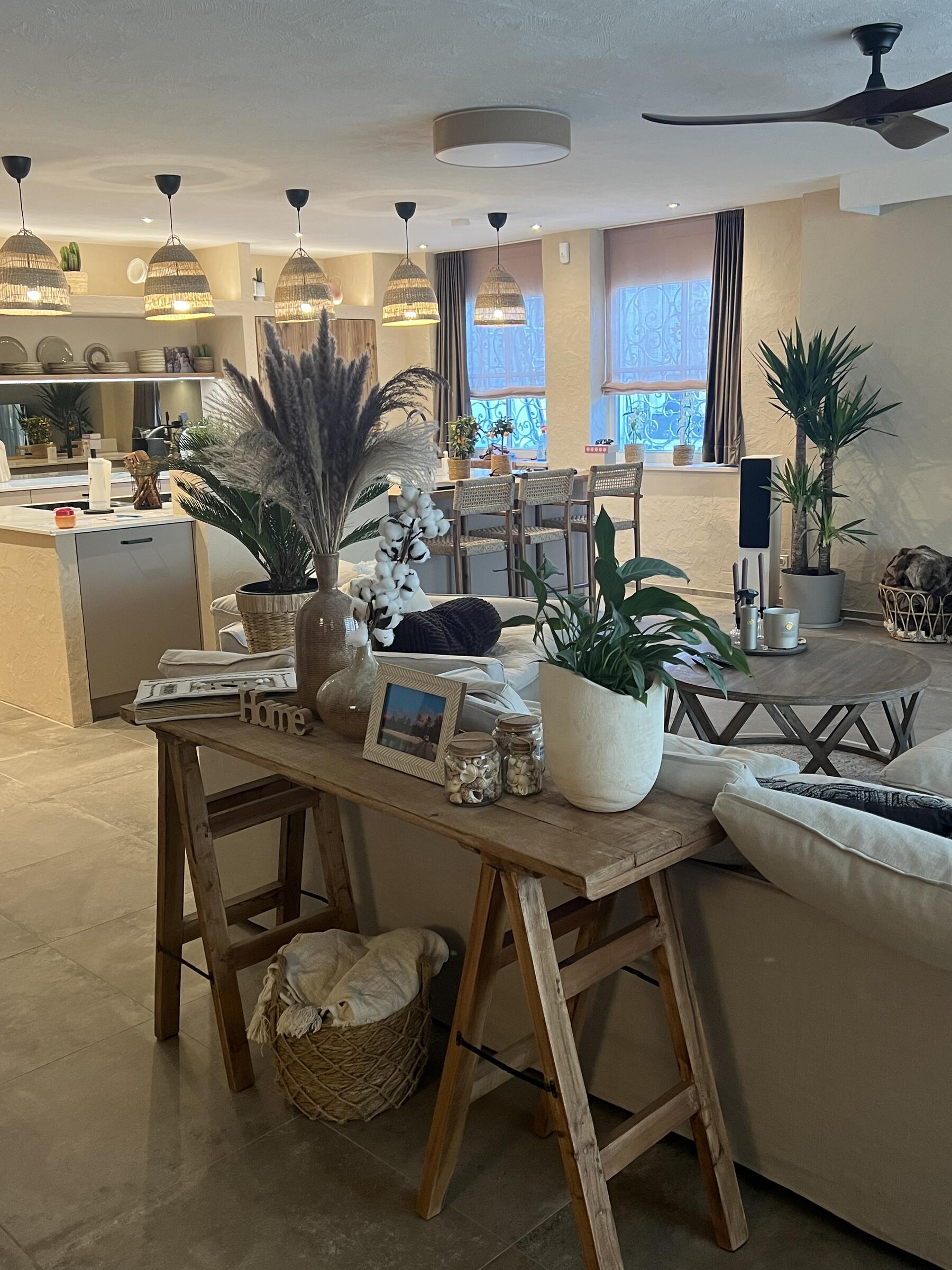 Unser Haus bietet viele große und offene Räume mit mediterranem Einrichtungsstil. Die Räume sind hell und lichtdurchflutet. Die Fenster der Räume sind abdunkelbar. Der großzügige Wohn- und Essbereich mit seiner modernen Küche hat direkten Zugang zum Garten. Der große und mediterran gestaltete Garten bietet einen Pool, Palmen und Olivenbäume. Die Terrasse wird von einer Pergola trocken gehalten. Der Garten ist durch seine Lage nach hinten für niemanden einsehbar und ermöglicht somit ungestörte Produktionen. Parkplätze gibt es im Außenbereich und auf der Straße vor unserem Grundstück.