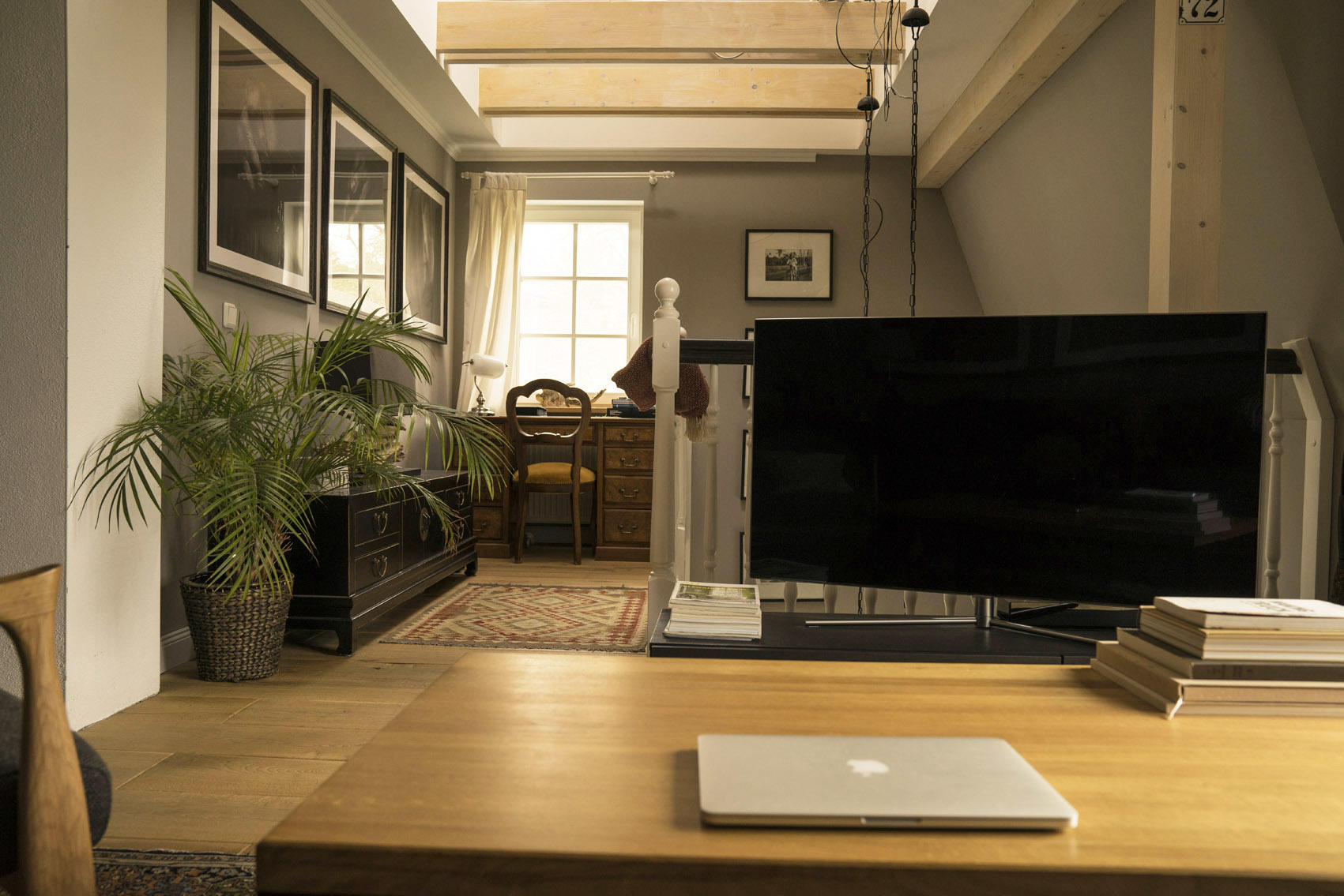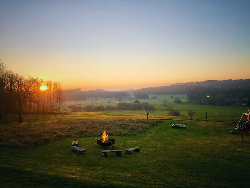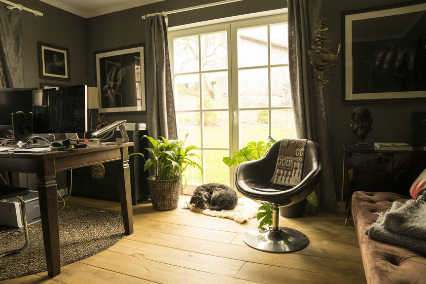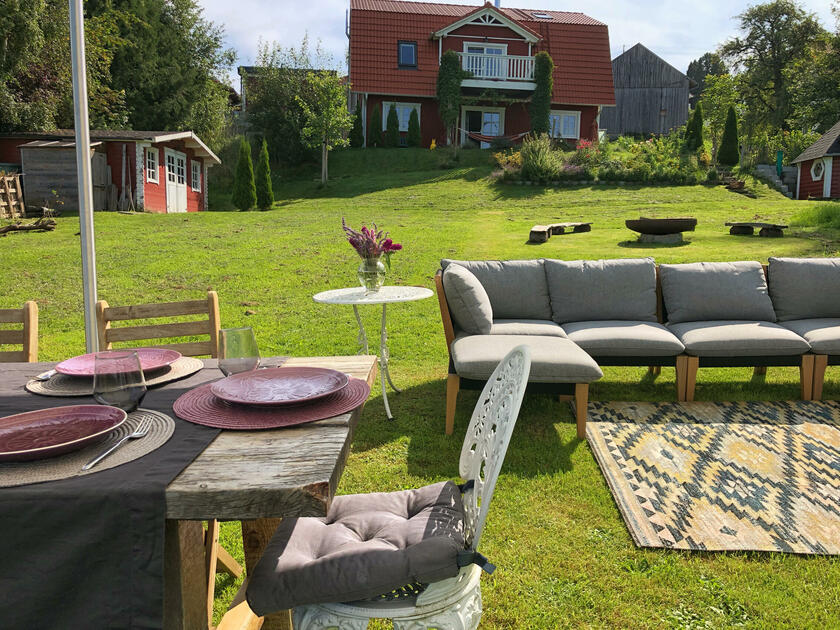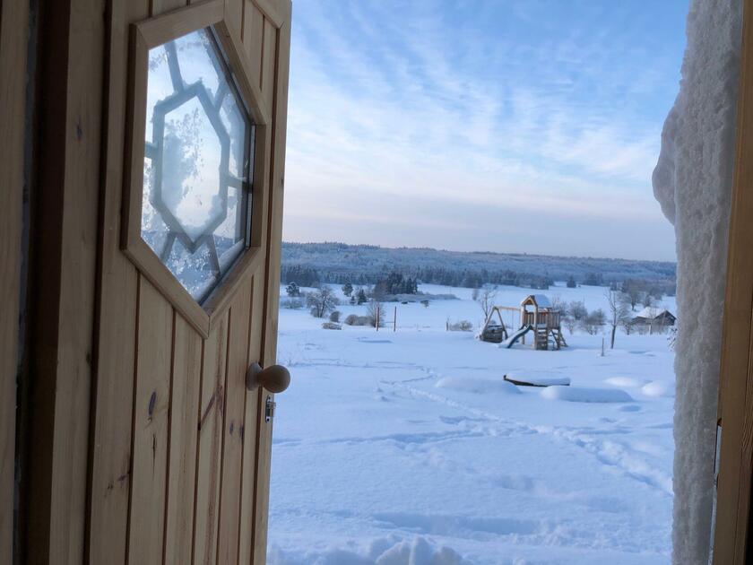 Das Landhaus befindet sich am Ortsrand, allerdings wird die Sicht zum anliegenden Nachbarhaus durch Bäume und Büsche verhindert. Dadurch wird ein Gefühl der Freiheit hervorgerufen und man könnte denken, dass man sich mitten in der schwedischen Natur befindet. Im Winter verwandelt sich das Grundstück zu einem mystischen Ort, der sowohl märchenhaft als auch düster erscheinen kann. Aufgrund der 800 Meter Höhe ist es auch relativ schneesicher. Je nach Jahreszeit und Stimmung bietet die Location alle Lichtsituationen, die man sich nur vorstellen kann.