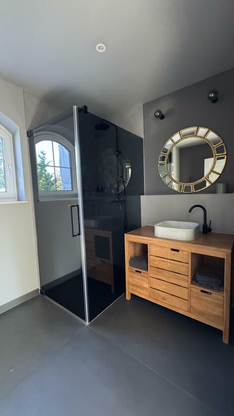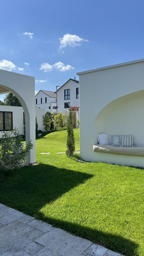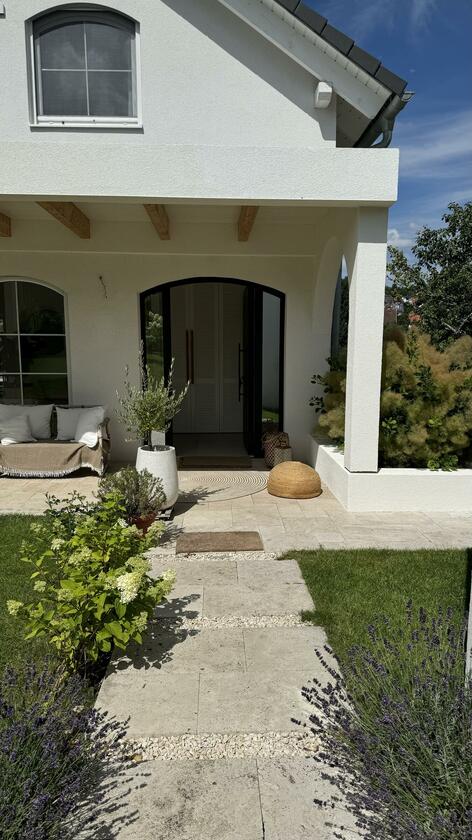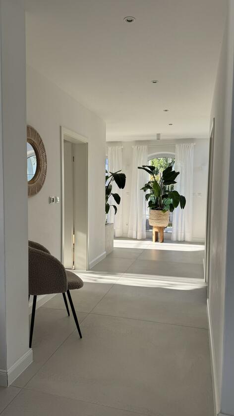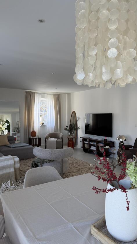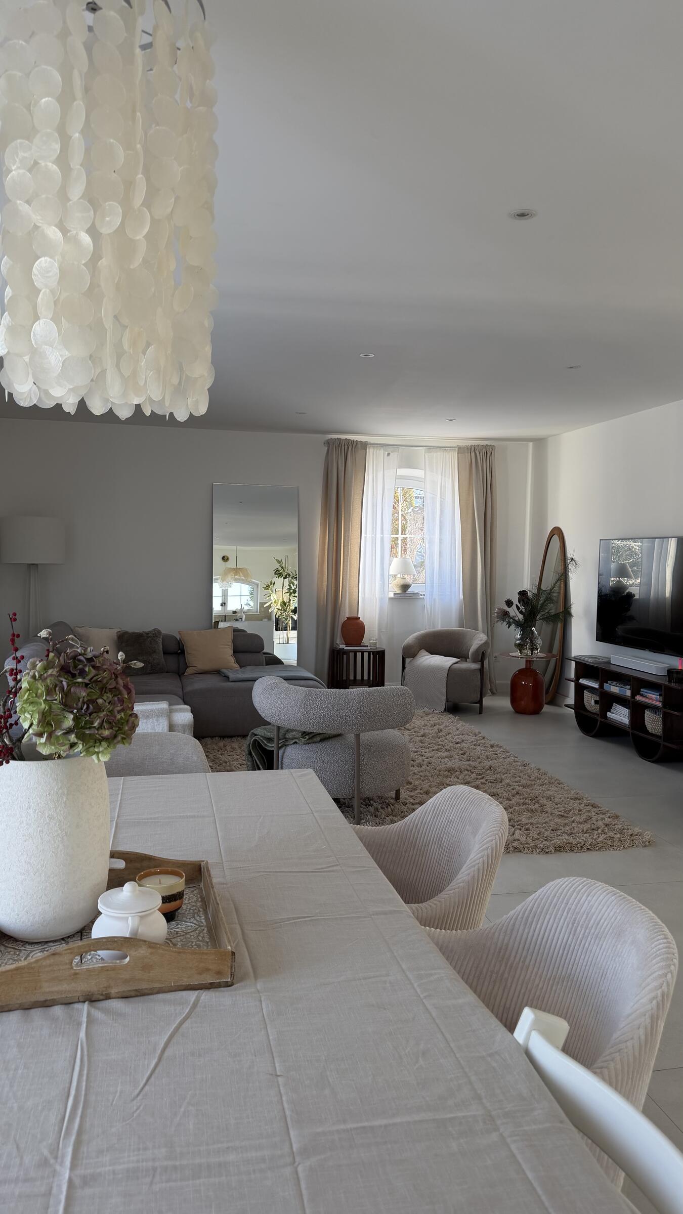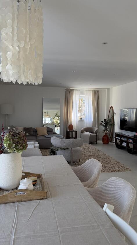 Unser exklusives Zuhause befindet sich in einer ruhigen und ländlichen Wohngegend. Das Haus bietet mediterranes Flair, modernes Interior und vielseitige Möglichkeiten für kreative Produktionen. Die Räume sind modern, hell und offen gestaltet. Der großzügige Wohn- und Essbereich bietet direkten Zugang zur offenen Designküche. Auf den Böden der Räume sind hochwertiges Laminat und Fliesen verlegt. Durch die teilweise bodentiefen Fenster fällt viel Tageslicht in die Wohnräume. Die Fenster können mit Jalousien und Rollos abgedunkelt werden. Die Räume dürfen nach Absprache umgestaltet werden. Parkplätze befinden sich direkt am Haus und in unmittelbarer Nähe.