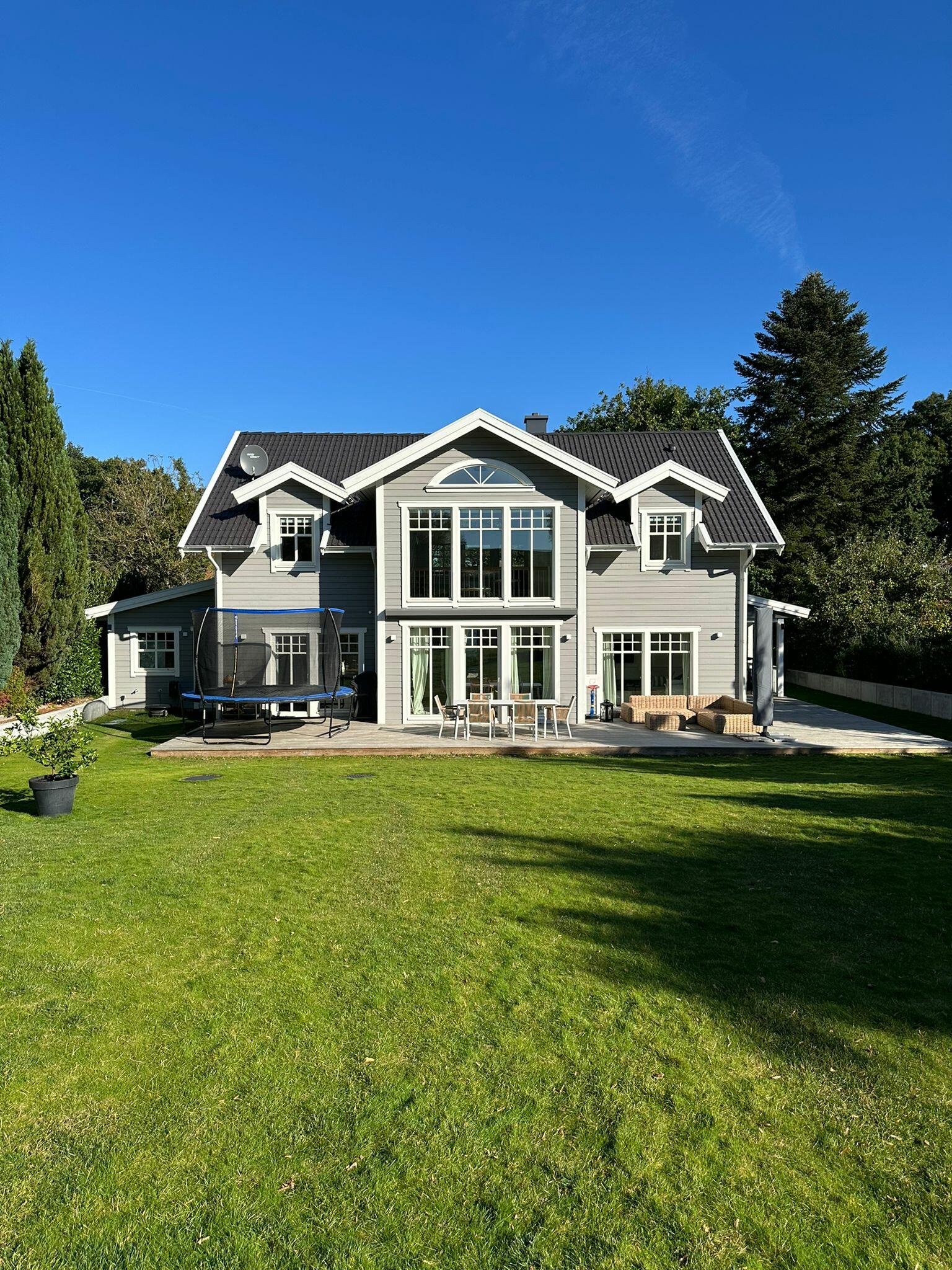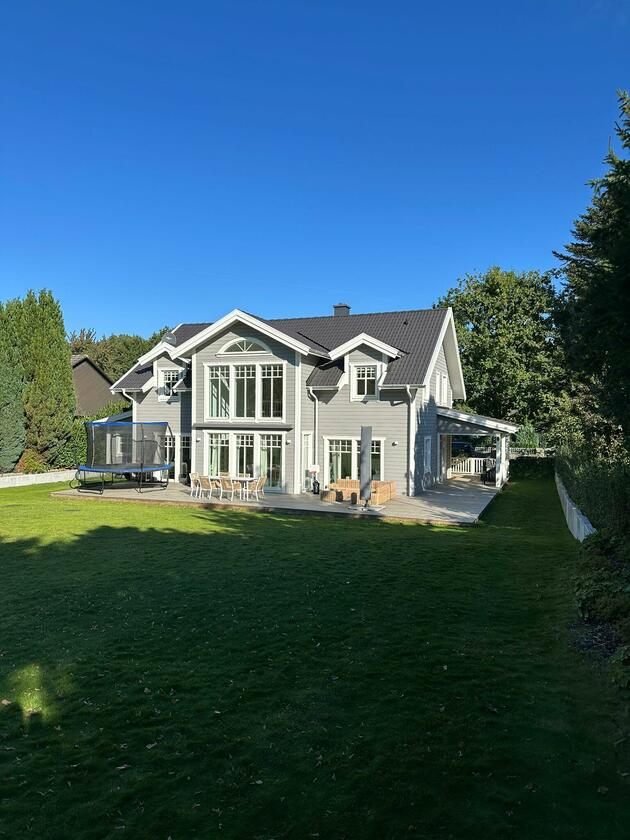 Unser charmantes Landhaus im skandinavischen Stil verbindet nordisches Design mit wohnlicher Eleganz und einer natürlichen, hellen Atmosphäre. Die hellgraue Holzfassade, die großen Sprossenfenster und die umlaufende Veranda verleihen dem Haus seinen unverwechselbaren Charakter. Der lichtdurchflutete Wohn- und Essbereich öffnet sich zum weitläufigen Garten mit Terrasse und gepflegter Rasenfläche. In einer ruhigen Wohngegend gelegen, mit Parkplätzen direkt vor dem Grundstück und guten Zufahrtsmöglichkeiten bietet unser Haus ideale Voraussetzungen für Produktionen.