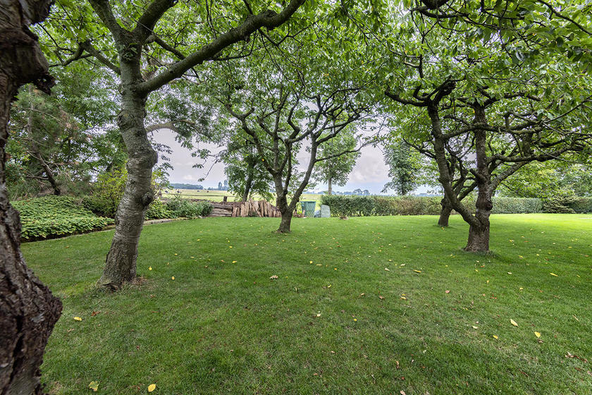 Der Garten hat ca. eine Fläche von 2200 m² und wird größten Teils von alten großen bepflanzen Feldsteinen und einer Hecke umsäumt. Im Garten selbst finden sich alte Kirschbäume, und ein großer Ahorn, der im Sommer viel Schatten spendet. Neu angelegt ist ein kleiner Teich mit Springbrunnen, gleich daneben die überdachte und durch eine Steingabionenwand windgeschütze Grillterrasse im modernen Anthrazit. Mit Zugang zum Keller.