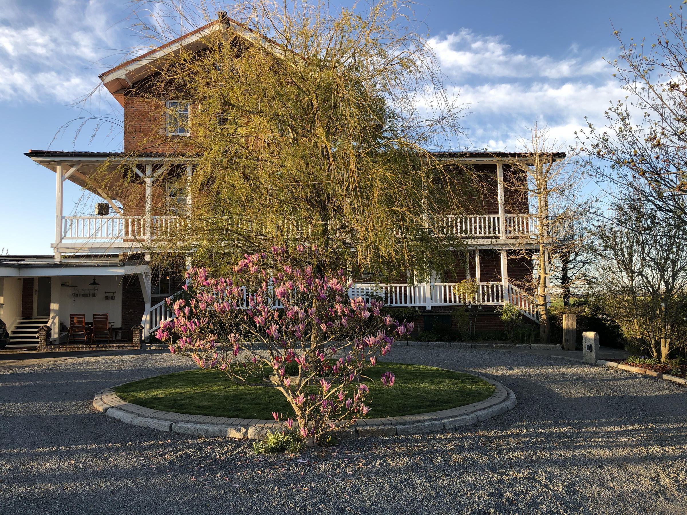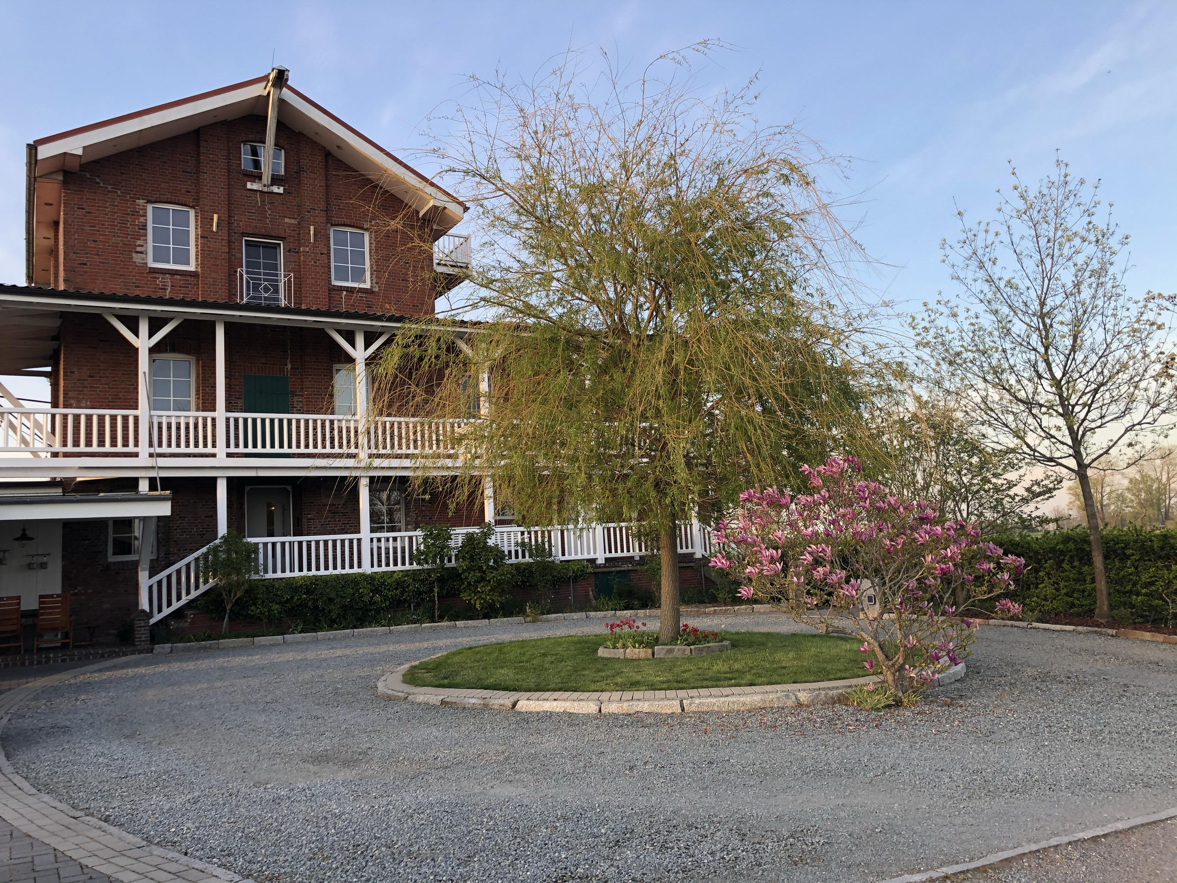 Außenanlage: Die kreisrunde Kiesauffahrt ist mit Ihren Beeten schön bepflanzt und neu mit schönem Rindenmulch ausgelegt und passt somit wunderbar zur Fassade der Mühle. Direkt am Haupteingang befindet sich eine schöne Schaukel die der Mühle ein zusätzlich tolles Ambiente verleiht. Im Winkel gebaut befindet sich ein Carport mit 2 Stellflächen - 2 weitere PKW Parkplätze befinden sich gleich daneben und 2 weitere befinden sich auf der Zufahrt kurz vor der Kiesauffahrt. Direkt zwischen Carport und Mühle befindet sich ein weiterer sehr schöner Außensitzplatz.
