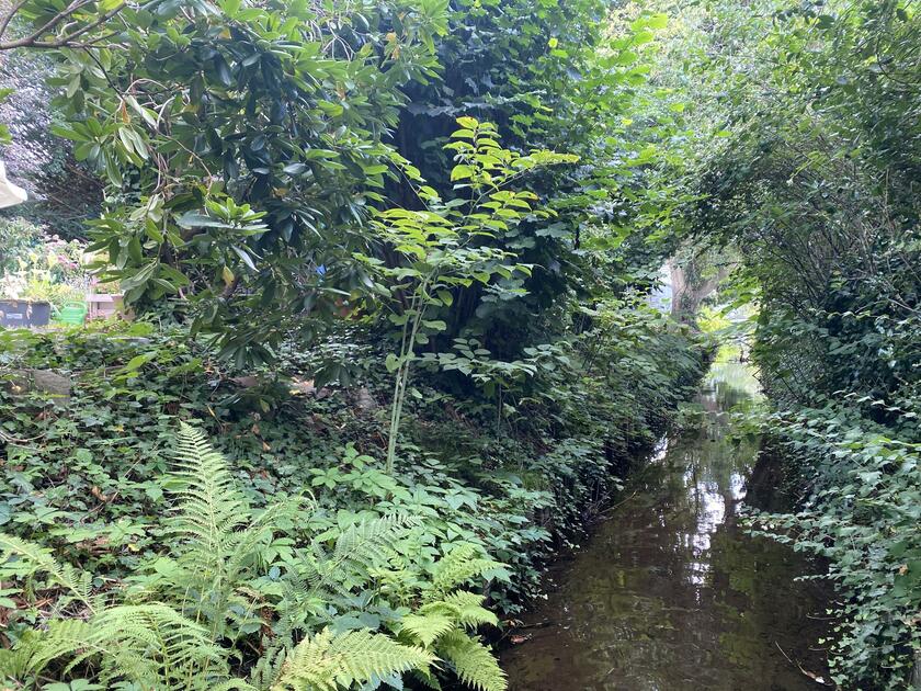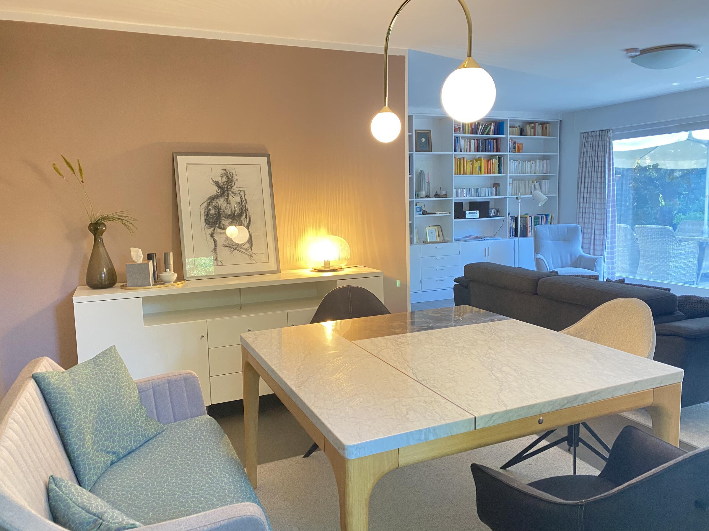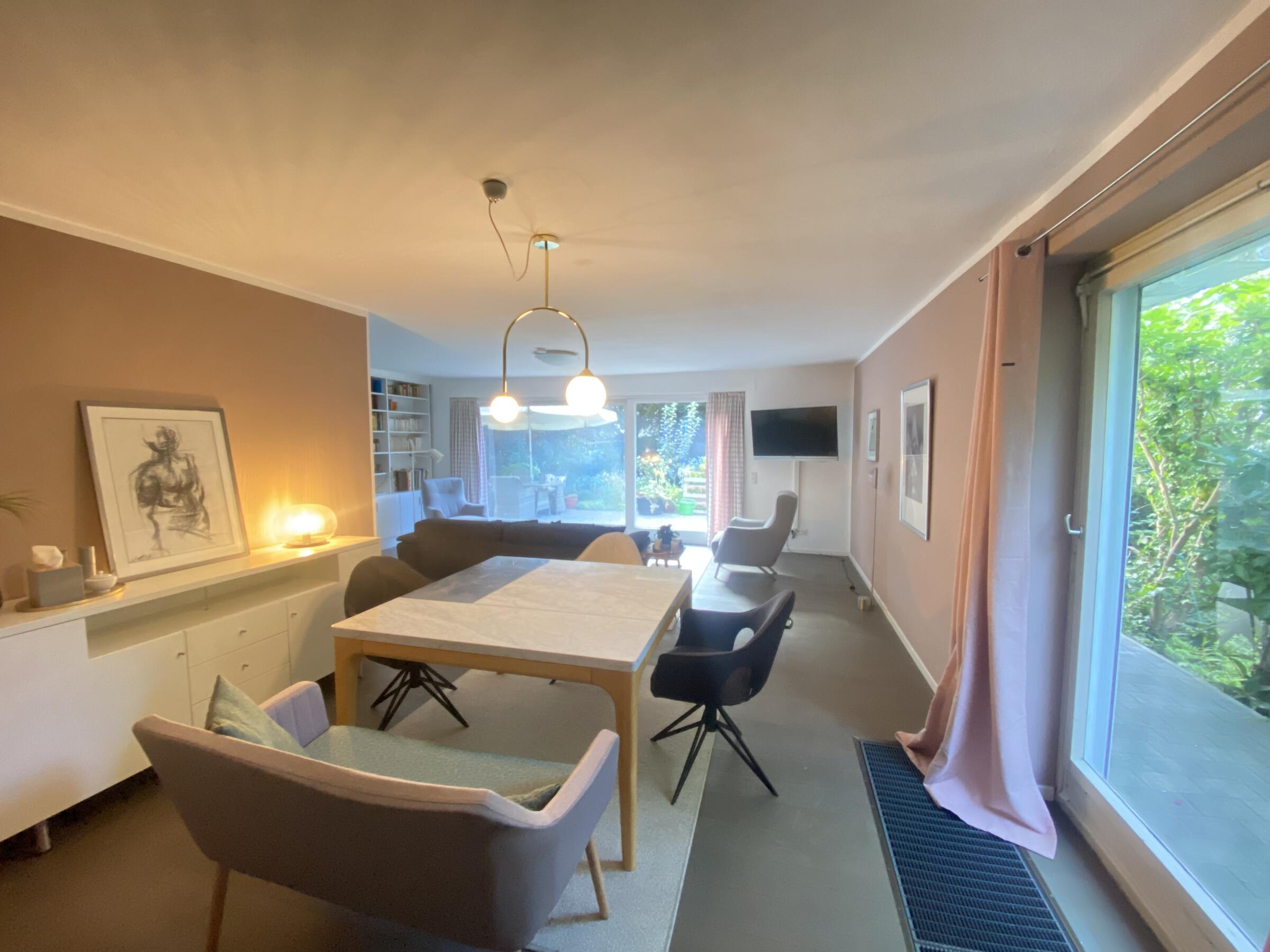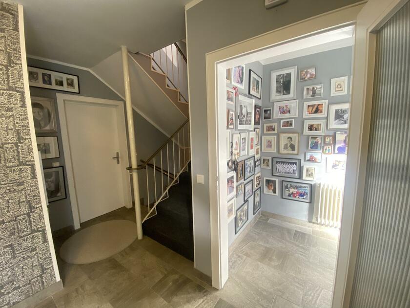 Unser freistehendes Haus ist vielseitig nutzbar. Es erstreckt sich über fünf Ebenen, die jeweils auf halber Höhe angeordnet sind. Der Außenanblick lässt das geräumige Innere nicht vermuten. Dieses Innere umfasst zwei sehr großflächige Ebenen, welche durch dezente und doch auffällige Farbgebung und Inneneinrichtung sehr ansprechend sind. Das Haus selbst ist umgehbar und zur einen Seite durch einen kleinen Wasserlauf vom Nachbargrundstück begrenzt. Die Straße von 1936 ist noch original erhalten und zeichnet sich durch eine zurückhaltende und freundliche Nachbarschaft aus. Es stehen zahlreiche Parkmöglichkeiten zur Verfügung.