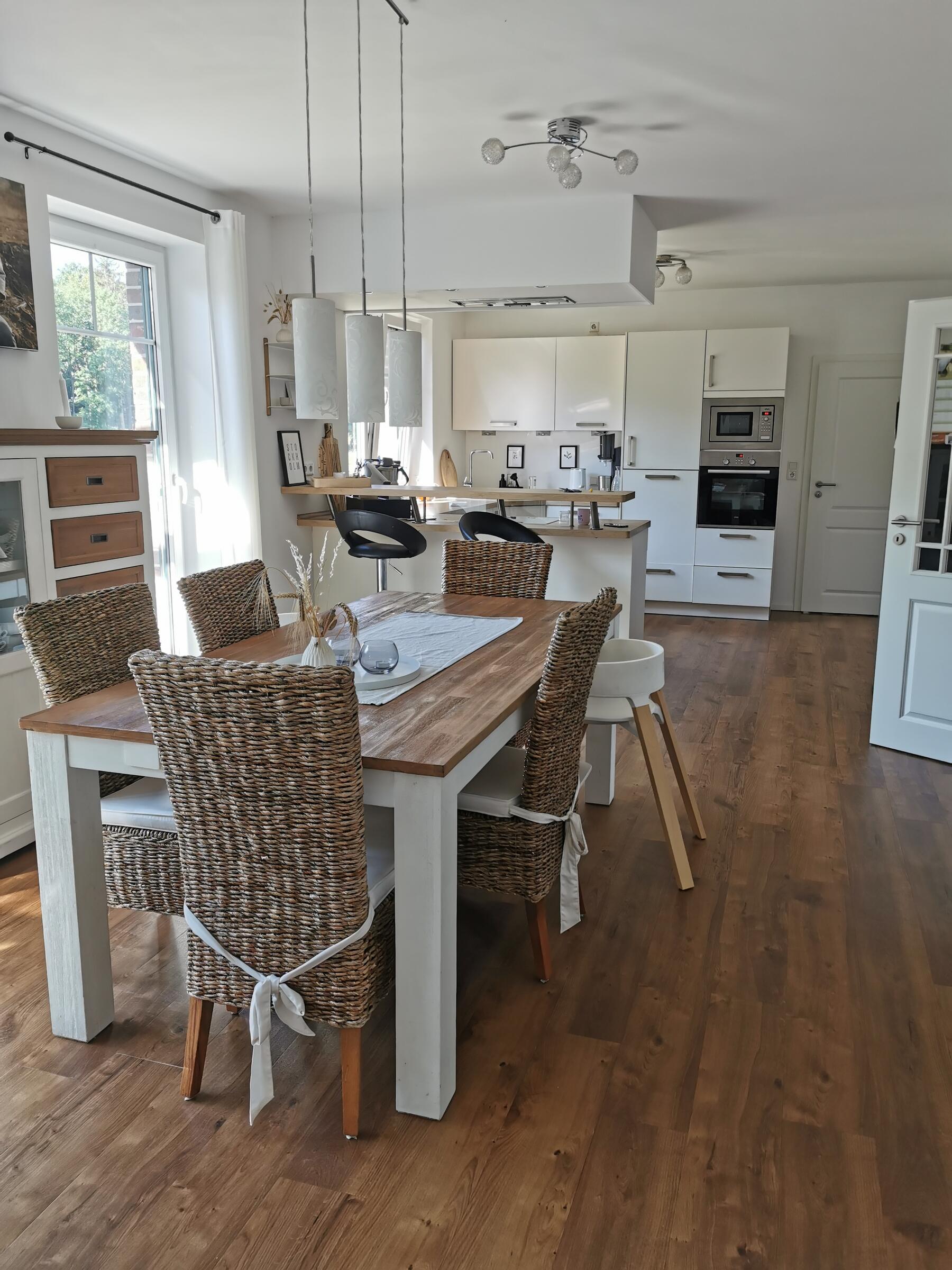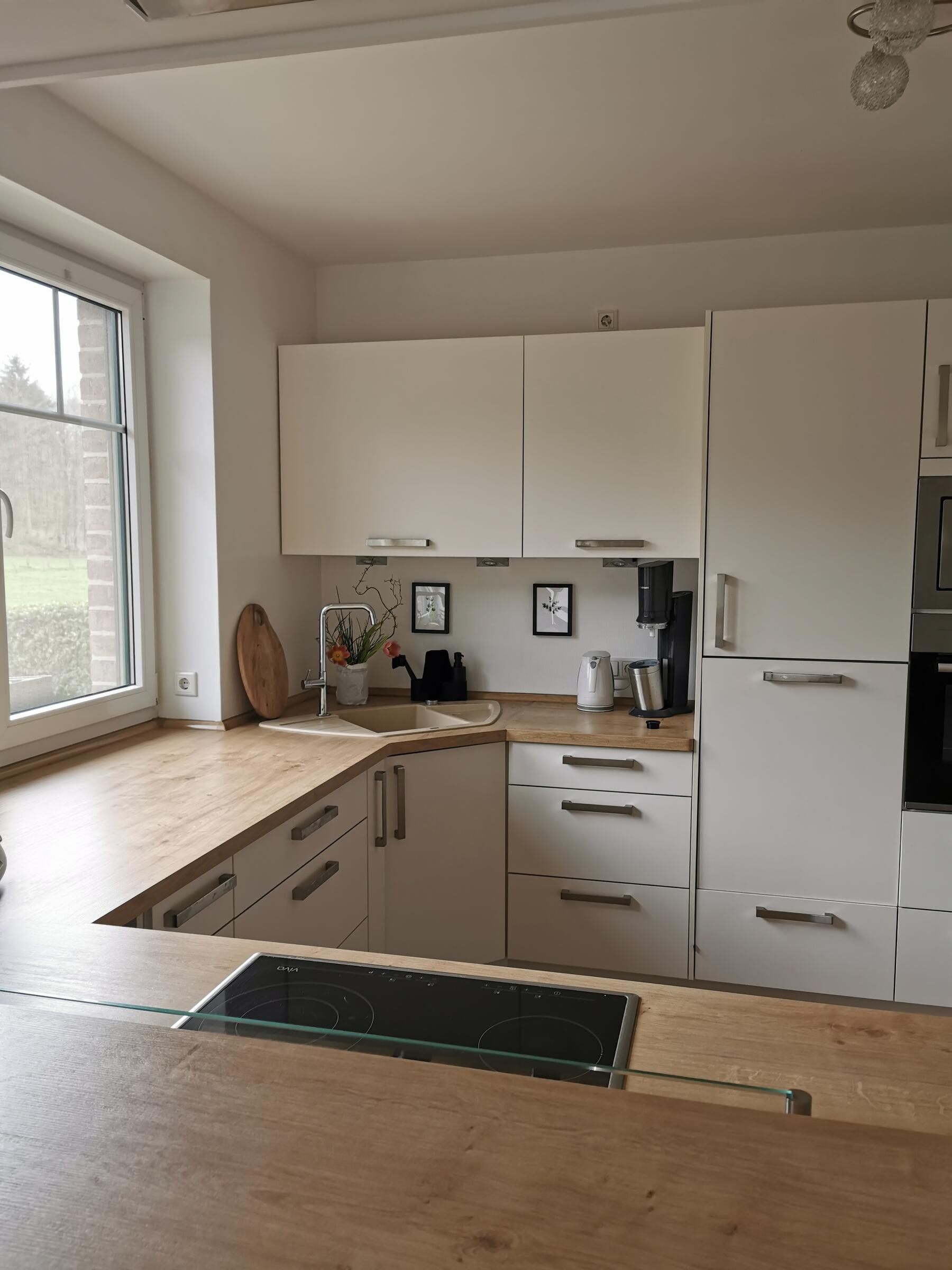Am Rande eines kleinen Dorfes zwischen Bauernhöfen, Feldern und Wäldern befindet sich unser modernes Einfamilienhaus auf einem 900 m² großen idyllischen Grundstüсk. Die Räume unseres ca. 160 m² großen Einfamilienhauses sind sehr hell und im skandinavischen Look gestaltet. Aufgrund der bodentiefen und großen Fenster fällt viel Licht in die Räume. Im Außenbereich bietet unser Grundstück eine große Terrasse, einen großen Garten direkt vorm Waldrand.