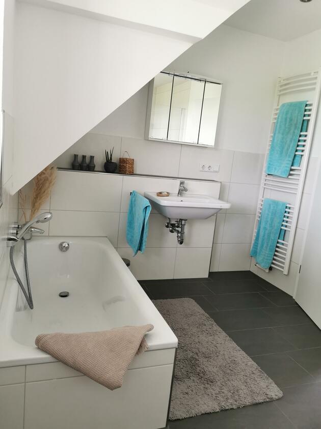 Vor unserem Haus gibt es einen kleinen Hof mit ausreichend gepflasterten Parkplätzen, auch für große Fahrzeuge, sind vor dem Haus und in der Nähe vorhanden. Die Autobahn A31 ist in 3 Min. und die A43 ist in 15 Min. zu erreichen. Bis ins Dorfzentrum sind es ca. 5 Min. Einkaufsmöglichkeiten, ein Hotel und Restaurant sind in der nahen Umgebung zu erreichen.