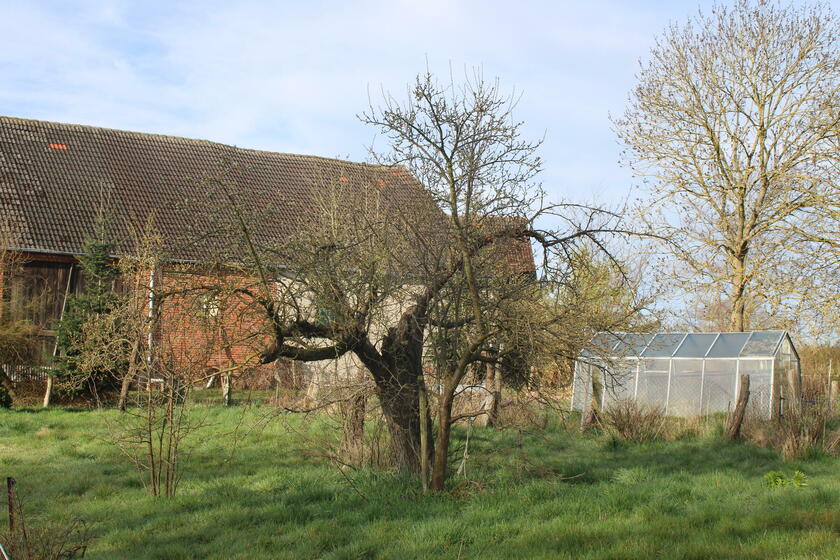 Der Dreiseitenhof wurde in den frühen Jahren des 20. Jahrhunderts errichtet und befindet sich in einer sehr ländlichen Gegend. Der Hof besteht aus einem traditionellen Bauernhaus und einer beeindruckenden Backsteinscheune mit verschiedenen Ställen. Das Bauernhaus bietet typisch eingerichtete Wohnräume. Das Mobiliar und die Einrichtungsgegenstände sind funktionell und dem Hof entsprechend in die Jahre gekommen. Die Fenster können mit Außenrollläden verdunkelt werden. Die Räume dürfen nach Absprache teilweise umgestaltet werden. Im Außenbereich stehen neben dem Innenhof auch eine großzügige Wiesenfläche und zwei verwilderte Gärten zur Verfügung. Parkplätze gibt es auf dem Hof.