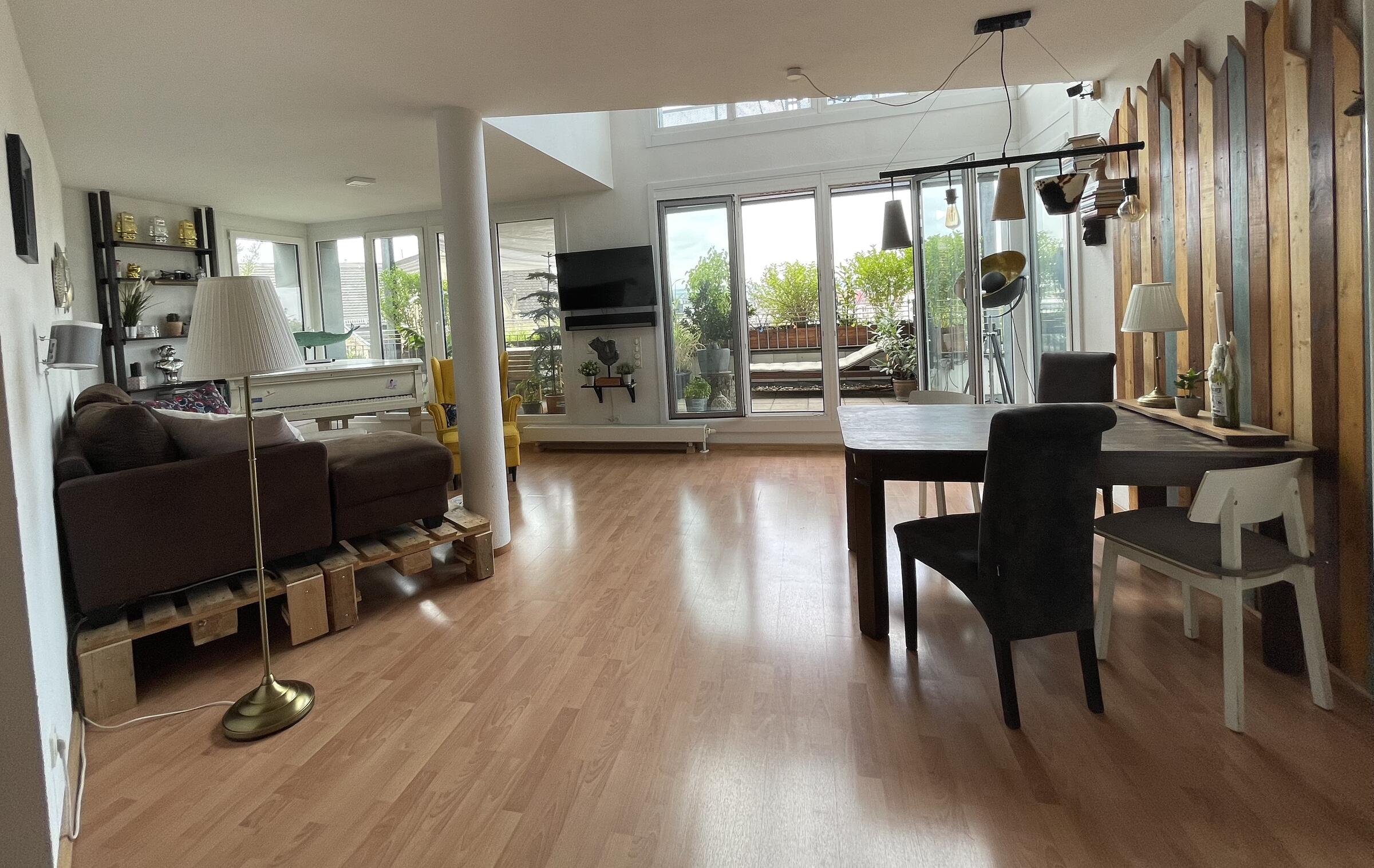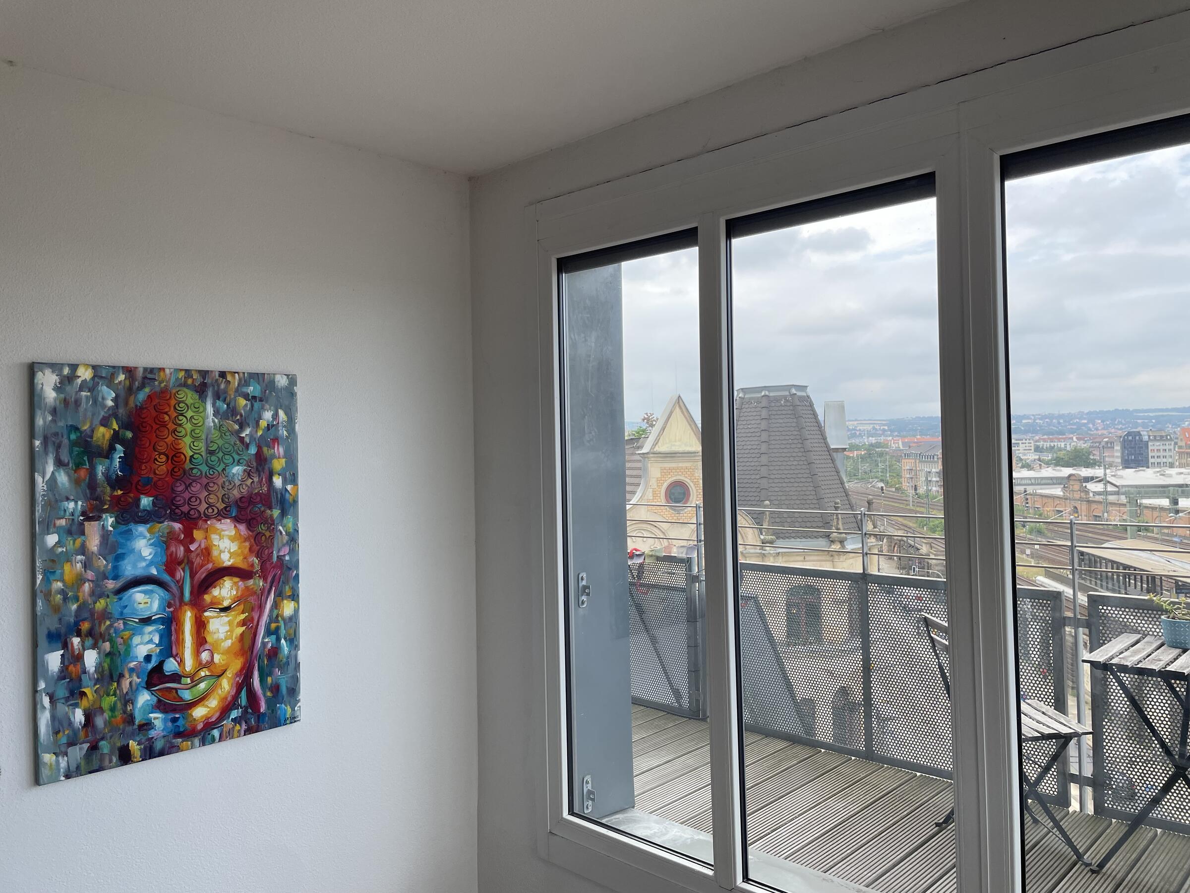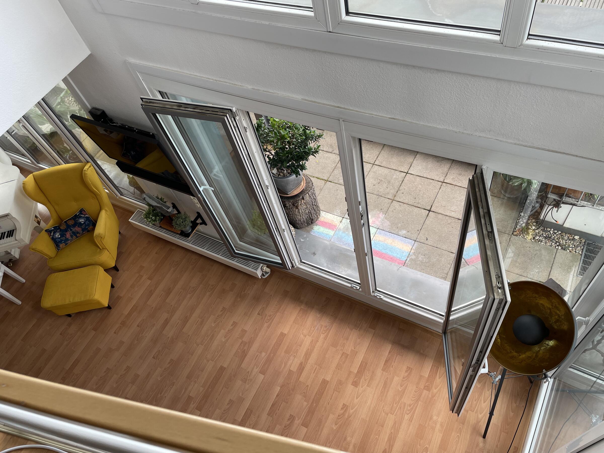 Unser Penthouse befindet sich in der 6. und 7. Etage eines Wohnhauses und ist mit einem geräumigen Personenaufzug (ca. 4 m x 1,5 m) zu erreichen. Der besondere Schnitt der Wohnung bietet sehr viel Raum und verschiedene Einstellungsoptionen. Die Helligkeit der Wohnung ist eine Besonderheit. Zudem befinden sich an beiden Etagen Balkone. Der untere Balkon ist eine grüne Oase mitten in der Stadt. Im Wohnzimmer befindet sich ein Piano, welches ebenfalls gern für Aufnahmen genutzt werden kann. Die Böden der Räume sind mit hellem Laminat ausgelegt. In den Badezimmern und der Küche wurden helle Fliesen verlegt. Unsere Wohnung ist ganztags hell, da wir nach Süden ausgerichtet sind. An jedem Fenster des Penthouses befinden sich Jalousien, die heruntergefahren werden können, um die Räume dunkler zu gestalten. Auf der Straße vor dem Haus gibt es zahlreiche öffentliche Parkplätze. Wir arbeiten selbst beim Film, sodass wir wissen worauf es ankommt und sich die Absprachen dementsprechend professionell gestalten. Wir freuen uns auf Ihre Anfragen.