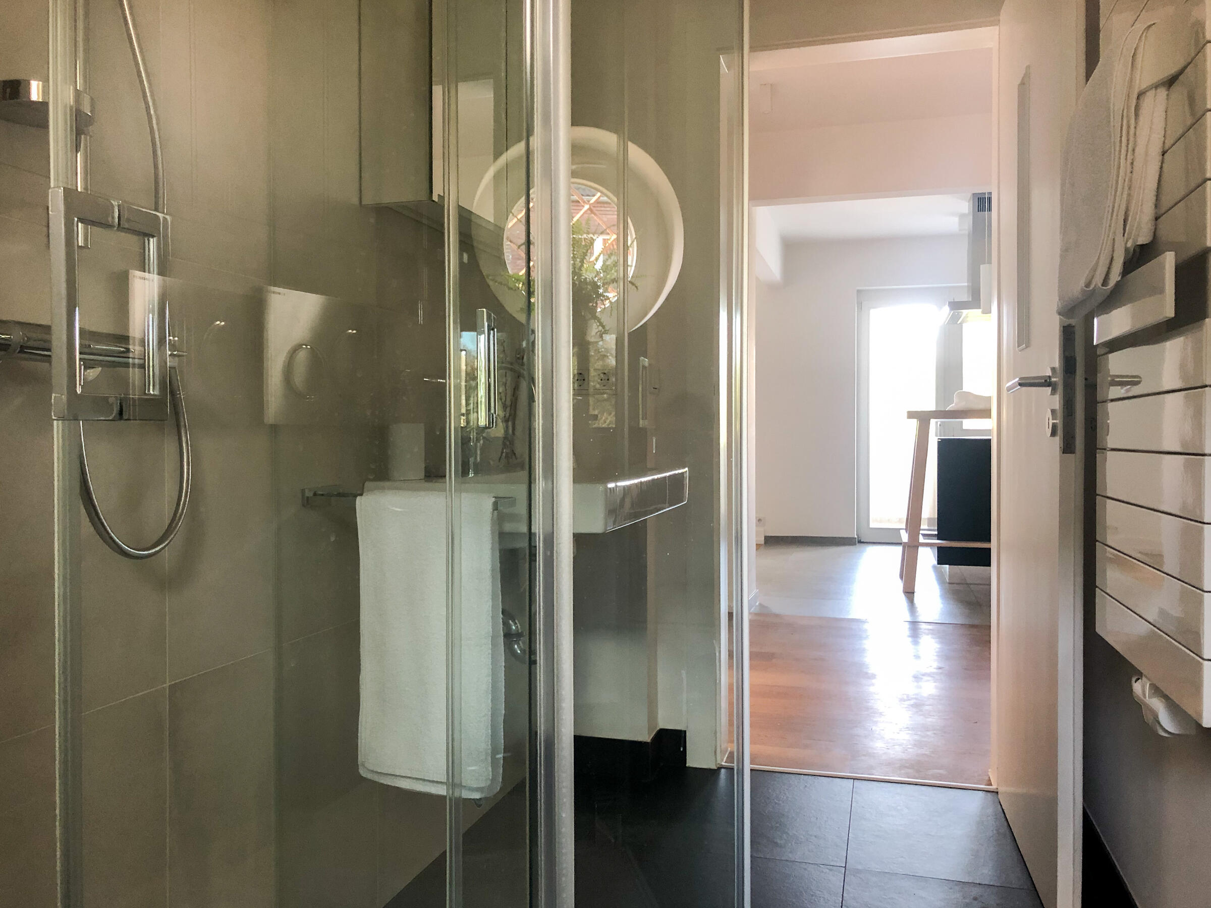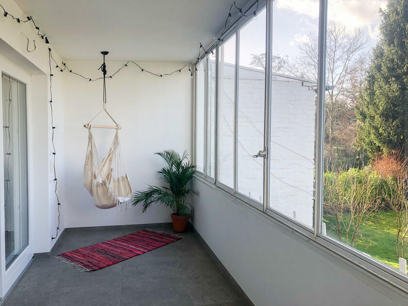 Meine Wohnung befindet sich in einem Haus, das im Jahr 1930 erbaut und im Jahr 2017 aufwendig kernsaniert wurde. Die Wohnung bietet ein Badezimmer, eine offene Wohnküche, ein Schlafzimmer, einen Wintergarten mit Anschluss per Treppe an den privaten Garten und ein weiteres Zimmer mit kleinem Badezimmer, das als Büro und Gästezimmer genutzt wird und über die Terrasse sowie die Kellertreppe zu erreichen ist. Von der ca. 20 m² großen Terrasse hat man einen schönen Ausblick auf den Garten und die angrenzenden Kastanienbäume des Zentralschulgartens. Die Einbauküche ist eine Maßanfertigung der Stadler Manufaktur aus Vollholz (lackiert). Die Küchengeräte sind von Bosch. In der gesamten Wohnung liegt ein hochwertiger Eiche-Parkettboden. Das Badezimmer bietet den höchsten Komfort. Neben der Echtglas-Dusche stehen Natursteinfliesen und edle Keramik zur Verfügung. Dezente Naturtöne ergeben eine äußerst harmonische Atmosphäre.