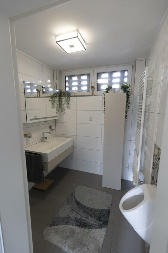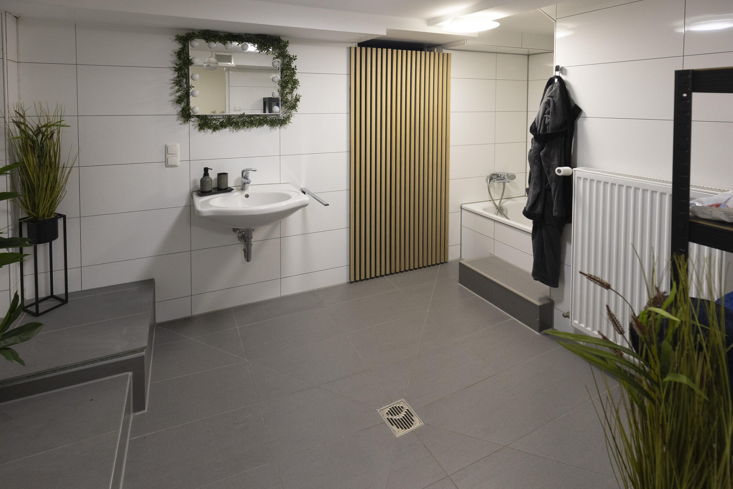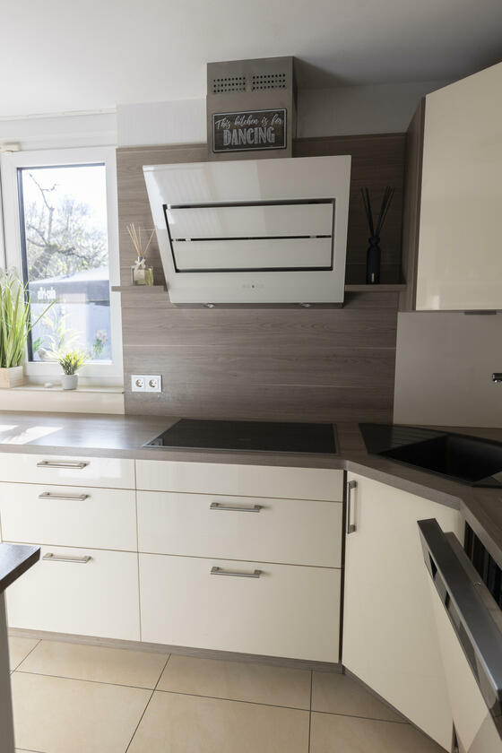Unser unbewohnter Bungalow befindet sich in einer ruhigen Wohnsiedlung. Durch die teilweise bodentiefen Fensterfronten im Erdgeschoss fällt im Tagesverlauf viel Sonnenlicht in die minimalistisch eingerichteten Wohnräume. Die Fenster können mit Hilfe von Vorhängen und Jalousien verdunkelt werden. Im Wohn- und Essbereich und im Schlafzimmer wurde heller Velourboden verlegt. Die Fußböden der anderen Räume sind großflächig gefliest. Die Möbel können nach Absprache umgeräumt werden. Im Außenbereich steht eine Terrasse zur Verfügung. Parkplätze befinden sich direkt vor dem Haus und in der näheren Umgebung auf der ruhigen Straße.