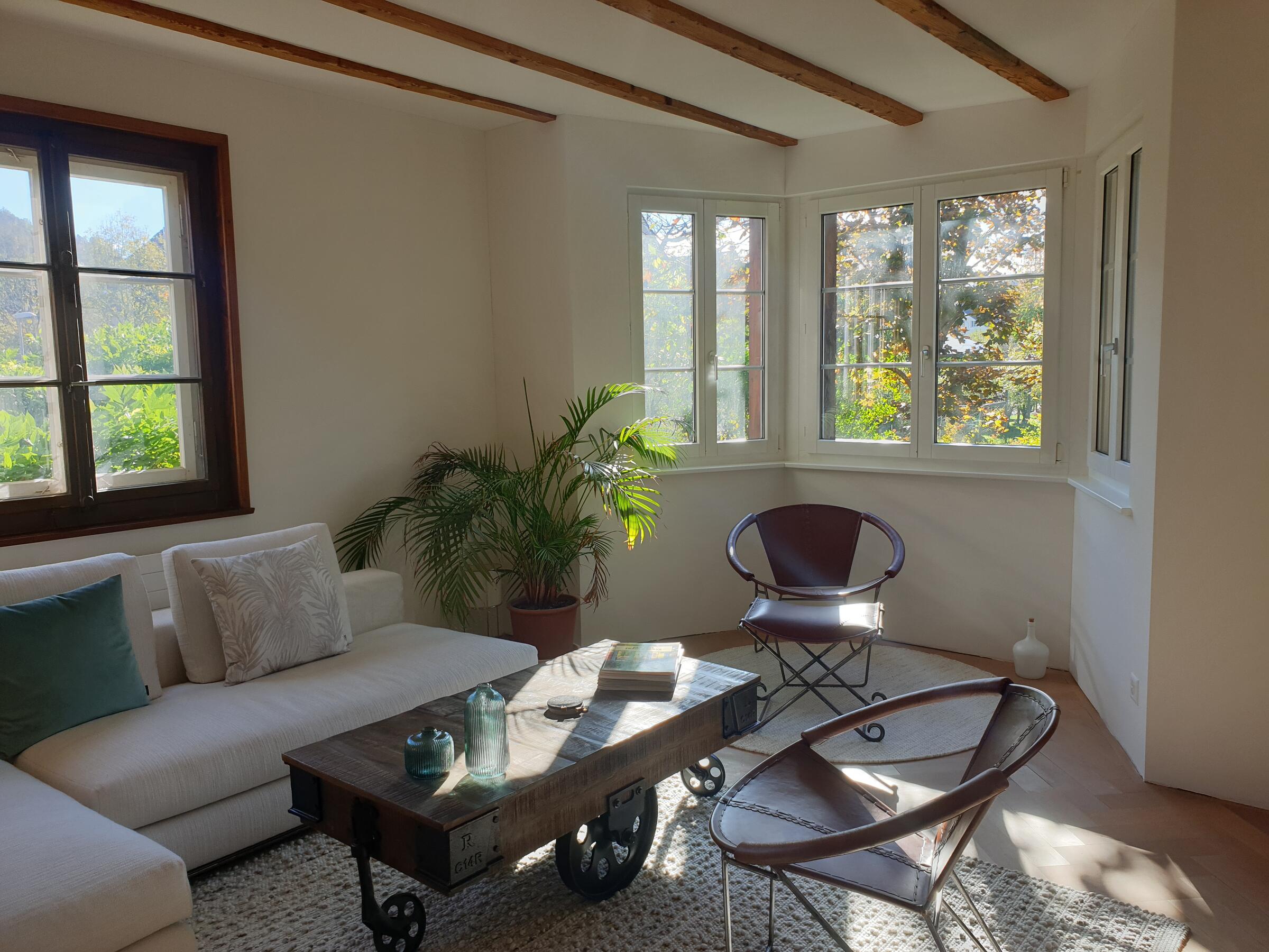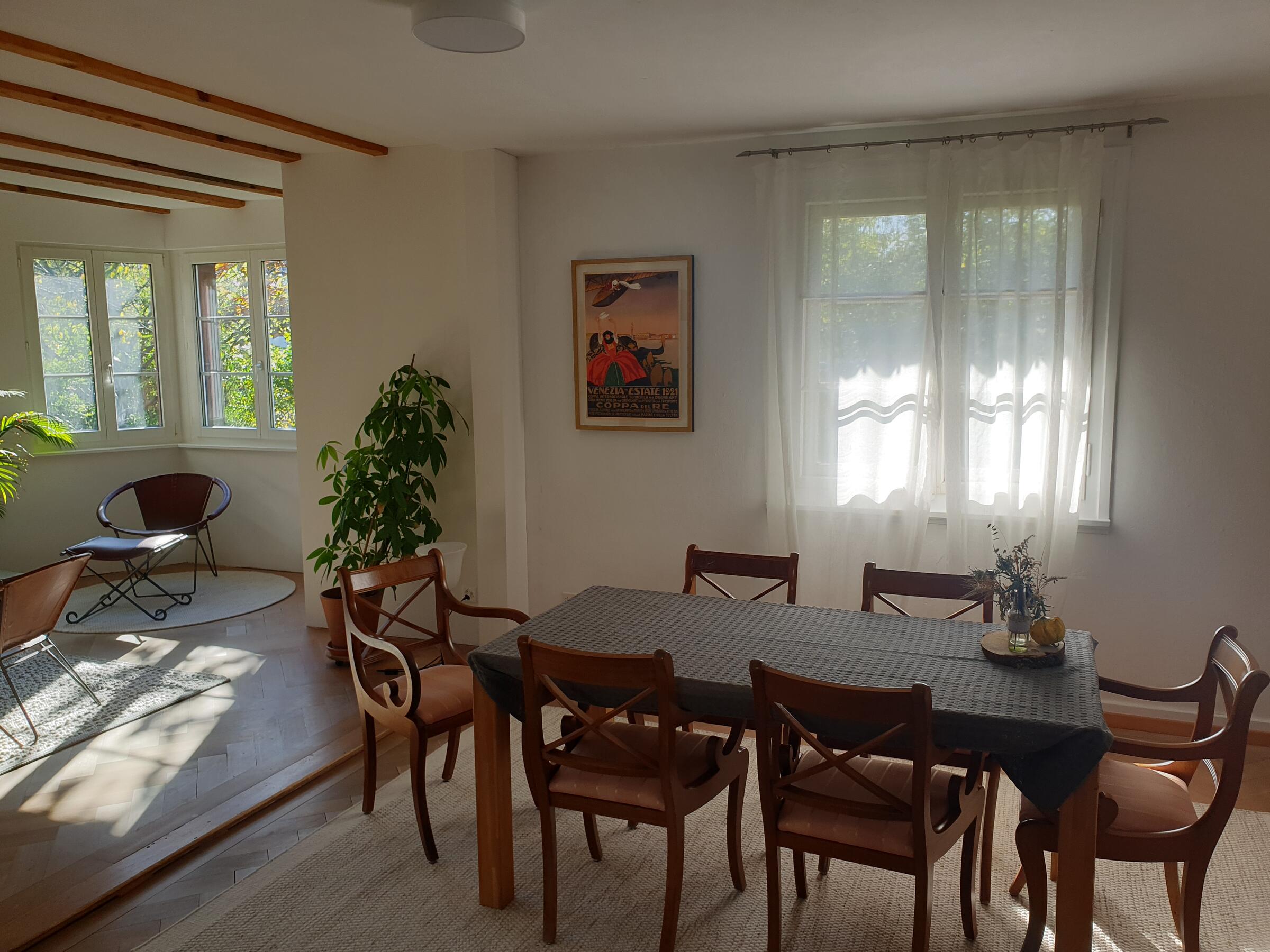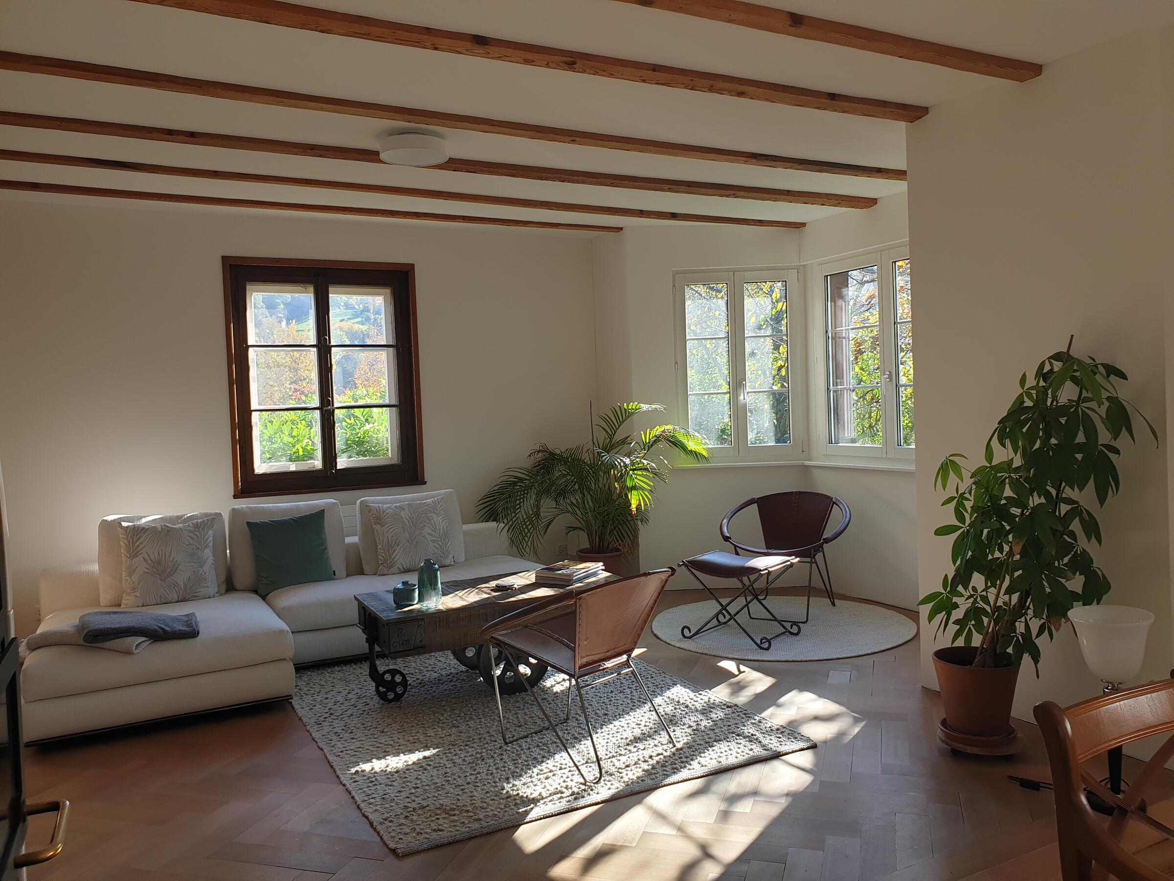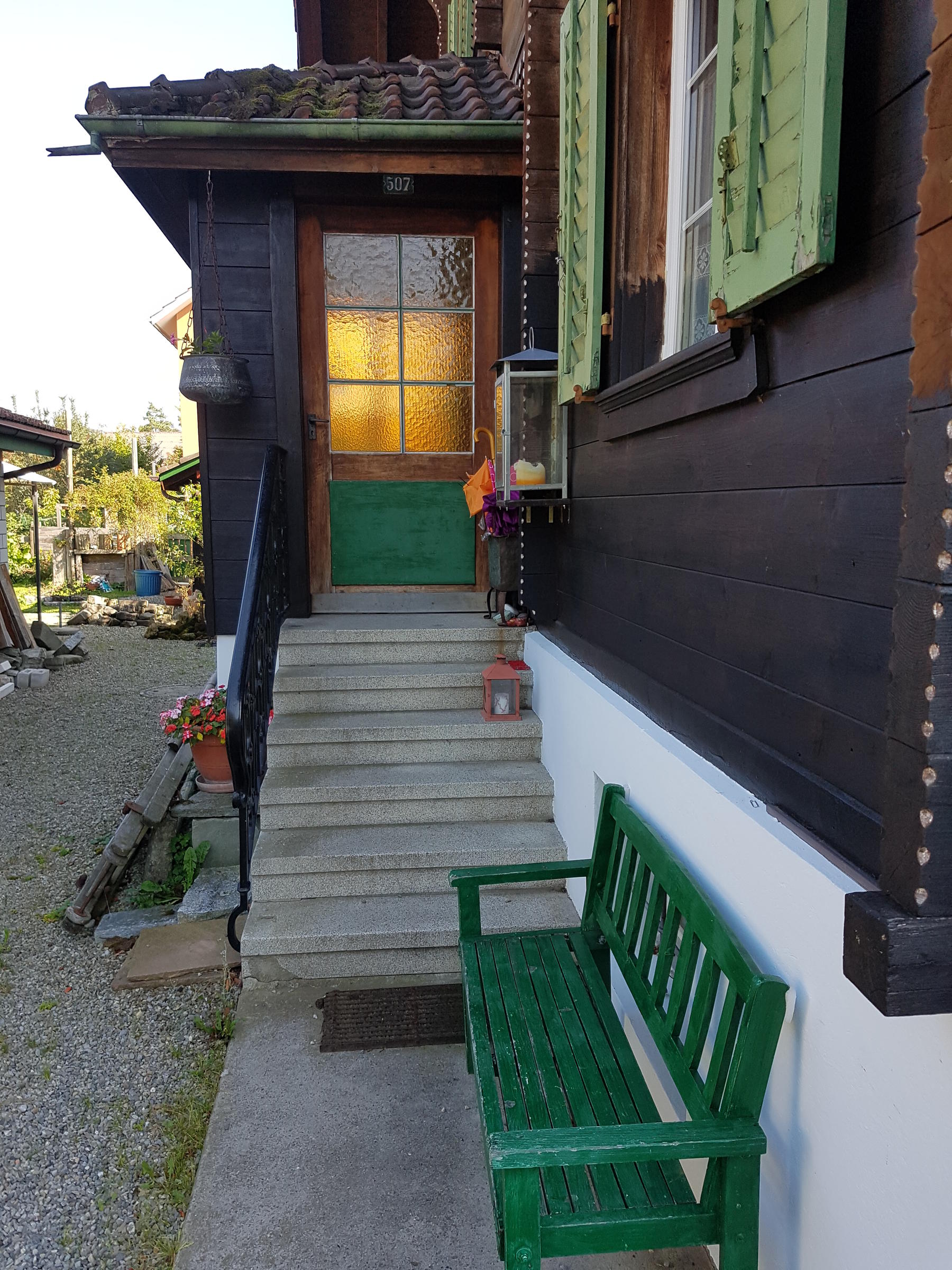 Auf dem Grundstück von 1000 m² liegt ein freistehendes Einfamilienhaus (Holzbau), ein kleines Gartengebäude, welches als Wohn- und Gästeraum ausgebaut wurde, eine Garage sowie ein Pizzaofen/Grill. Das Grundstück ist mit Gemüse- und Kräutergarten, Bäumen, Büschen und Blumen bepflanzt, die Freiflächen bestehen aus Wiese. Kieswege verbinden Wohnhaus, Nebengebäude und Gartengebäude. Das Haus ist im Landhausstil ausgebaut und eingerichtet, der Innenausbau besteht aus Holz- und Steinelementen, das Wohn-/Esszimmer ist mit Parkett ausgelegt. Das Gartengebäude liegt mitten im Garten, umgeben von Pergola mit Reben, Nutzgarten und Pizzaofen/Grillstelle. Die große Garage kann als Raum für Teamaufenthalt, Maske und Garderobe genutzt werden, außerdem beinhaltet sie eine Werkstatt sowie Kühlschrank. Ein weiterer Raum (mit Sauna) für Maske und Garderobe befinden sich im Keller. Es sind drei eigene Parkplätze vorhanden, auf der gegenüberliegenden Straßenseite ist ein öffentlicher Parkplatz verfügbar. Die Location liegt im Kanton Zürich, im Bezirk Winterthur, am Rande eines malerischen, kleinen mittelalterlichen Landstädtchens, im Umkreis von 500 m befinden sich diverse Einkaufsmöglichkeiten (Bäckerei, Molkerei, Metzgerei usw.). Der 2 km entfernte Bahnhof ist per Bus erreichbar und weist einen S-Bahnanschluss Richtung Zürich oder St. Gallen auf.