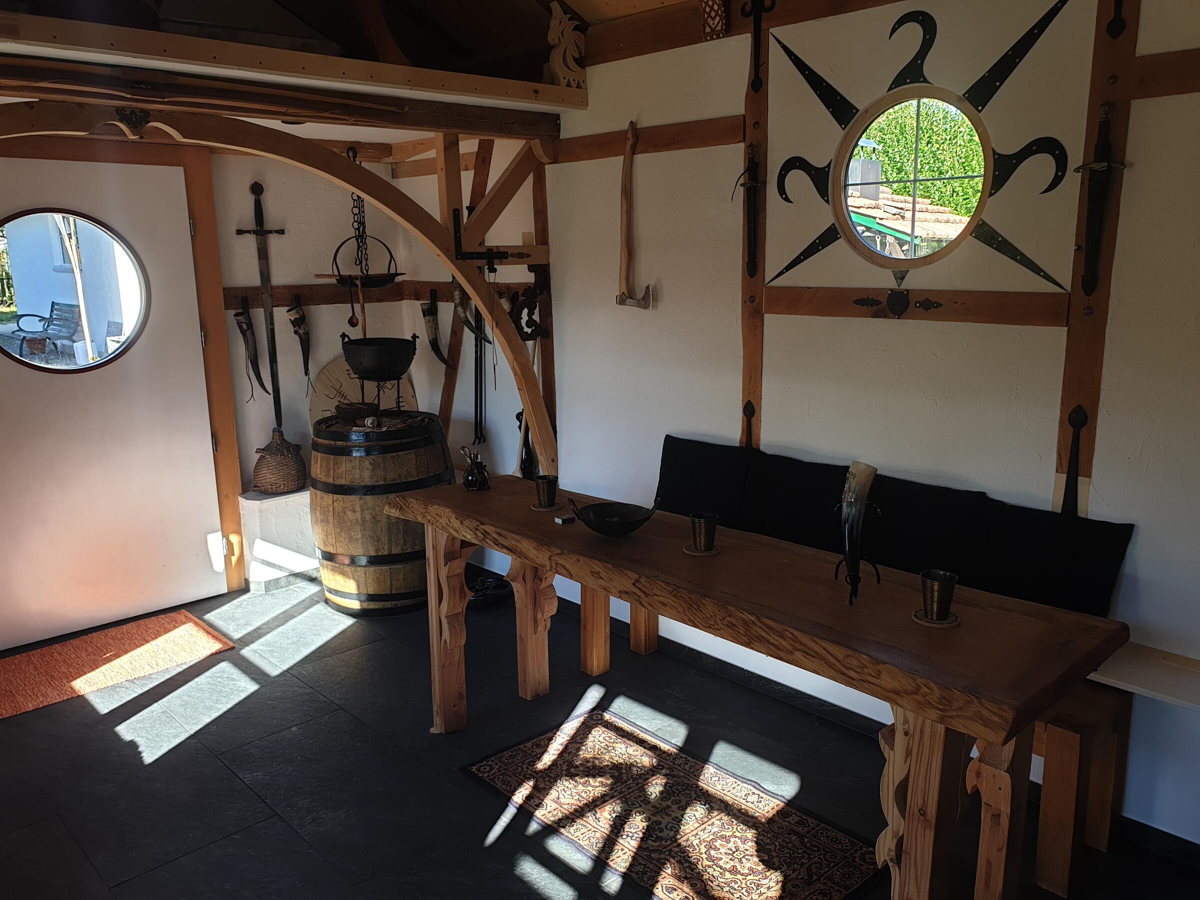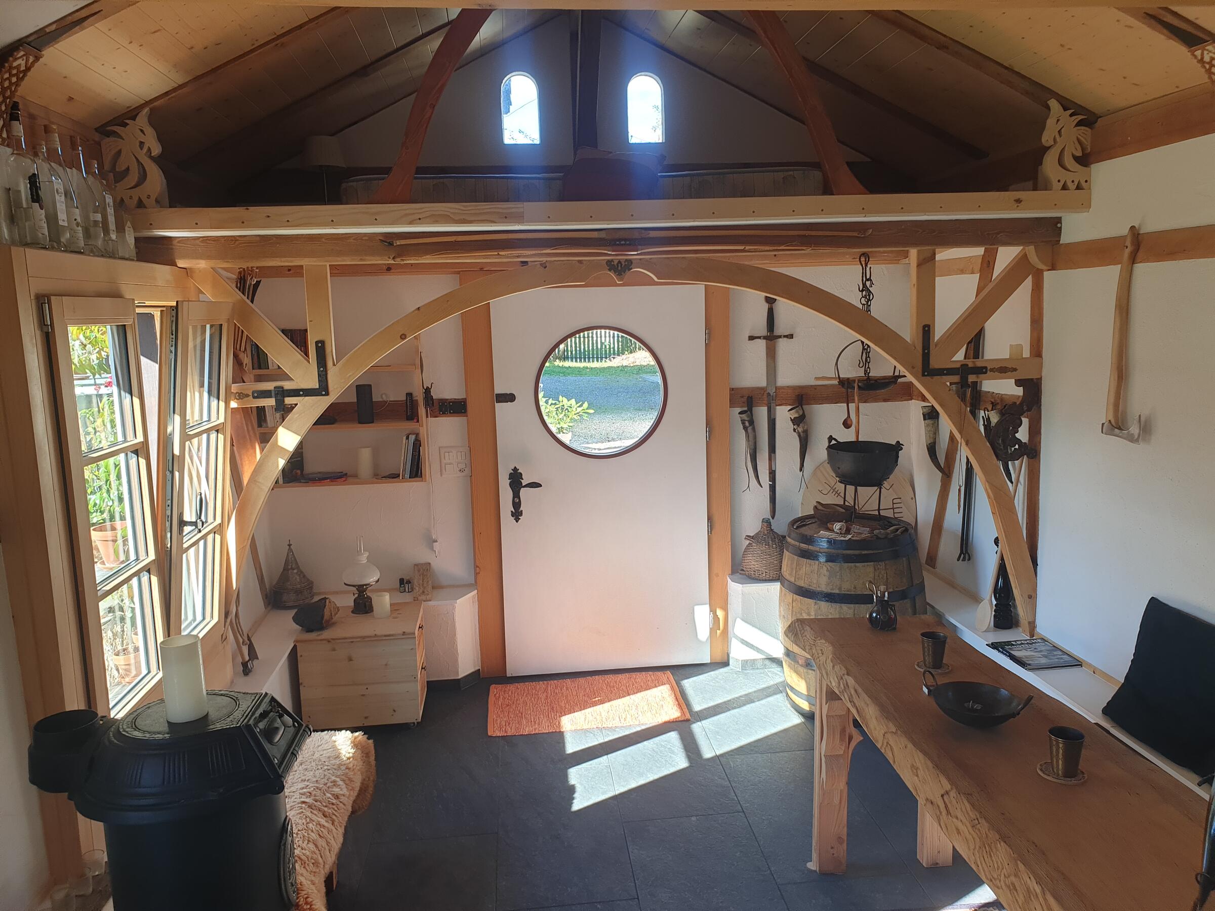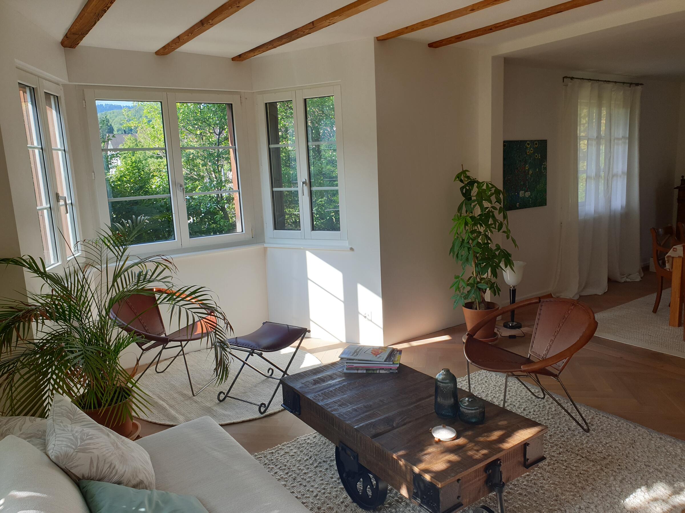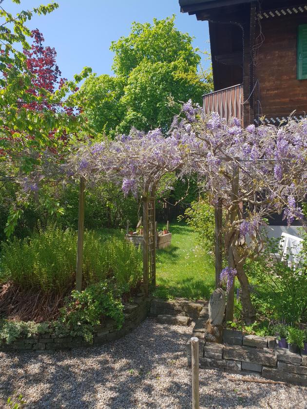 Auf dem Grundstück von 1000 m² liegt ein freistehendes Einfamilienhaus (Holzbau), ein kleines Gartengebäude, welches als Wohn- und Gästeraum ausgebaut wurde, eine Garage sowie ein Pizzaofen/Grill. Das Grundstück ist mit Gemüse- und Kräutergarten, Bäumen, Büschen und Blumen bepflanzt, die Freiflächen bestehen aus Wiese. Kieswege verbinden Wohnhaus, Nebengebäude und Gartengebäude. Das Haus ist im Landhausstil ausgebaut und eingerichtet, der Innenausbau besteht aus Holz- und Steinelementen, das Wohn-/Esszimmer ist mit Parkett ausgelegt. Das Gartengebäude liegt mitten im Garten, umgeben von Pergola mit Reben, Nutzgarten und Pizzaofen/Grillstelle. Die große Garage kann als Raum für Teamaufenthalt, Maske und Garderobe genutzt werden, außerdem beinhaltet sie eine Werkstatt sowie Kühlschrank. Ein weiterer Raum (mit Sauna) für Maske und Garderobe befinden sich im Keller. Es sind drei eigene Parkplätze vorhanden, auf der gegenüberliegenden Straßenseite ist ein öffentlicher Parkplatz verfügbar. Die Location liegt im Kanton Zürich, im Bezirk Winterthur, am Rande eines malerischen, kleinen mittelalterlichen Landstädtchens, im Umkreis von 500 m befinden sich diverse Einkaufsmöglichkeiten (Bäckerei, Molkerei, Metzgerei usw.). Der 2 km entfernte Bahnhof ist per Bus erreichbar und weist einen S-Bahnanschluss Richtung Zürich oder St. Gallen auf.