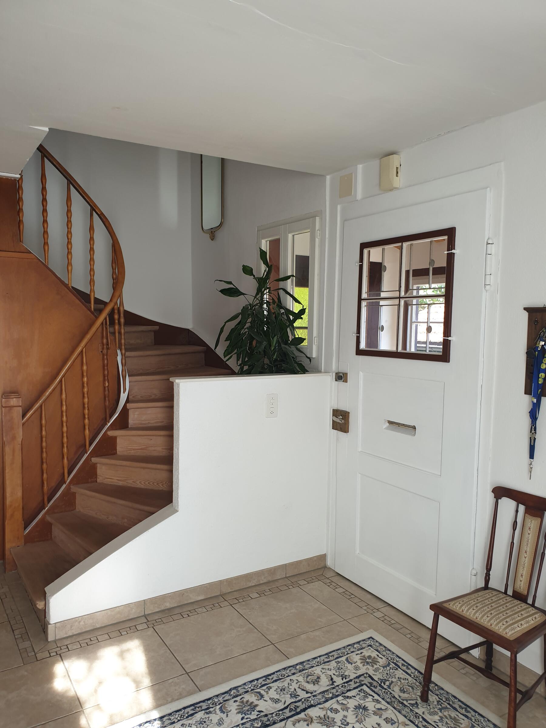 - Treppenhaus (EG)Fläche: 7 m²Länge: 5 mBreite: 1,3 mHöhe: 2,4 mmöbliert: nein