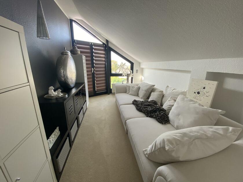 Unser Reihenendhaus befindet sich in einer Spielstraße. In der Nachbarschaft gibt es vorrangig Familien mit Kindern. Das Haus ist sehr hell und mit versetzten Ebenen. Der Einrichtungsstil ist durchgängig und in Naturtönen gehalten. Der Gartenbereich ist komplett neu gestaltet. Es gibt noch eine Randbepflanzung, aber keine Rasenfläche. Der ausgebaute kleine Dachspeicher dient zur Aufbewahrung von Kleidungsstücken, Bettwäsche etc. Die Kellerräume sind komplett ausgebaut, alle Rohre verkleidet und die Böden sind gefliest. Der Vorgarten, Einfahrt und Carport werden neu gepflastert. Die gesamte Dekoration kann verändert werden.