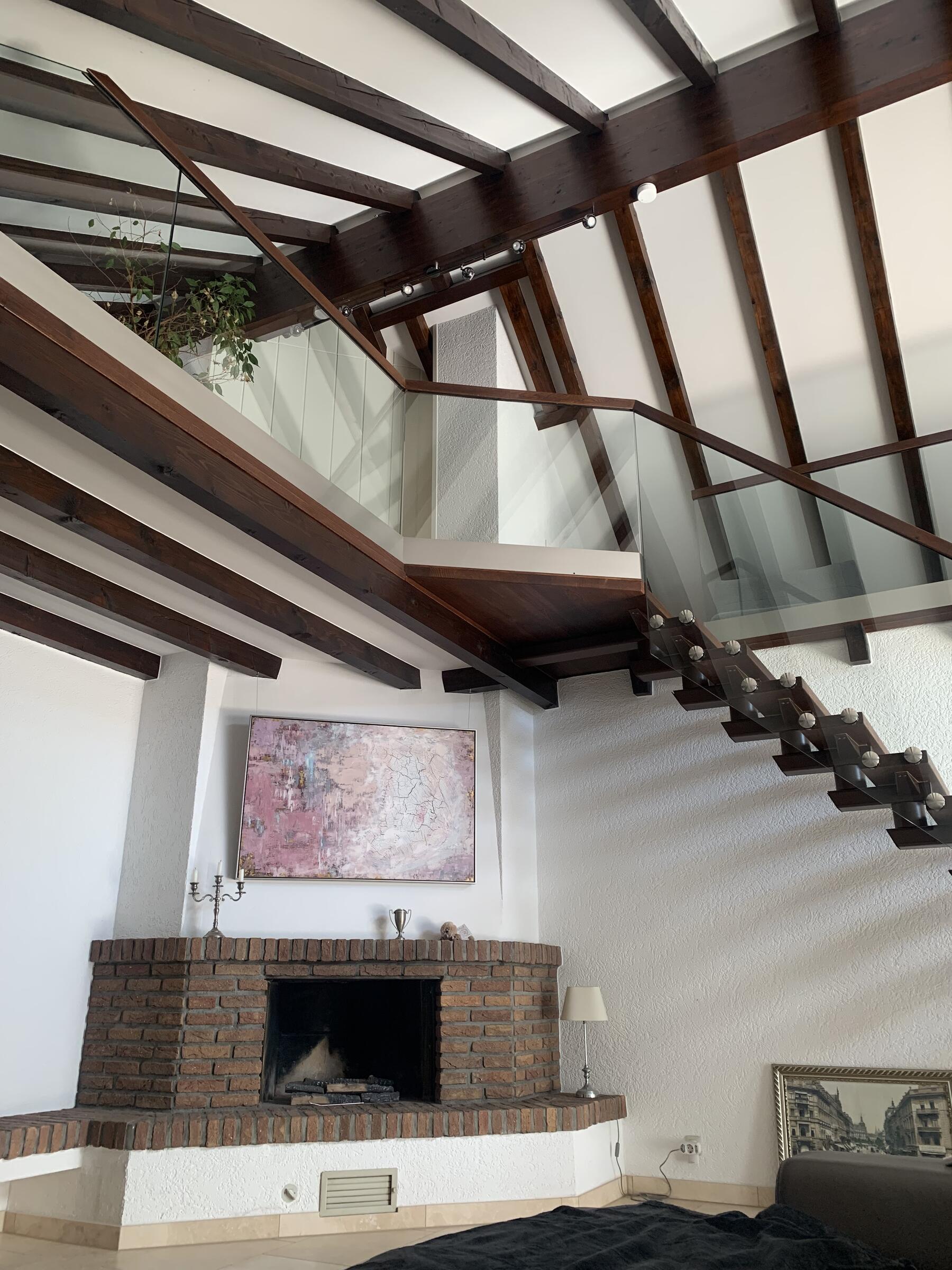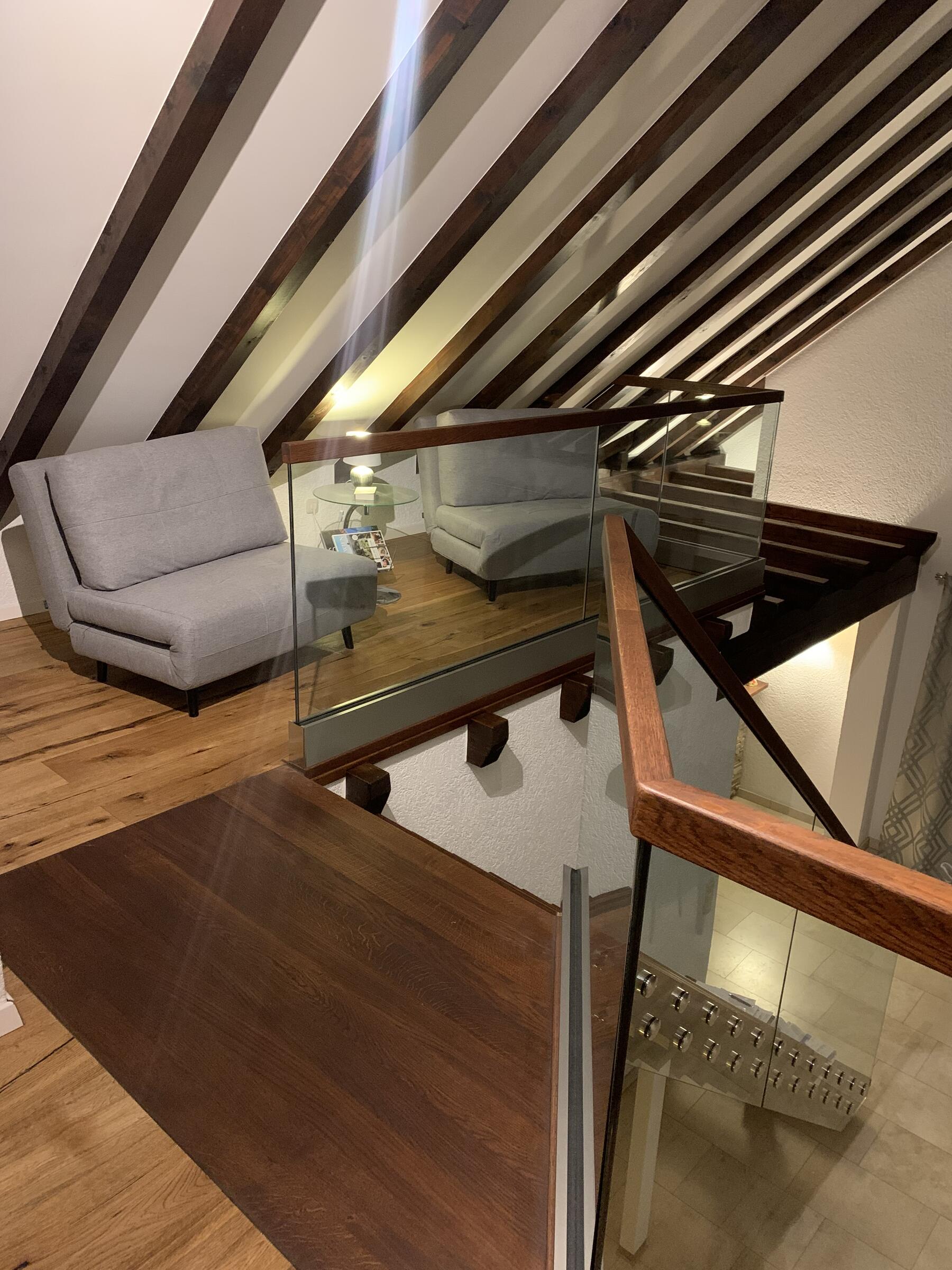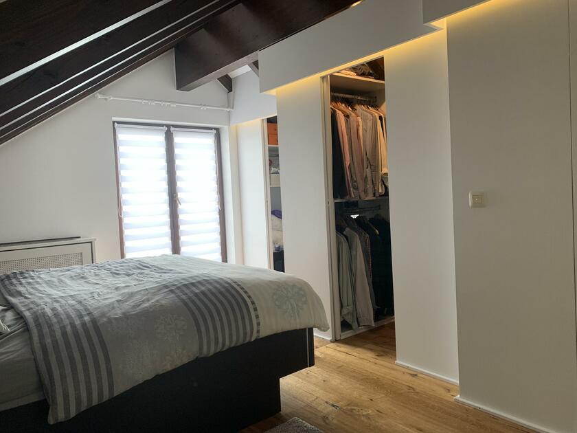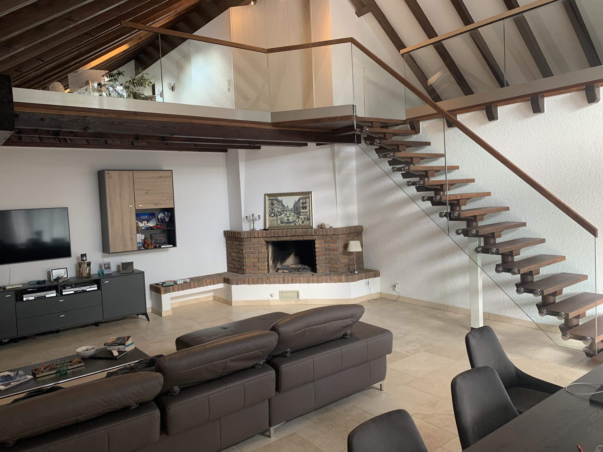Die elegante Maisonette-Dachgeschosswohnung befindet sich in einem Mehrfamilienhaus. Die Räume der Wohnung sind weitestgehend offen gestaltet. Der großzügige Wohn- und Essbereich bietet ebenfalls eine Bar. Der Boden im Wohn- und Essbereich ist mit mattem Travertin ausgelegt. Im oberen Bereich der Wohnung sind die Böden der Empore und des Schlafzimmers mit Echtholz-Eichenparkett ausgelegt. Das Masterbad befindet sich ebenfalls im oberen Bereich der Wohnung. Die Fenster der Räume sind nur teilweise verdunkelbar. Vor dem Wohnhaus befindet sich ein öffentlicher Parkplatz. Die Wohnung ist ca. 17 km von Frankfurt am Main entfernt.