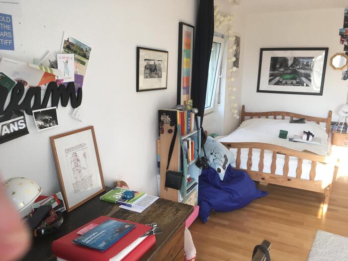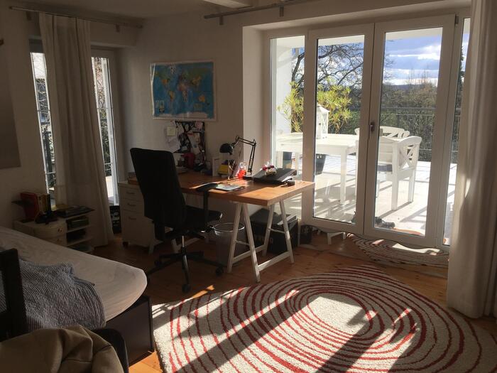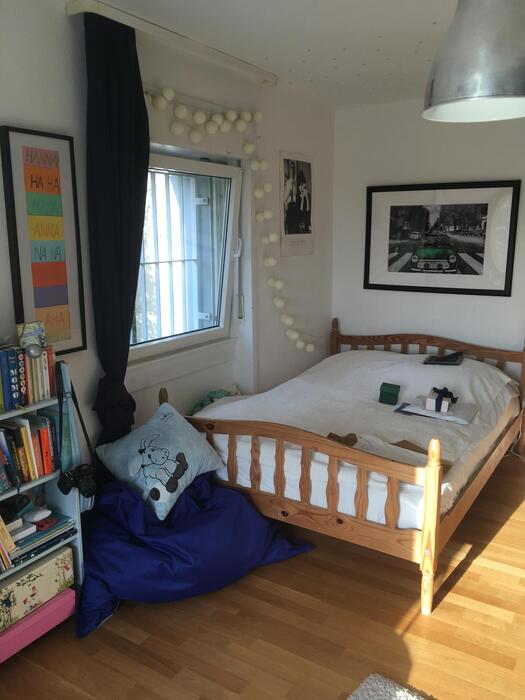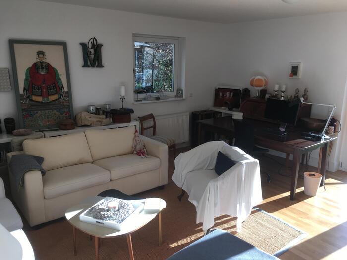 Unser freistehendes, lichtdurchflutetes Haus aus den 30-er Jahren liegt in Frankfurt-Eschersheim, unweit vom Weißen Stein entfernt. Es hat einen unverbauten Blick auf die Niddawiesen, welche man direkt vom Garten aus erreichen kann.