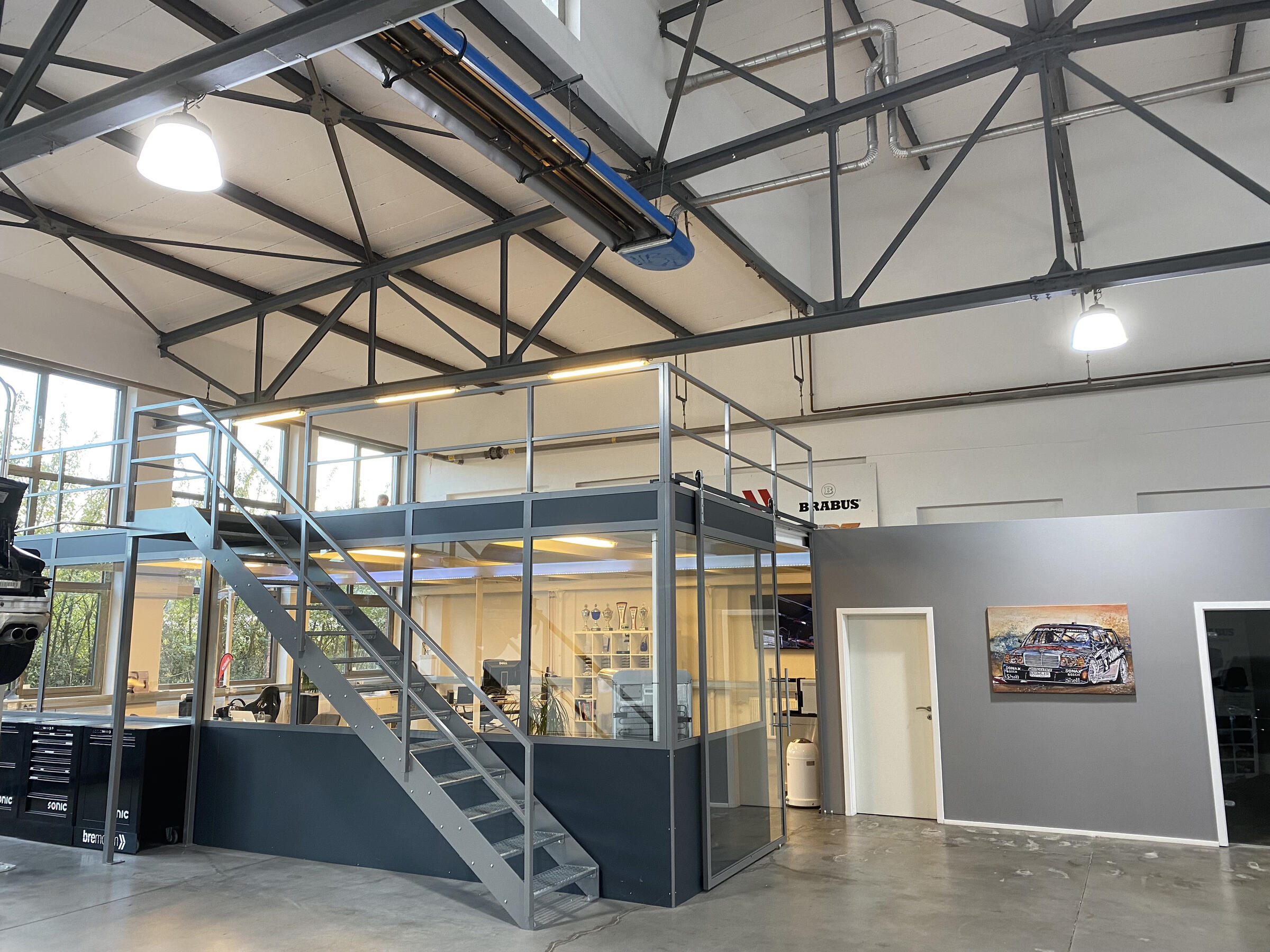 Diese Industriehalle wurde im Jahr 1900 erbaut und befindet sich im Cassellapark in Frankfurt-Fechenheim. Sie bietet eine Grundfläche von ca. 400 m² und versprüht einen einzigartigen Industriecharme. Die Halle bietet eine Kombination aus großzügigem Showroom und offen gestalteten Service- und Arbeitsflächen. Die Halle bietet ideale Bedingungen für Foto- und Filmproduktion und kann mit Fahrzeugen befahren werden. Auf einer zusätzlichen Empore befindet sich eine weitere, ca. 80 m² freie Fläche. Es sind ebenfalls Toiletten und geschlossene Räume (z. B. als Umkleide) sowie eine Küche vorhanden.