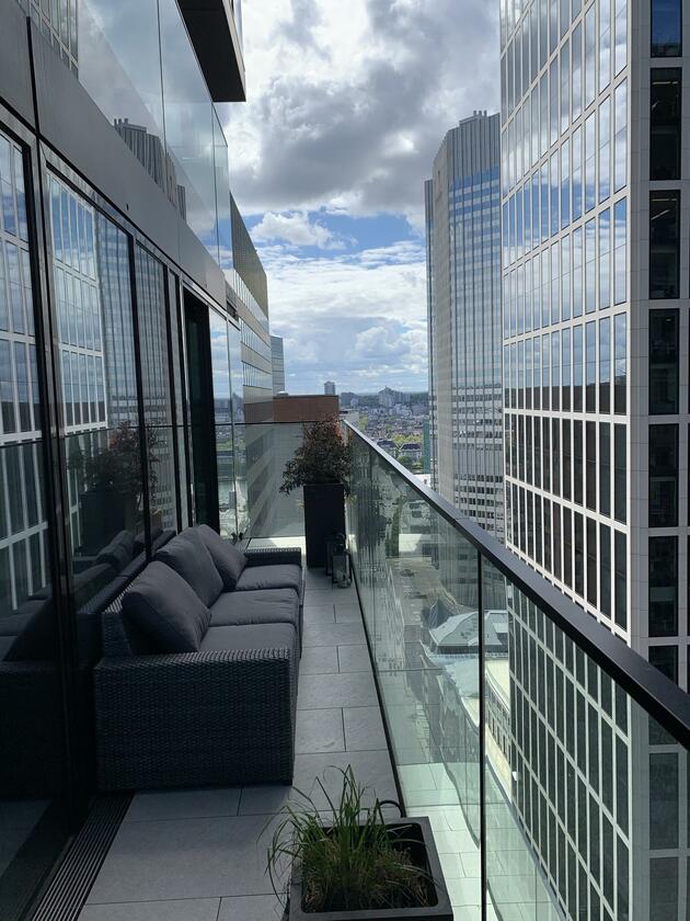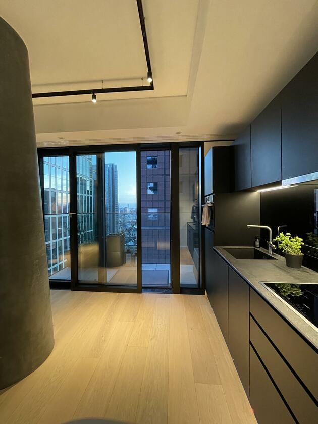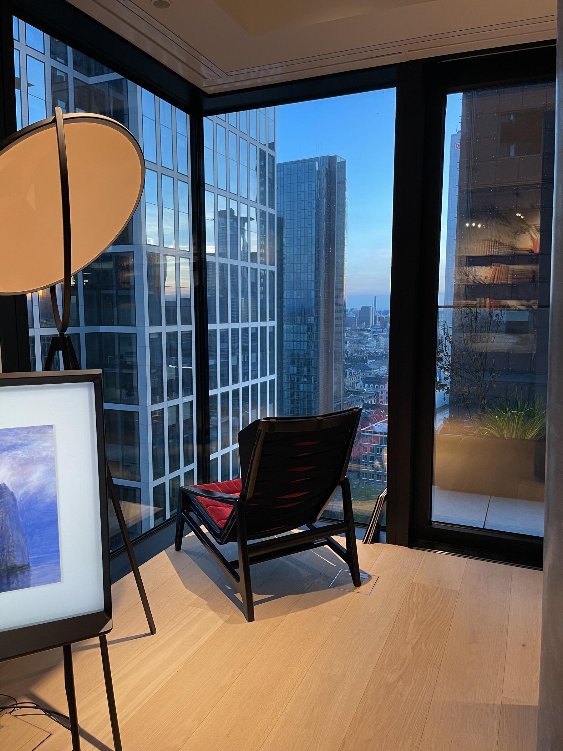 Die Skyline-Wohnung liegt im 17. Stock des ikonischen Omniturms im Herzen des Frankfurter Bankenviertels. Es handelt sich hierbei um die typische Wohnung eines Bankers oder Anwalts in der Großstadt. Die Wohnung überzeugt nicht nur mit einem einmaligen Ausblick, der an Metropolen wie New York oder Singapur erinnert, sondern auch mit hochwertiger Materialität, schönen Deckenhöhen, riesigen Fenstern und hochwertigen Designermöbeln. Die Wohnung ist komplett möbliert und verfügt auch über eine komplett ausgestattete Küche. Die Wohnung ist nach Süden ausgerichtet und bietet daher grundsätzlich eine hervorragende Lichtsituation. Dadurch, dass die Sonne regelmäßig durch benachbarte Hochhäuser verdeckt wird, kann man trotzdem gut gegen die Fenster filmen oder fotografieren. Den Sonnenuntergang kann man im Winter und im Sommer sehen.