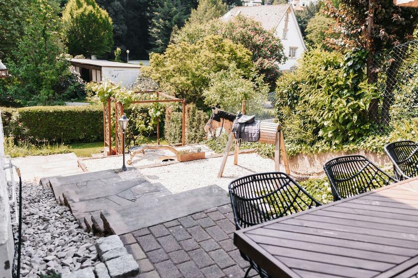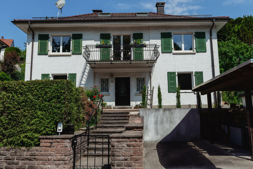 Unser Haus befindet sich in einer ruhigen Wohngegend, direkt im Grünen am Kurpark. Die Räume sind hell, gemütlich und funktional eingerichtet. Durch die teilweise bodentiefen Fenster fällt viel Tageslicht in die Räume. Die Fenster können mit Hilfe von Fensterläden verdunkelt werden. Auf den Böden der Wohnräume ist hochwertiges Fischgrätparkett verlegt. Die Küche und das Badezimmer sind gefliest. Im Außenbereich steht unser Garten ebenfalls zur Verfügung. Vor dem Haus gibt es 2 Pkw-Parkplätze. Weitere Parkplätze finden sich auf einem ca. 20 m vom Haus entfernten öffentlichen Parkplatz.