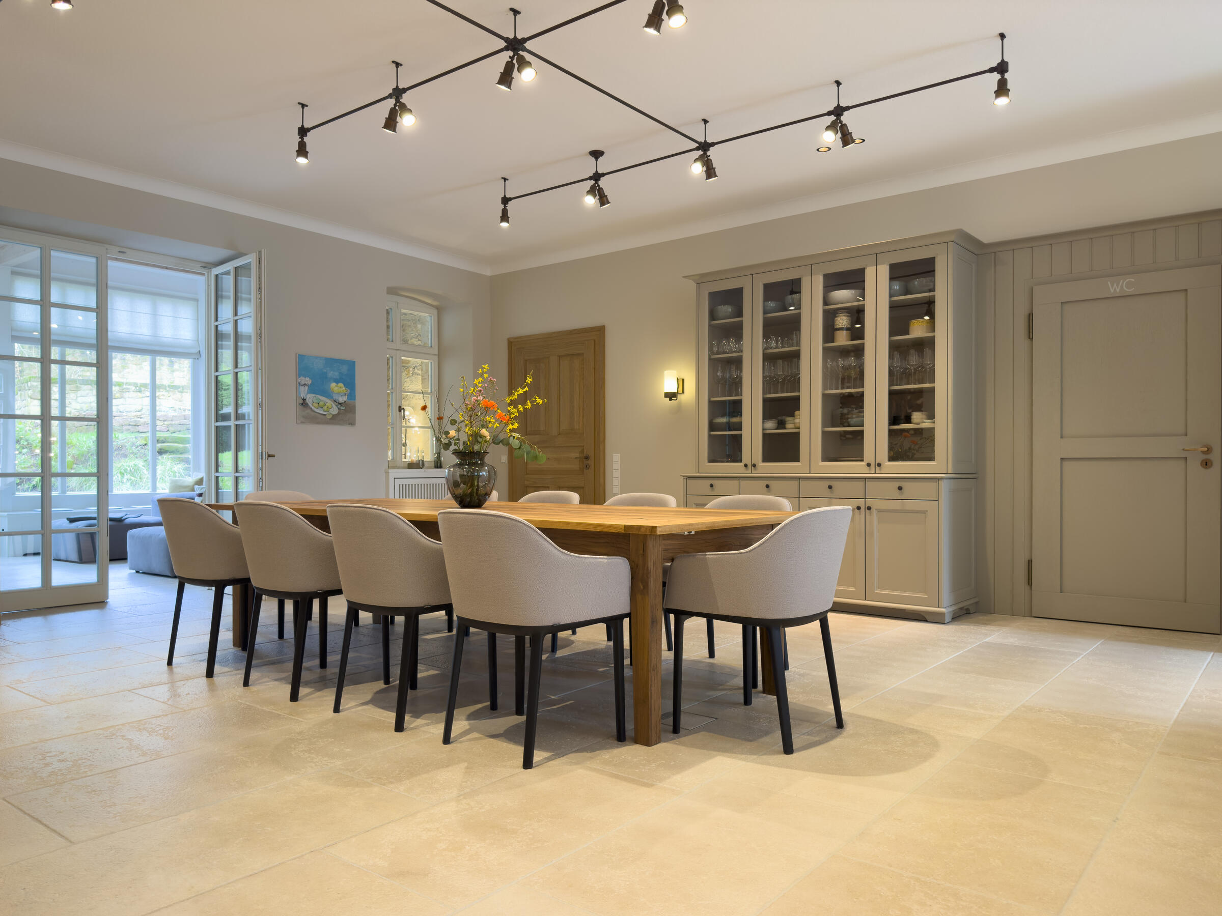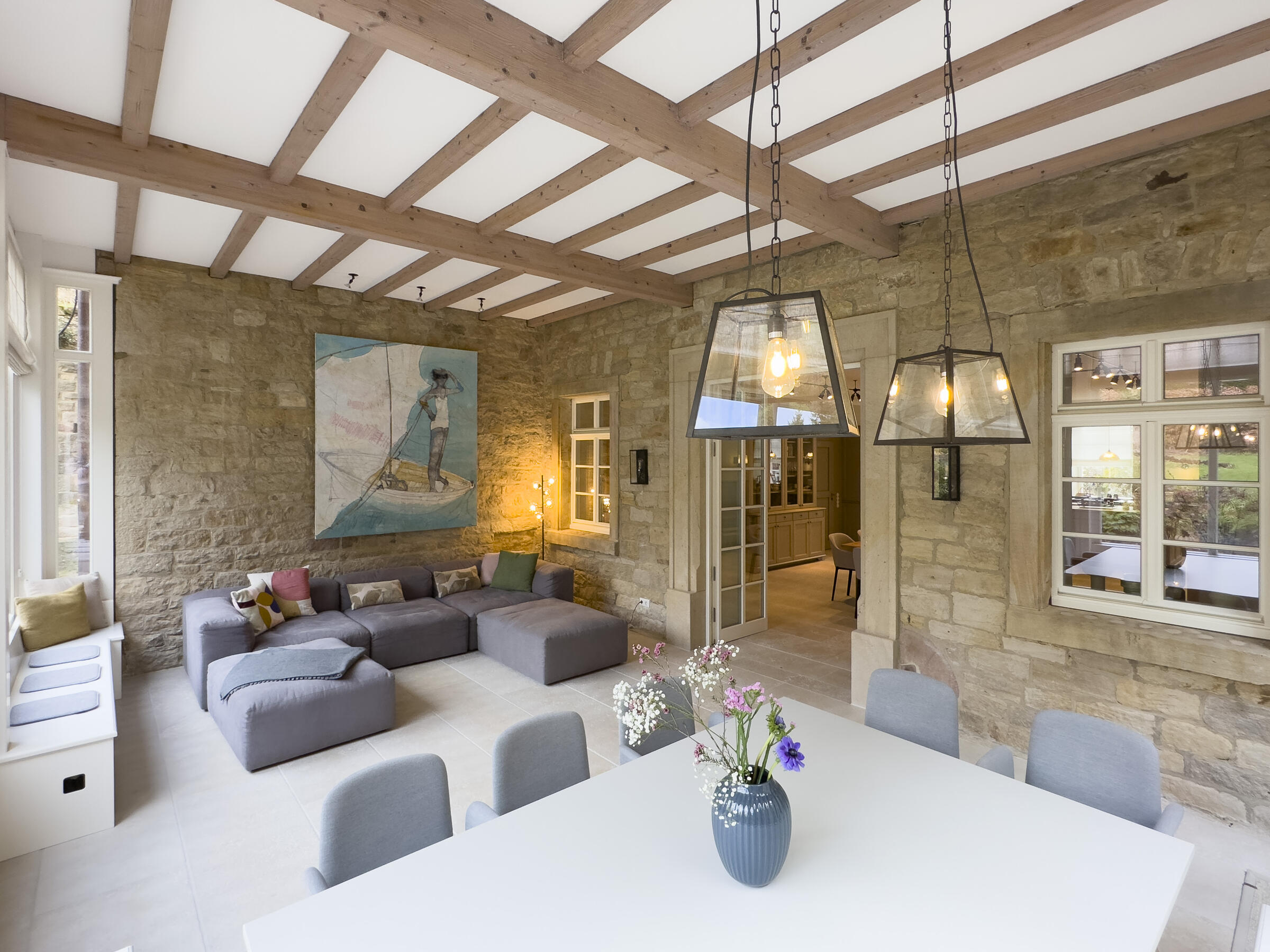 Das Landhaus, ein Juwel in der Pfalz, erfreut sich einer idyllischen Lage, eingebettet in die unberührte Natur des Pfälzer Waldes. Nach einer 5-jährigen Umbau- und Renovierungszeit erstrahlt das Landhaus seit dem Jahr 2022 in neuem Glanz. Besonders hervorzuheben ist die liebevoll gestaltete offene Küche, die im charmanten Landhausstil gehalten ist und an einen großzügigen Essbereich mit Kamin anschließt. Die große Wohnküche bietet nicht nur eine ästhetisch ansprechende Umgebung, sondern auch eine hochwertige und vollfunktionsfähige Ausstattung. Direkt angrenzend öffnet ein lichtdurchfluteter Wintergarten den Blick in den Wald und den entstehenden Permakultur-Garten. Anschließend an den Wohn-, Koch- und Essbereich befindet sich das sogenannte Herrenzimmer. Dieser geschmackvoll gestaltete Raum fängt die Atmosphäre vergangener Zeiten ein und verleiht dem Anwesen einen zusätzlichen Hauch von Exklusivität. Die großzügigen Außenflächen, bestehend aus einem bezaubernden Garten mit Nebengebäude und Permakultur-Pfad, dem umsäumenden Wald sowie einem großzügigen Hof mit Terrasse und reichlich Parkmöglichkeiten, machen das Landhaus zu einer herausragenden Location für Film- und Fotoproduktionen.