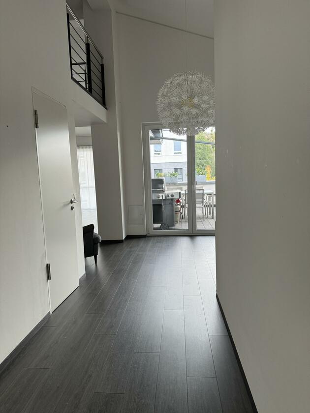 Die unbewohnte und größtenteils unmöblierte Wohnung befindet sich im 1. Obergeschoss eines Bürogebäudes in einem Industriegebiet in unmittelbarer Nähe zur A3 bei Aschaffenburg, ca. 40 km von Frankfurt am Main entfernt. Die Räume der Wohnung sind hell und offen gestaltet. Der große Wohn- und Essbereich geht direkt in die Küche über. Die Wohnung bietet auch eine Galerie mit einer Wendeltreppe. Die überwiegend bodentiefen Fenster können mit Jalousien abgedunktelt werden und teilweise sind noch Vorhänge vorhanden. Im Gebäude gibt es keinen Aufzug. Das Treppenhaus ist jedoch geräumig. Im Hof bestehen Parkmöglichkeiten.