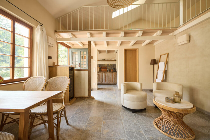 Die historische und denkmalgeschützte Mühle liegt, eingebettet in ein grünes Tal, im idyllischen Landschaftsschutzgebiet von Haan. Die lichtdurchfluteten Räume sind hochwertig möbliert und ausgestattet. Die Fenster der Wohnräume können mit Vorhängen abgedunkelt werden. Auf den Böden sind Steinfliesen und Laminat verlegt. Neben dem Haupthaus kann ebenfalls das Gästehaus für Produktionen genutzt werden. Parkplätze und Stellflächen stehen auf unserem Grundstück ausreichend zur Verfügung. Nur ca. 20 Autominuten von Düsseldorf und ca. 30 Autominuten von Köln entfernt, bietet unsere Mühle ideale Produktionsbedingungen.